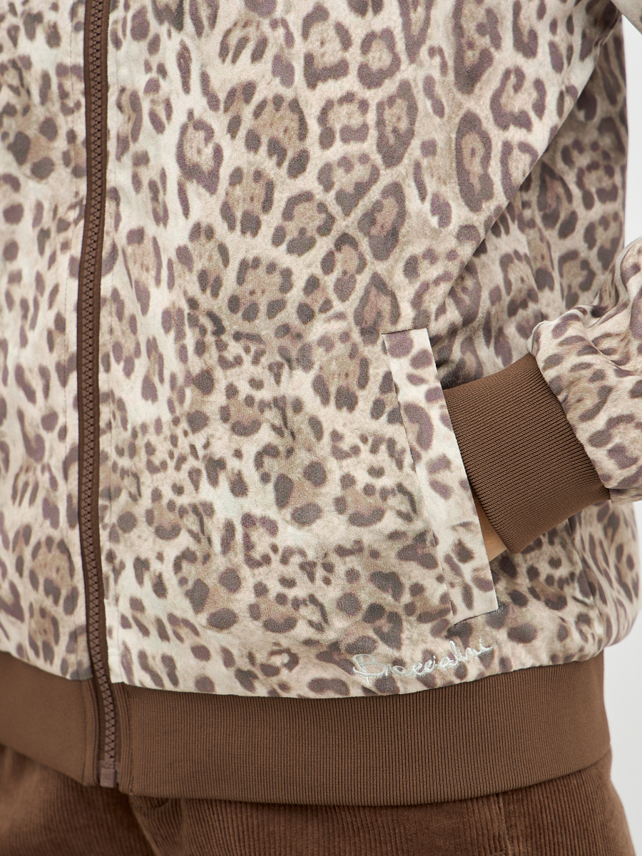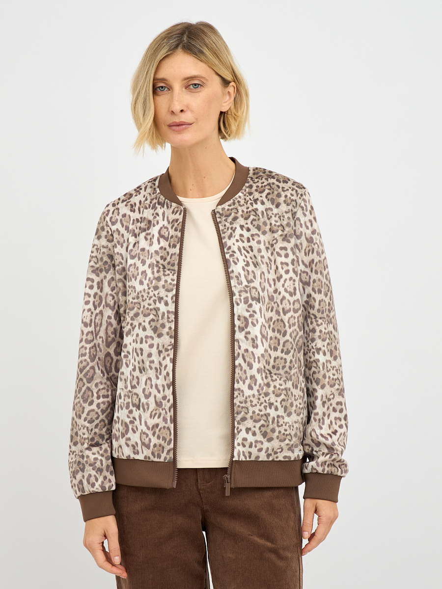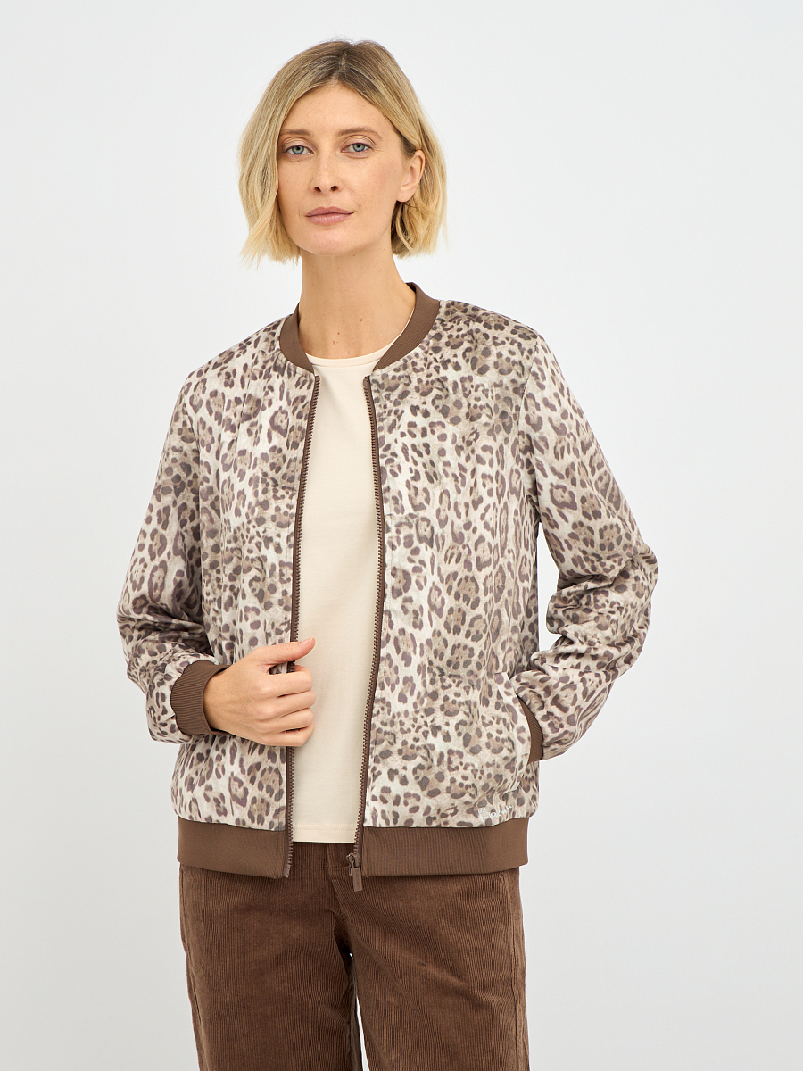 Бомбер выполнен в классическом крое, который подчеркивает фигуру и обеспечивает свободу движений. Бежевый цвет создает универсальную базу, которая легко комбинируется с различными оттенками и текстурами. Леопардовый принт добавляет нотку дикой элегантности и смелости, делая ваш образ ярким и запоминающимся.