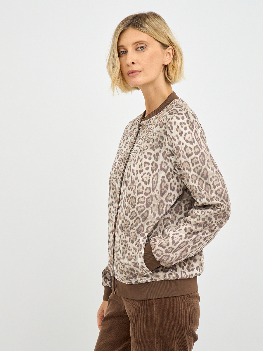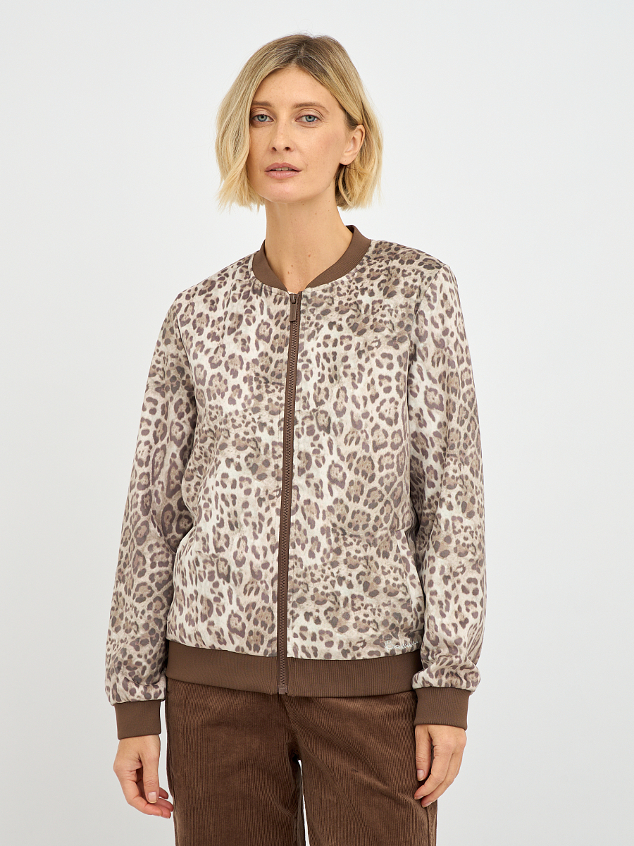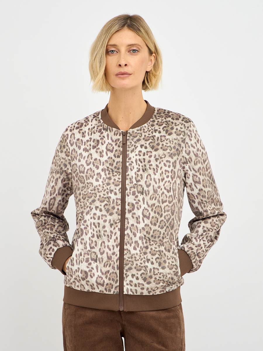 Бомбер выполнен в классическом крое, который подчеркивает фигуру и обеспечивает свободу движений. Бежевый цвет создает универсальную базу, которая легко комбинируется с различными оттенками и текстурами. Леопардовый принт добавляет нотку дикой элегантности и смелости, делая ваш образ ярким и запоминающимся.