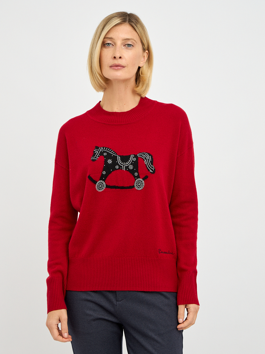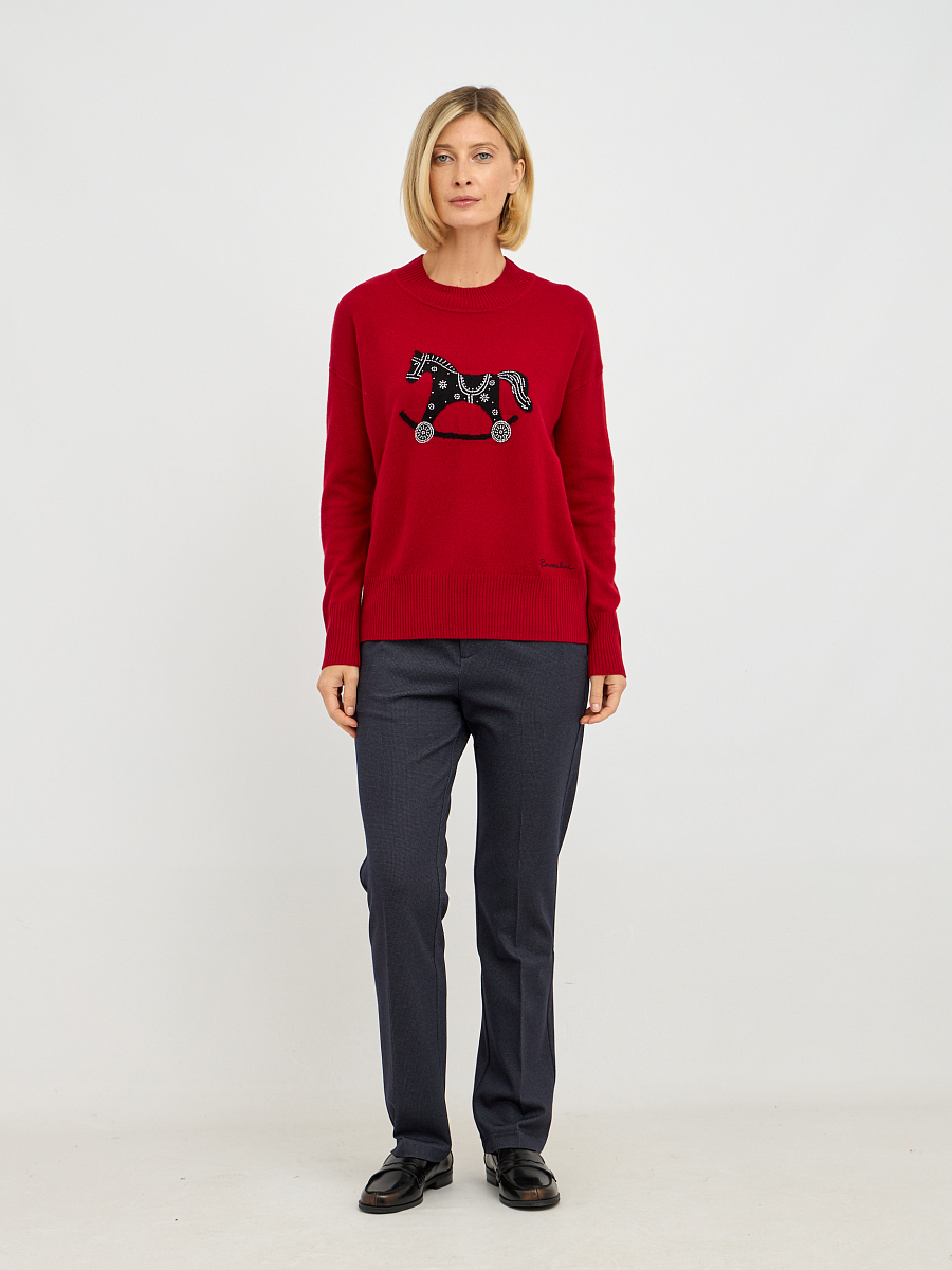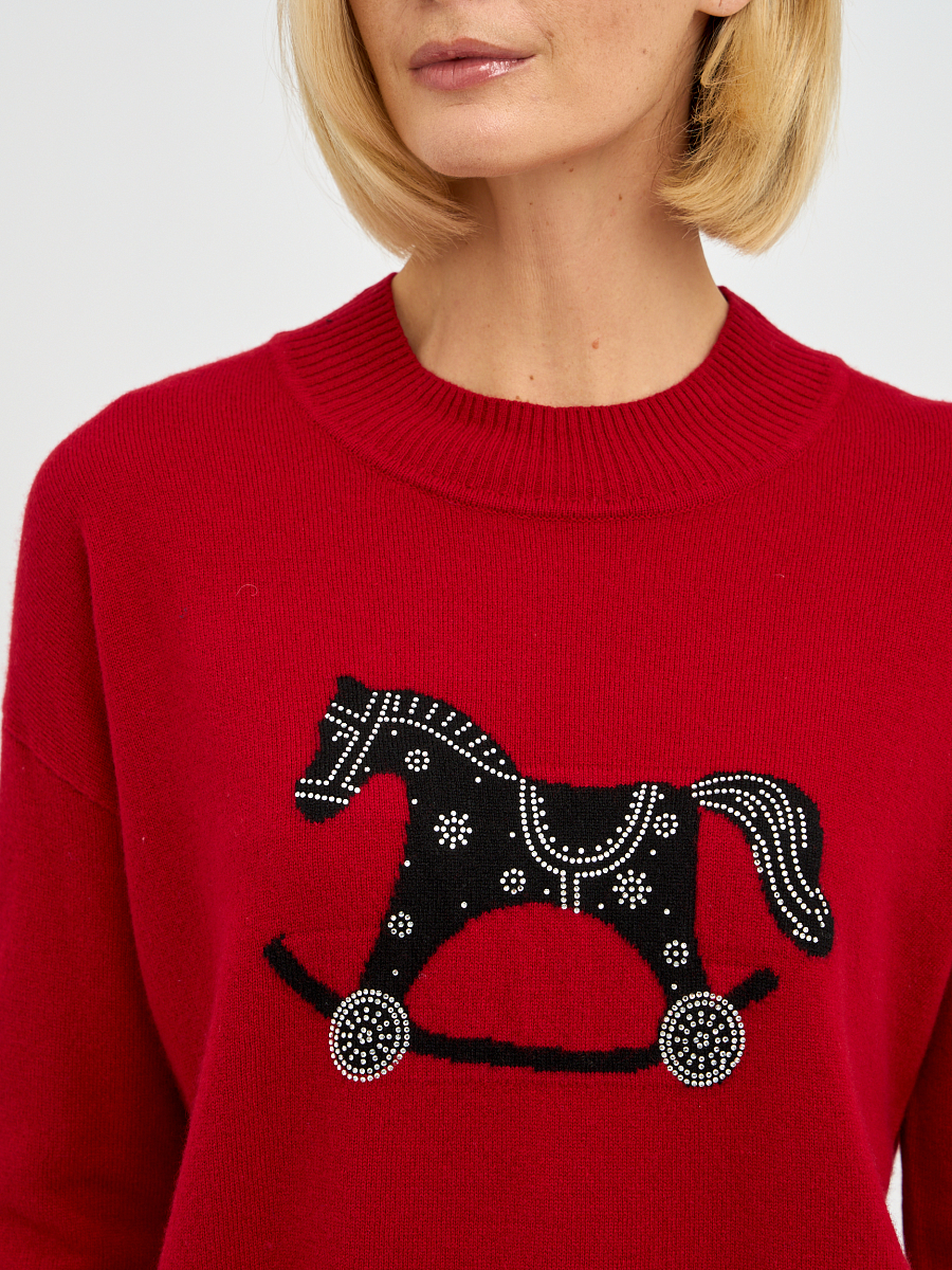 Оригинальный принт добавляет джемперу игривости и индивидуальности, делая его запоминающимся акцентом вашего образа. Декоративные стразы, расположенные на принте, придают джемперу нотку гламура и блеска.