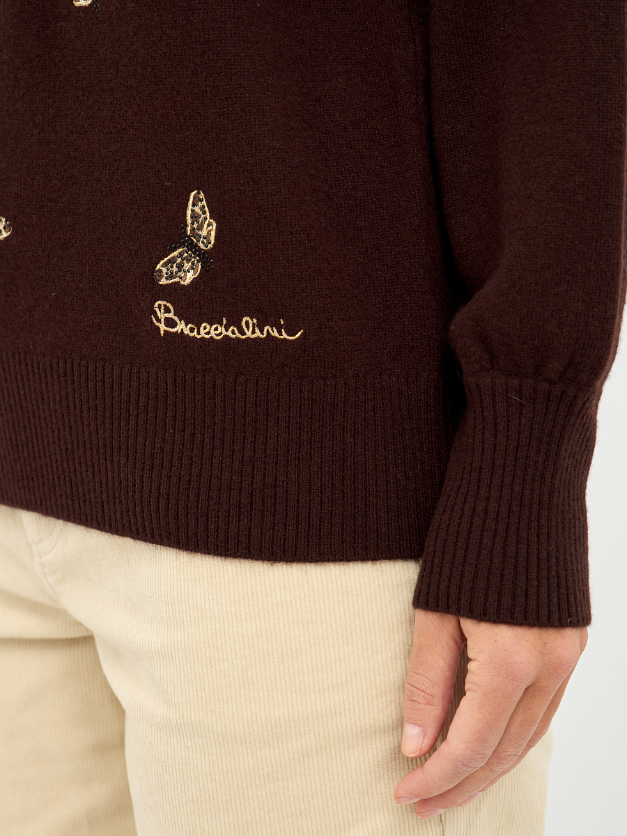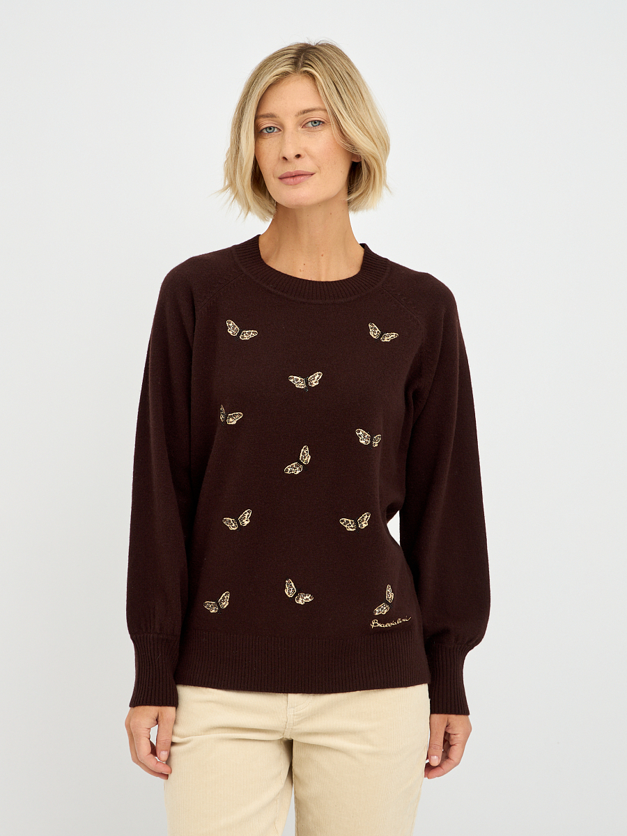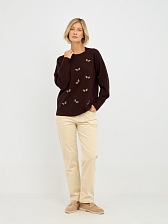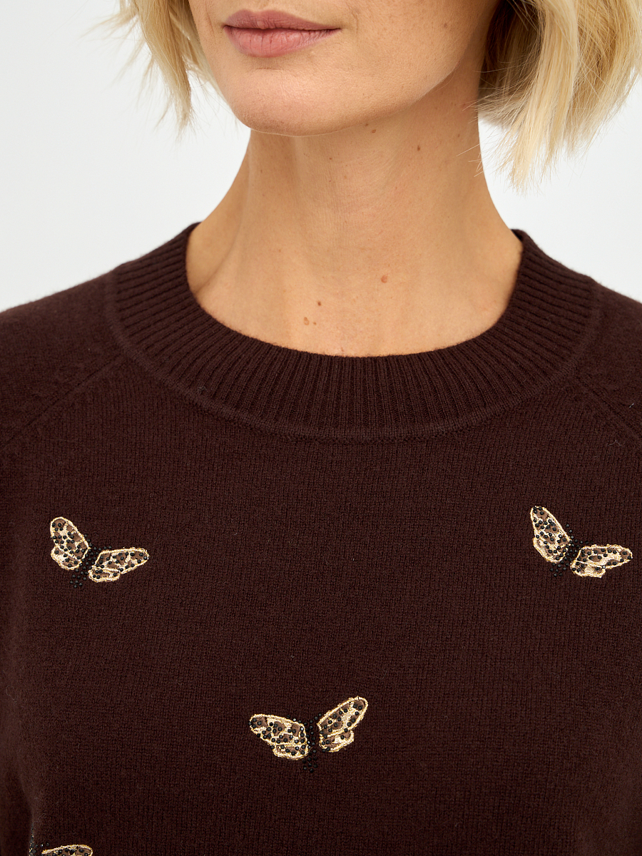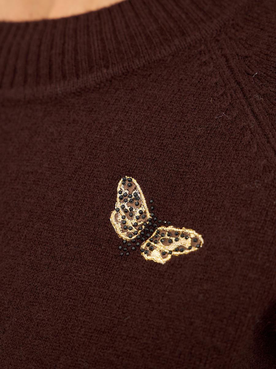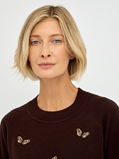 Не упустите возможность добавить этот уникальный джемпер в свой гардероб. Он станет не только стильным акцентом вашего образа, но и надежным спутником в холодное время года. Позвольте себе насладиться комфортом и элегантностью с нашим джемпером с аппликациями-бабочками и стразами.