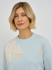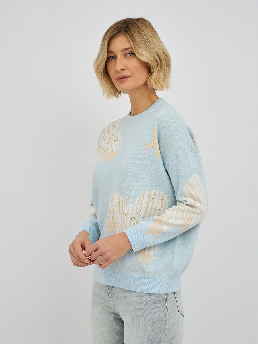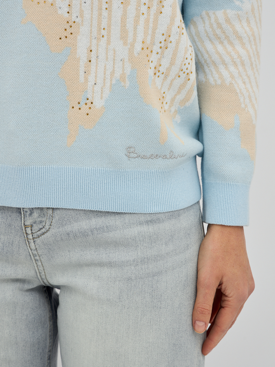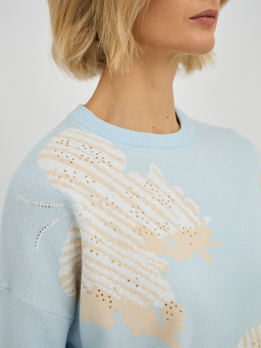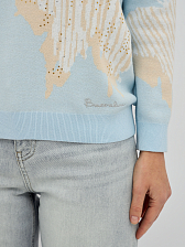 джемпер женский в голубом цвете из хлопка с вязаным узором и добавлением страз