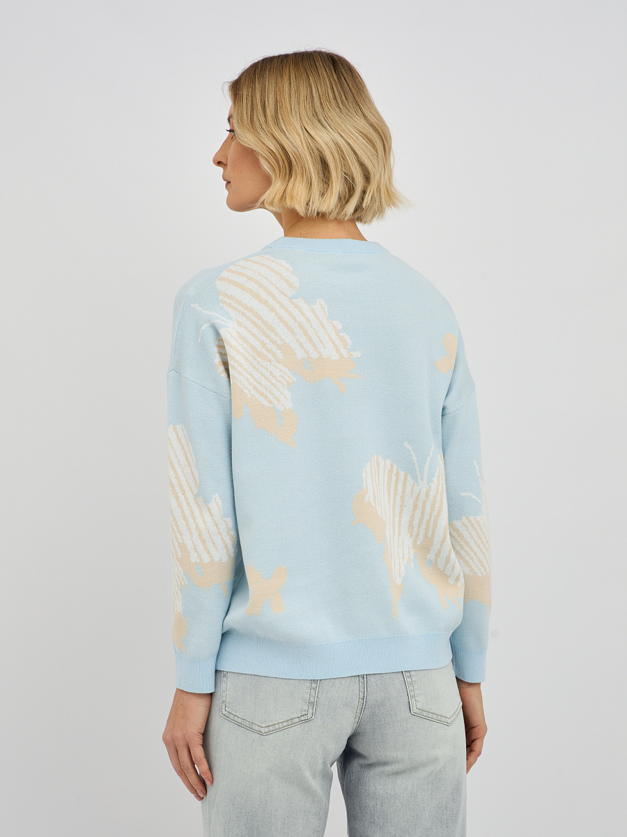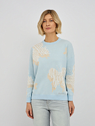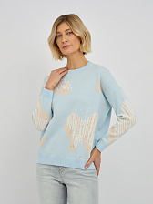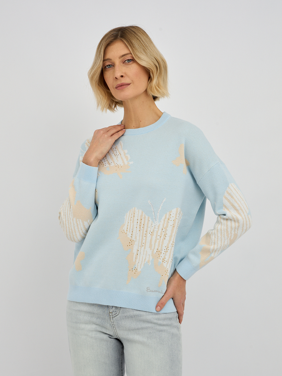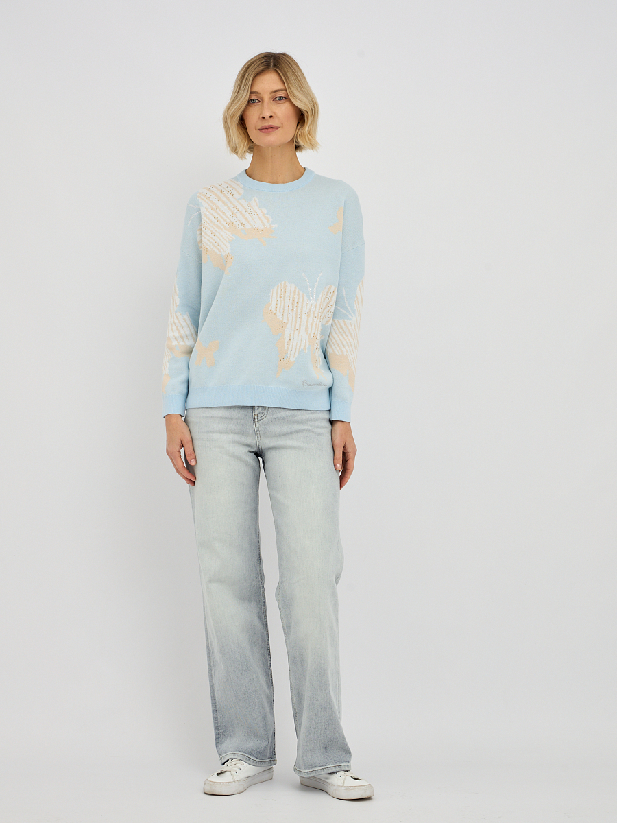 джемпер женский в голубом цвете из хлопка с вязаным узором и добавлением страз