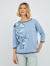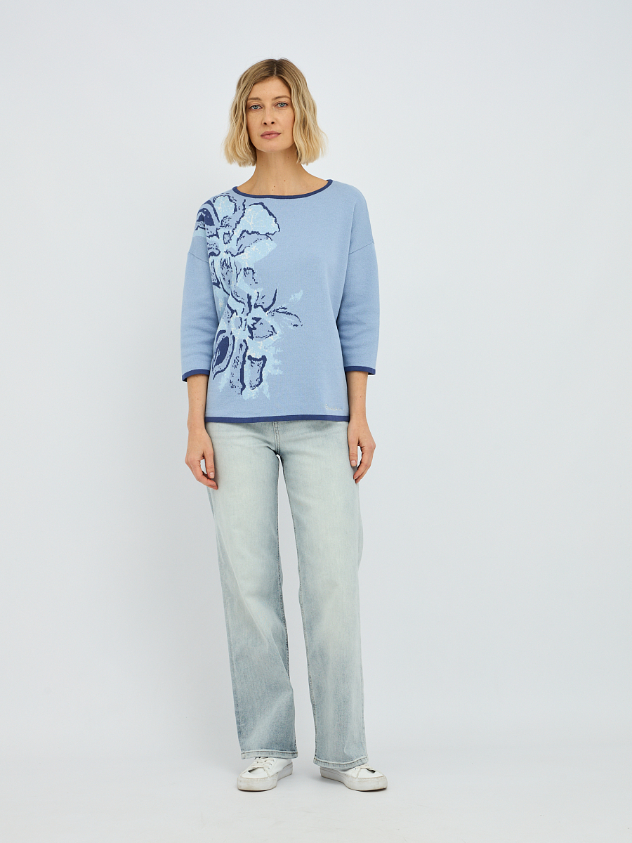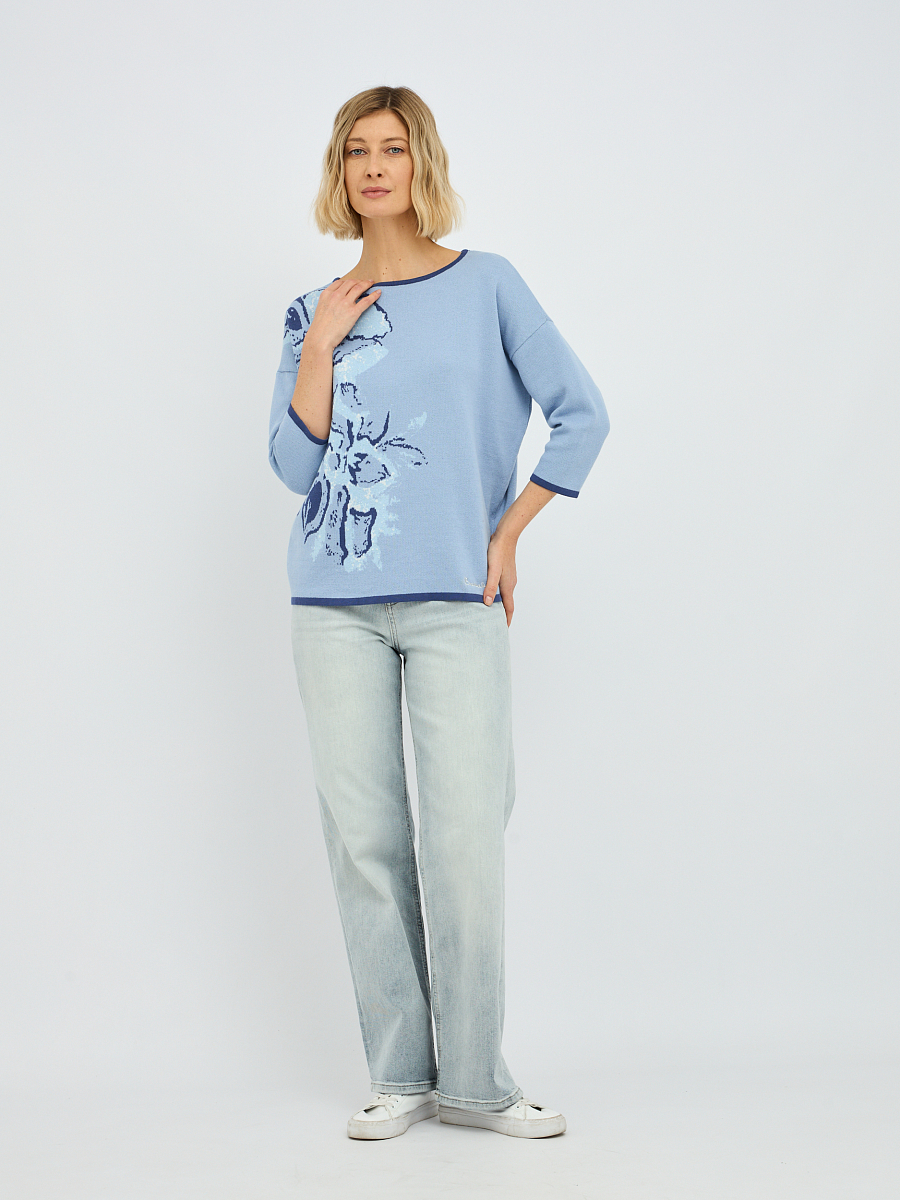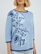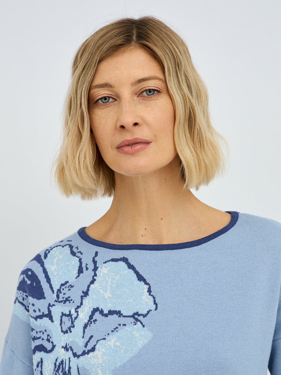 джемпер женский в голубом цвете из хлопка с вязаным цветочным узором