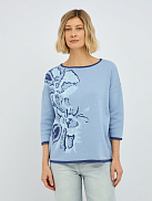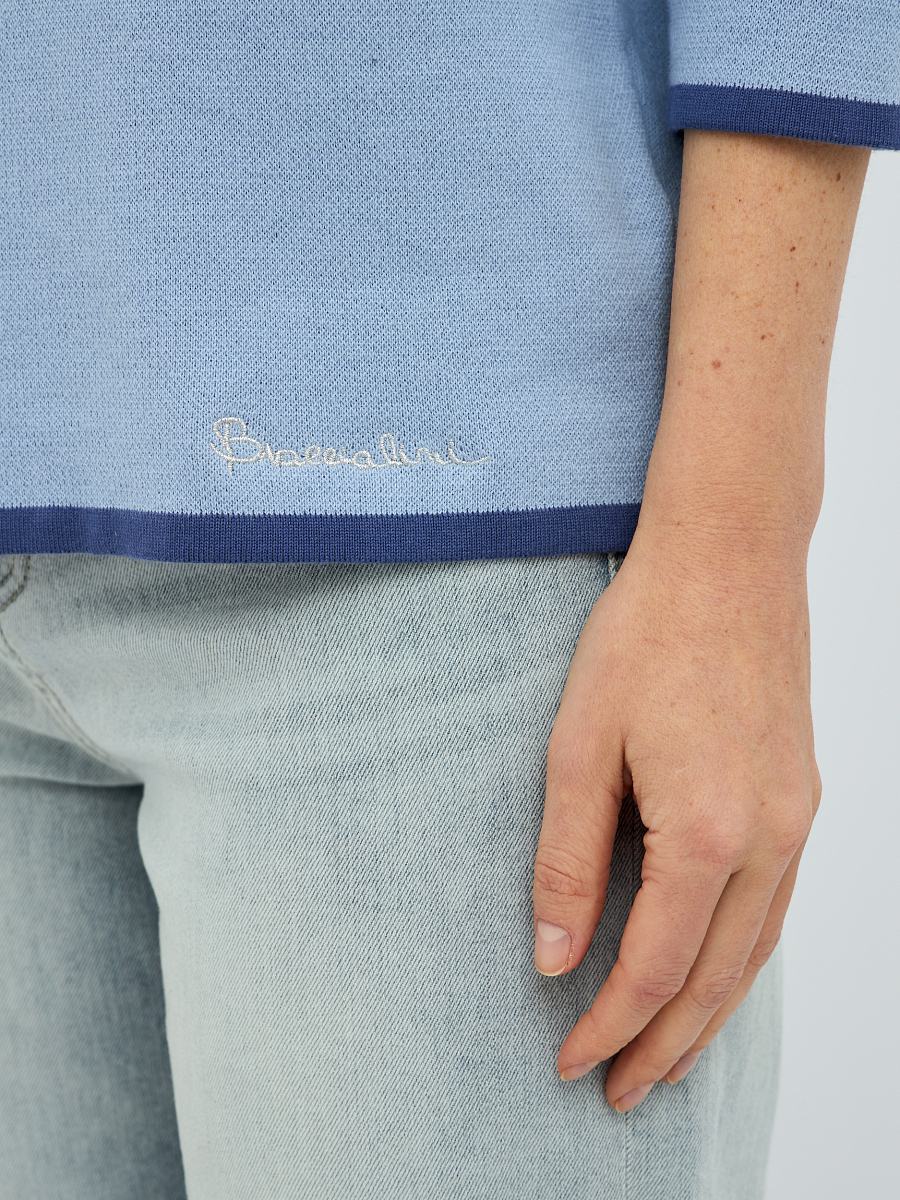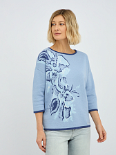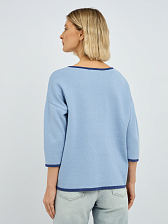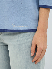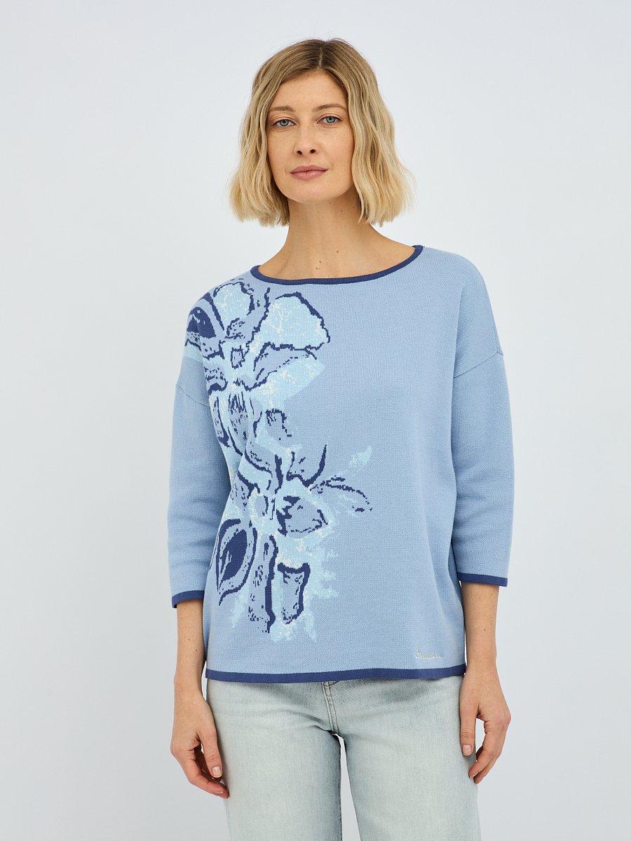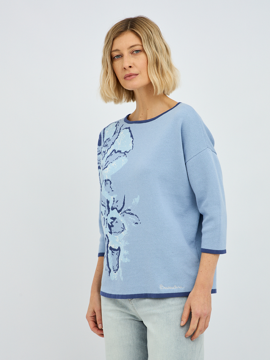 джемпер женский в голубом цвете из хлопка с вязаным цветочным узором