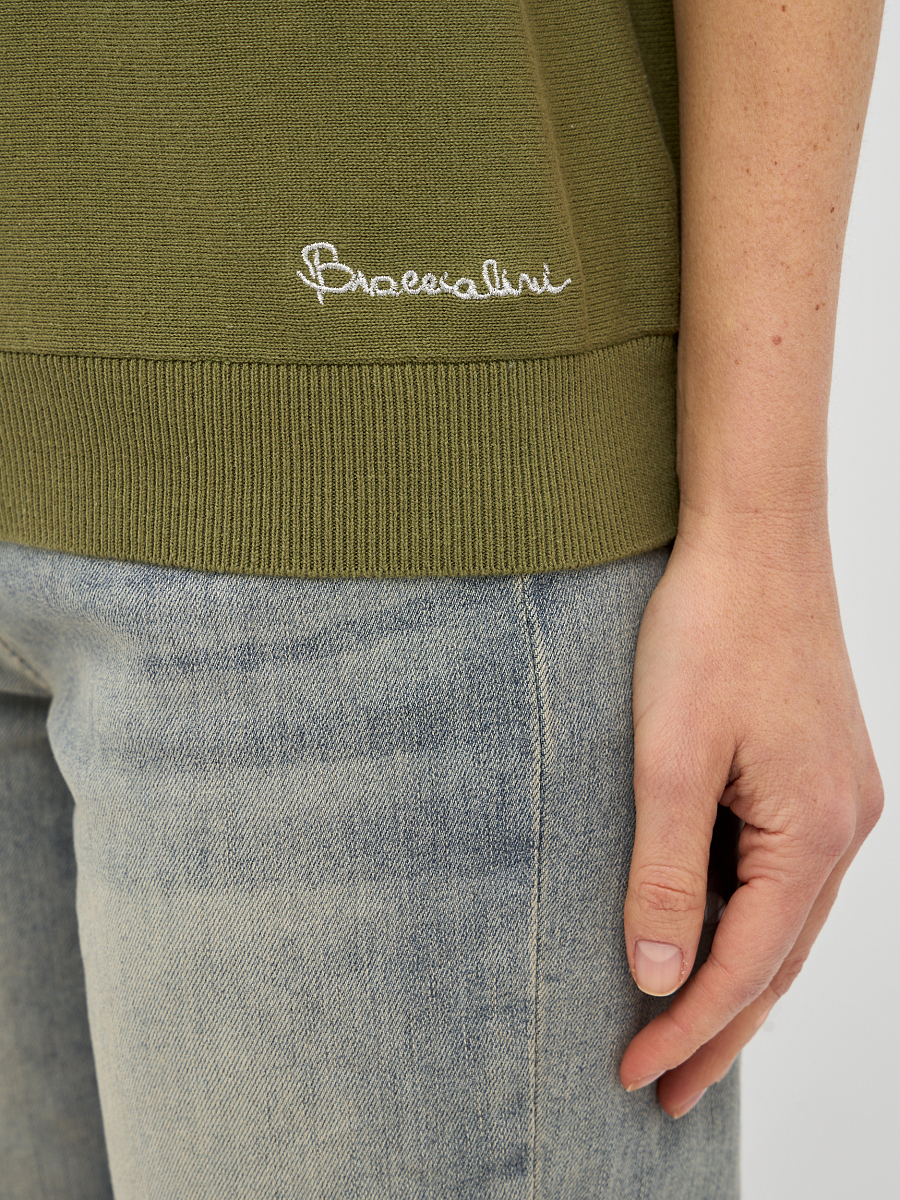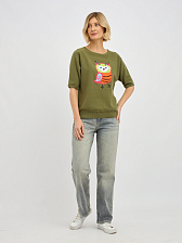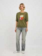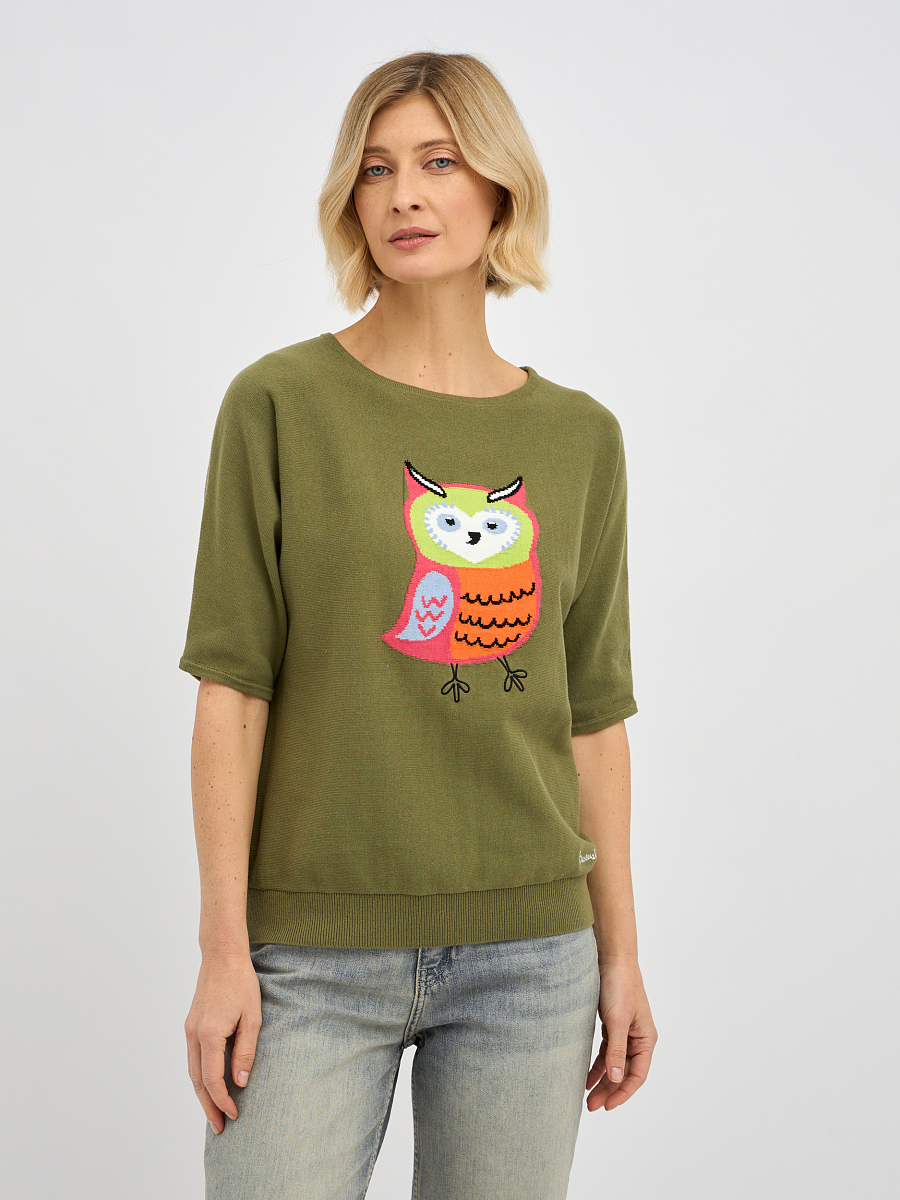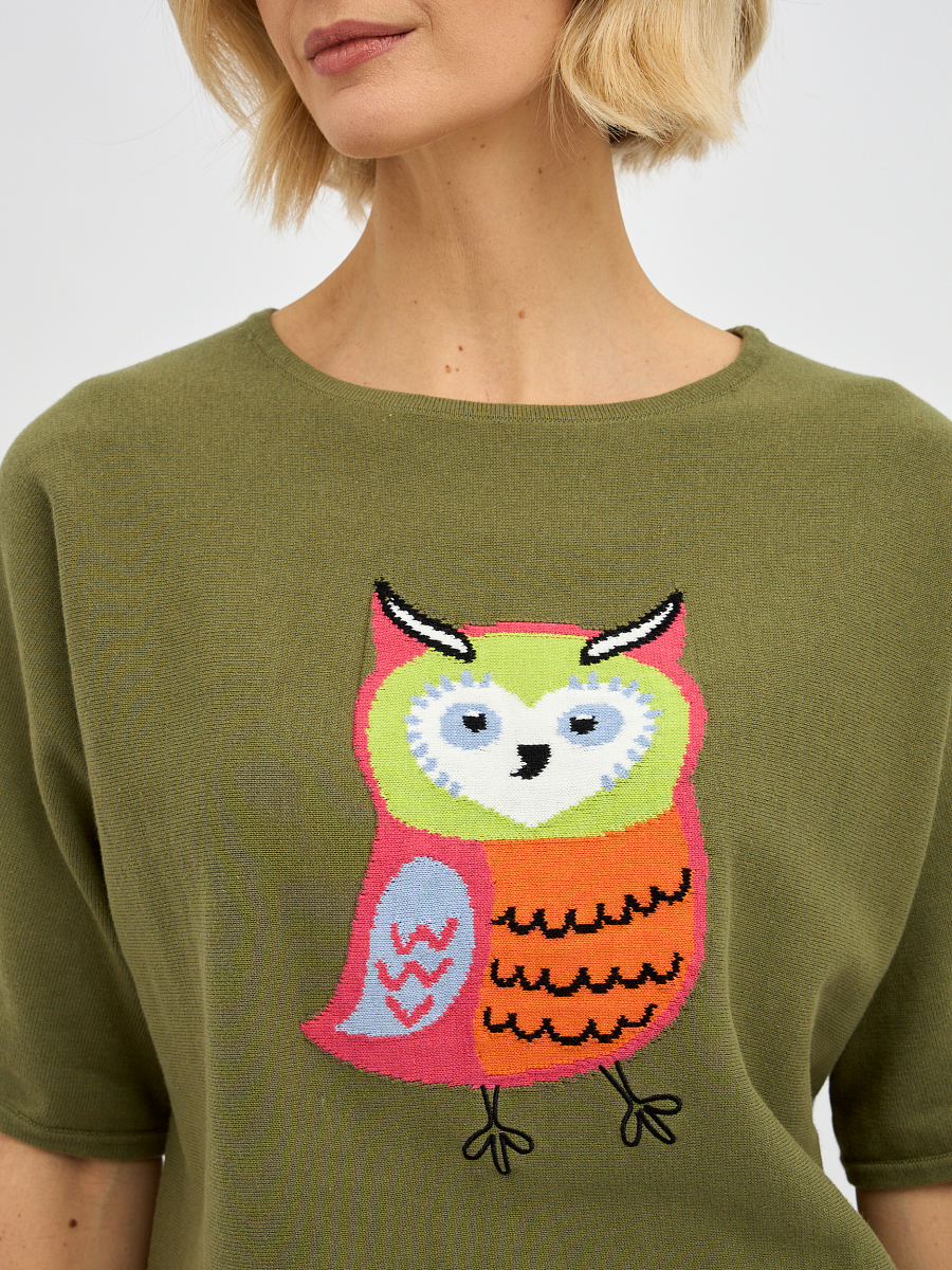 джемпер женский в зелёном цвете с вязаным узором в виде совы