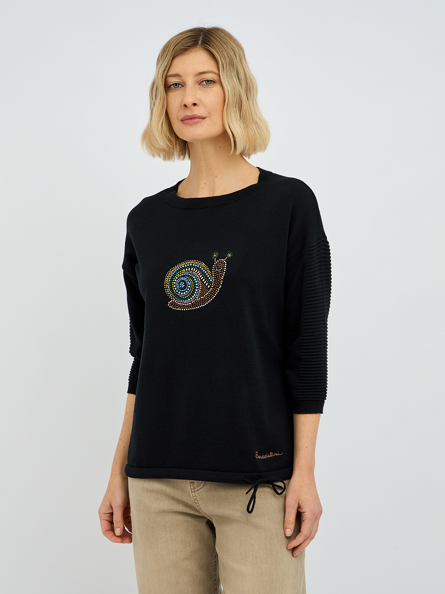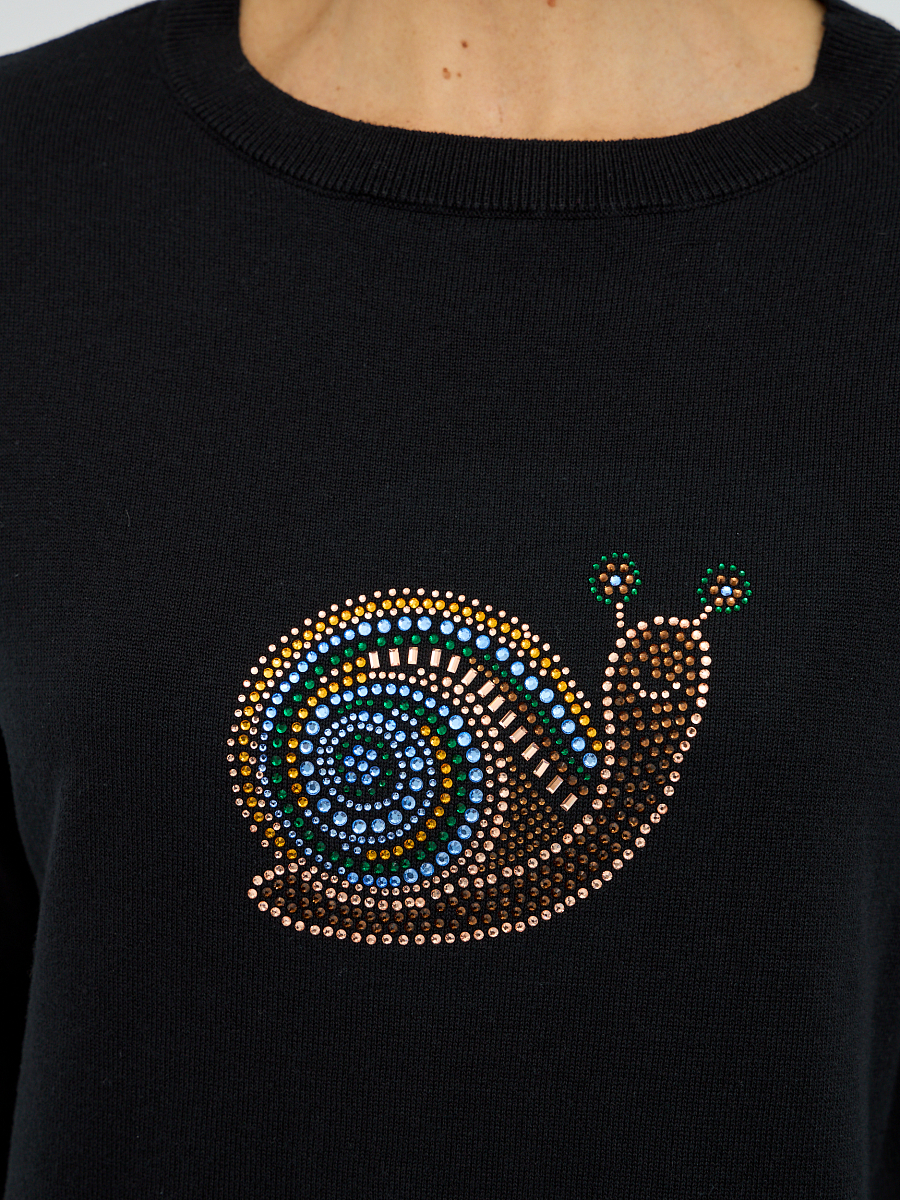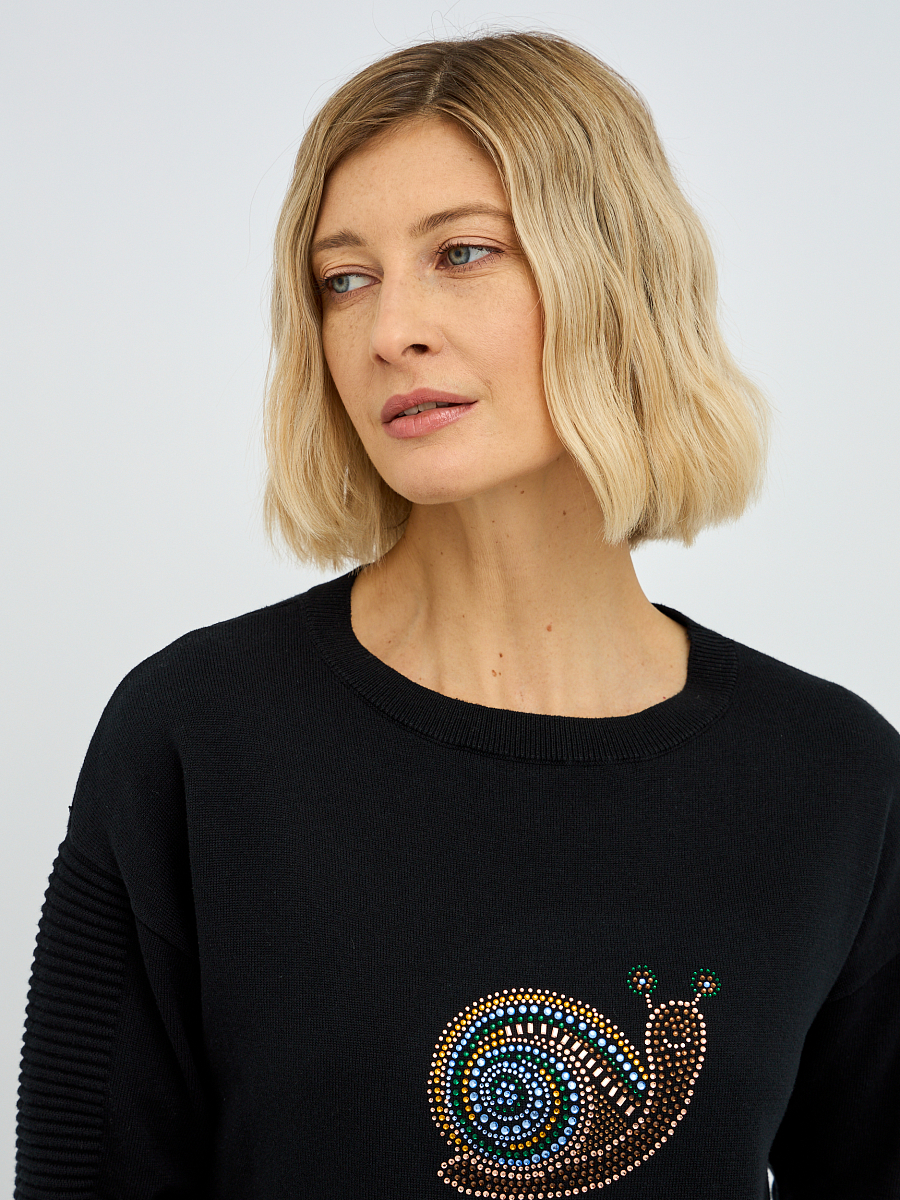 джемпер женский в чёрном цвете с рисунком из страз