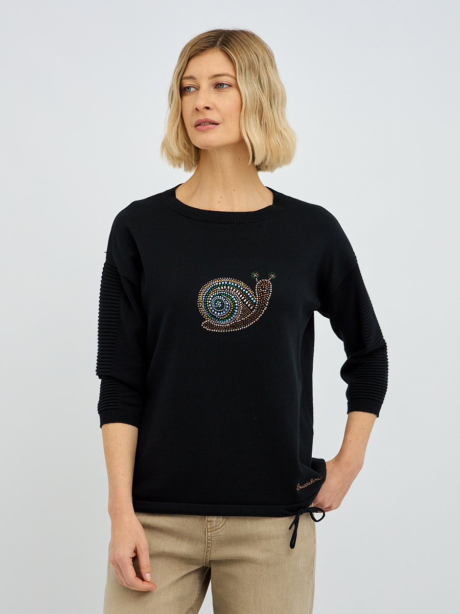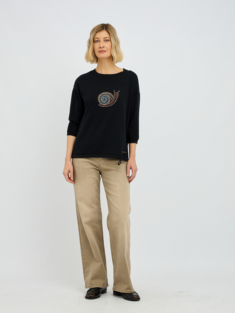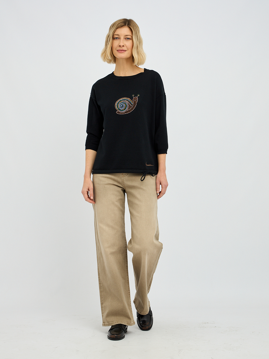джемпер женский в чёрном цвете с рисунком из страз
