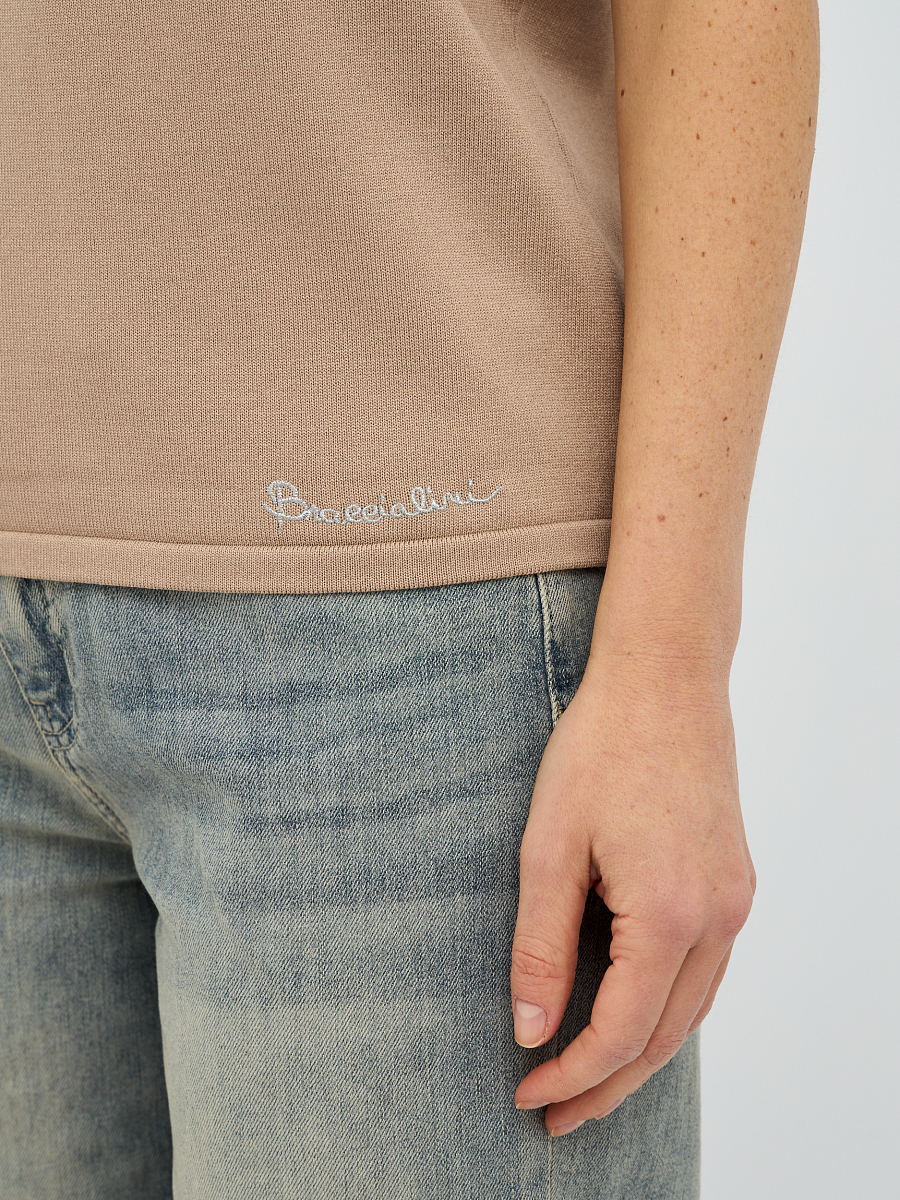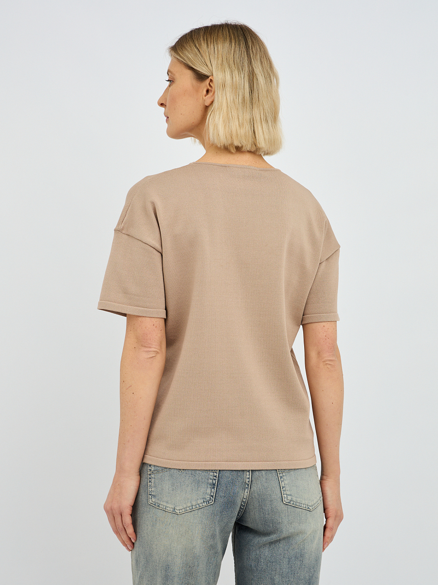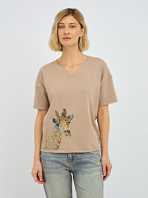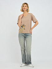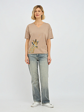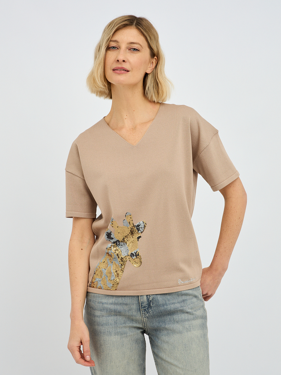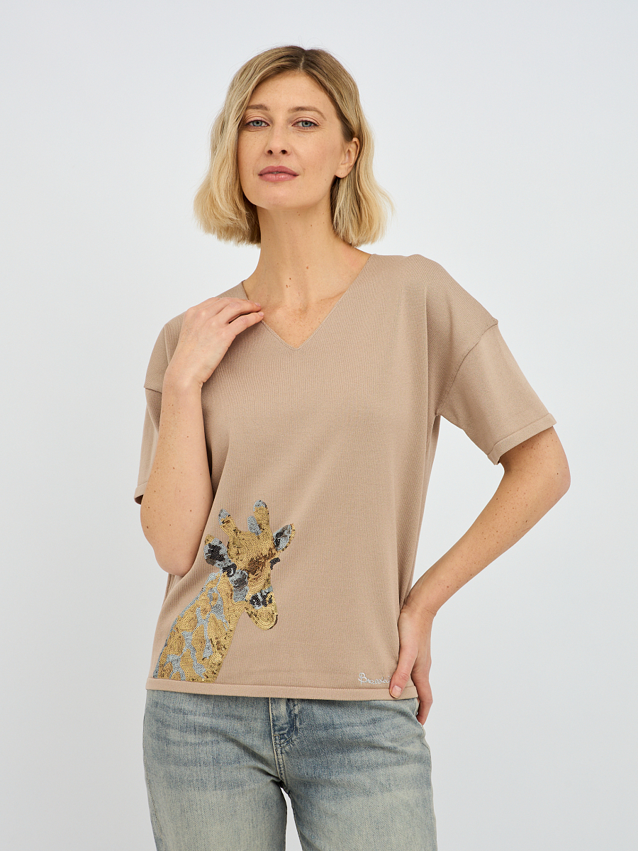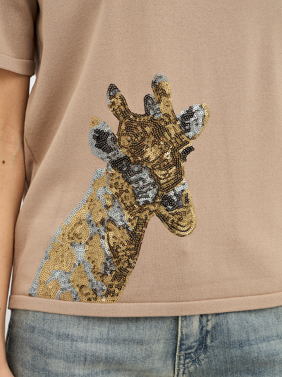 пуловер женский в бежевом цвете с рисунком из пайеток