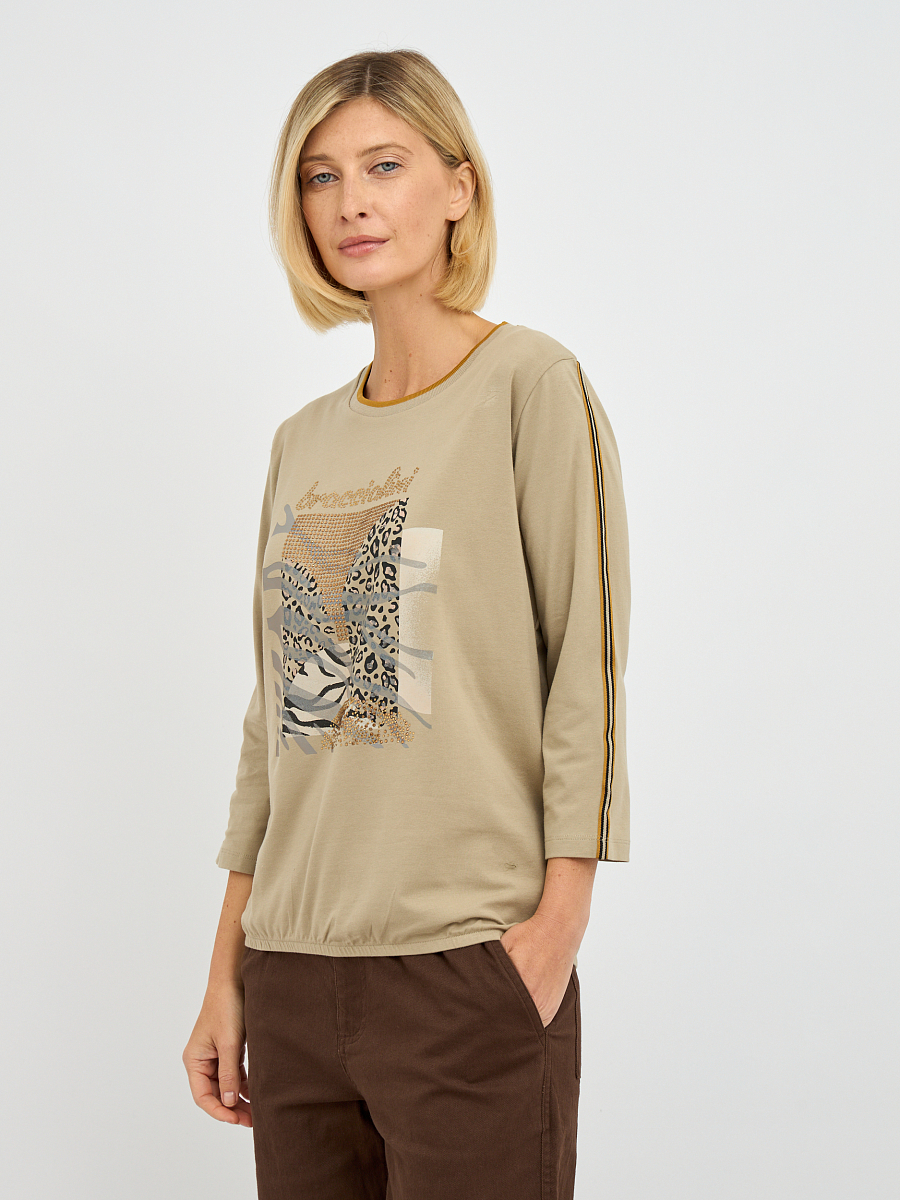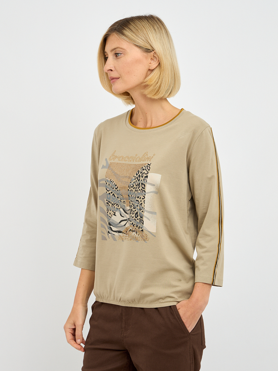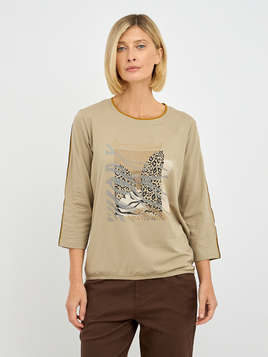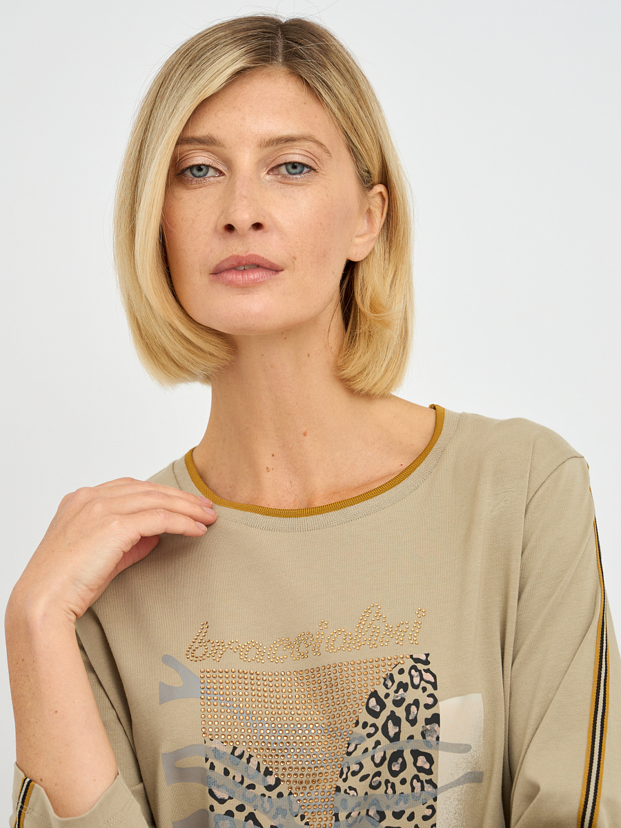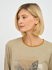 Этот стильный женский джемпер в элегантном оливковом цвете станет ярким акцентом в вашем гардеробе. Оригинальный принт, украшенный деликатными стразами, добавляет образу изысканности и привлекает внимание. Круглый вырез горловины и рукава три четверти добавляют джемперу женственности и элегантности.