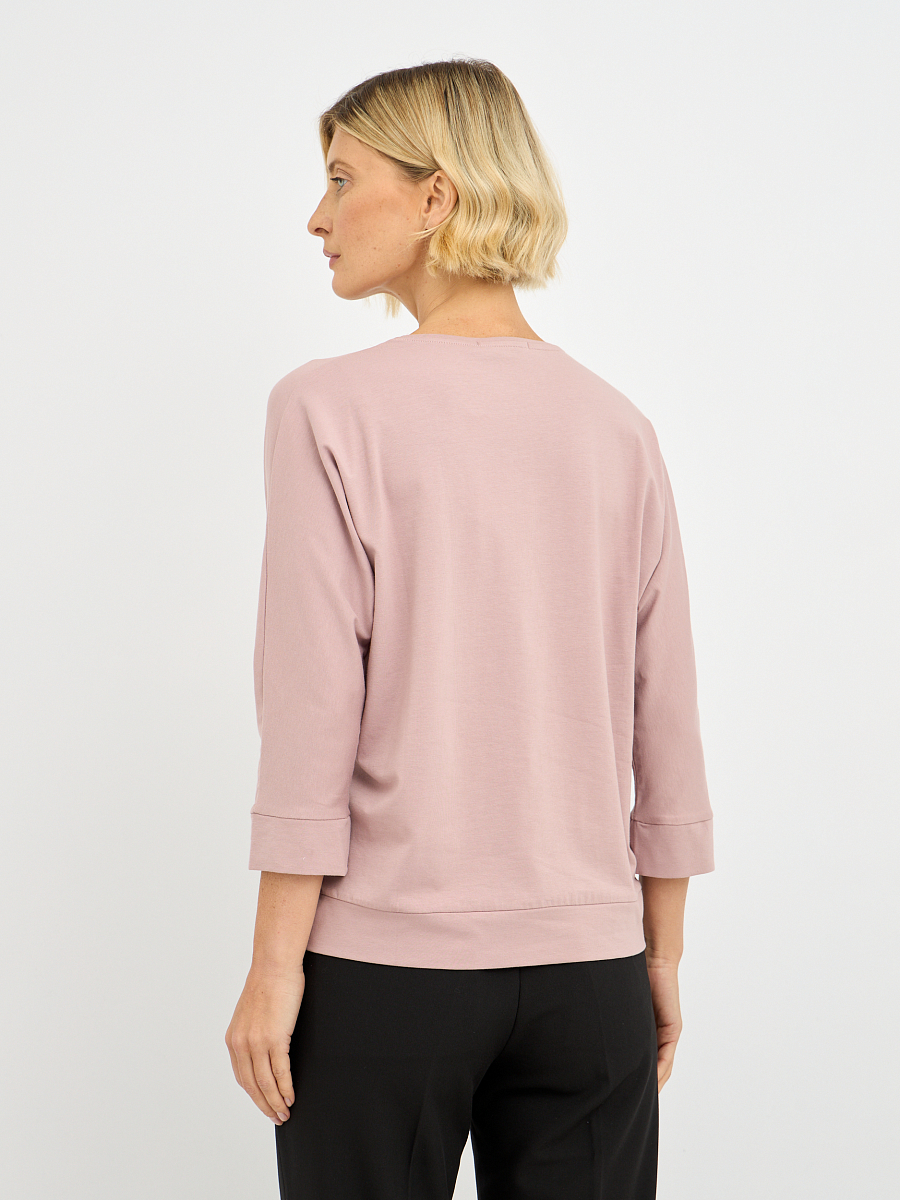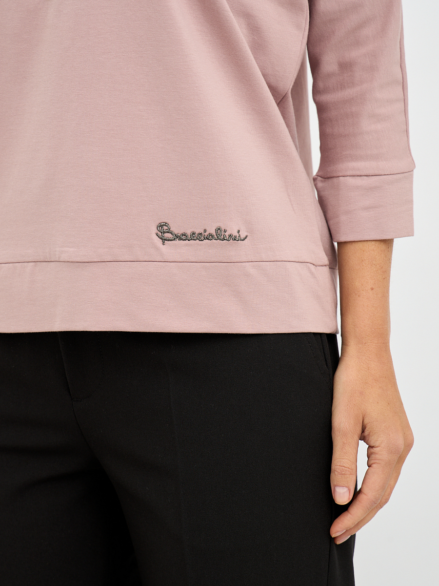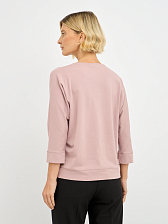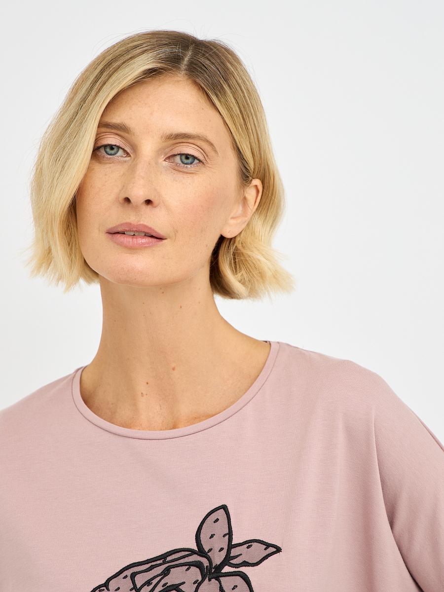 Акцентом джемпера является изящный декоративный цветок, добавляющий образу романтичности и очарования.