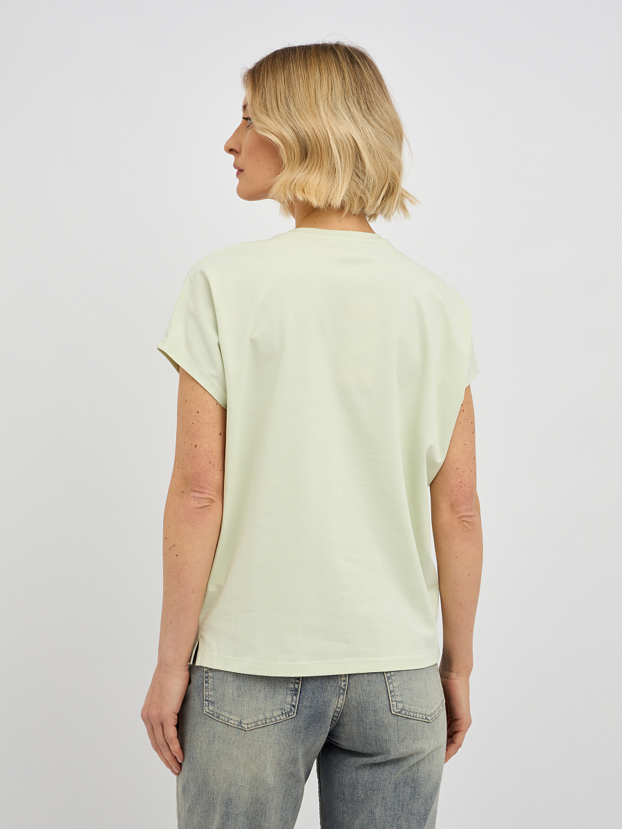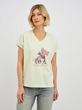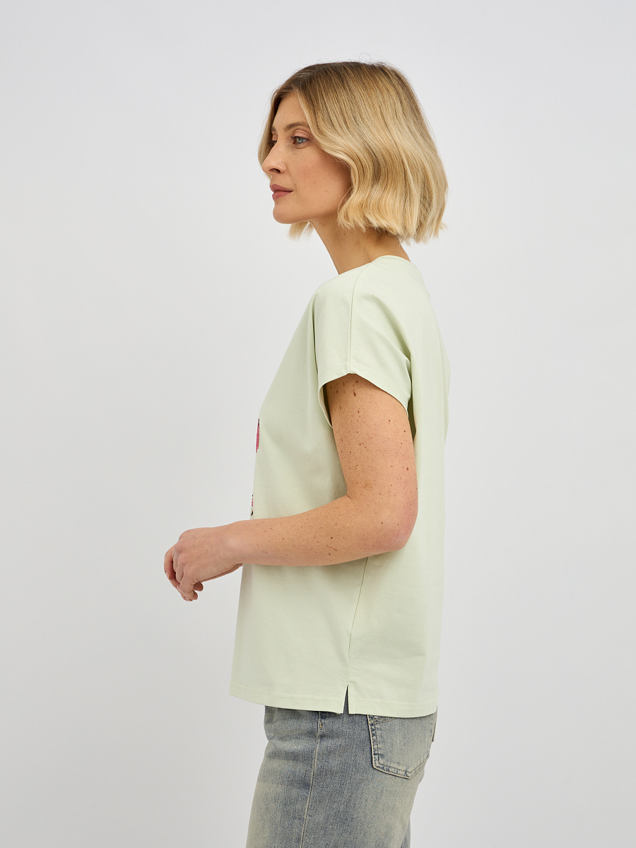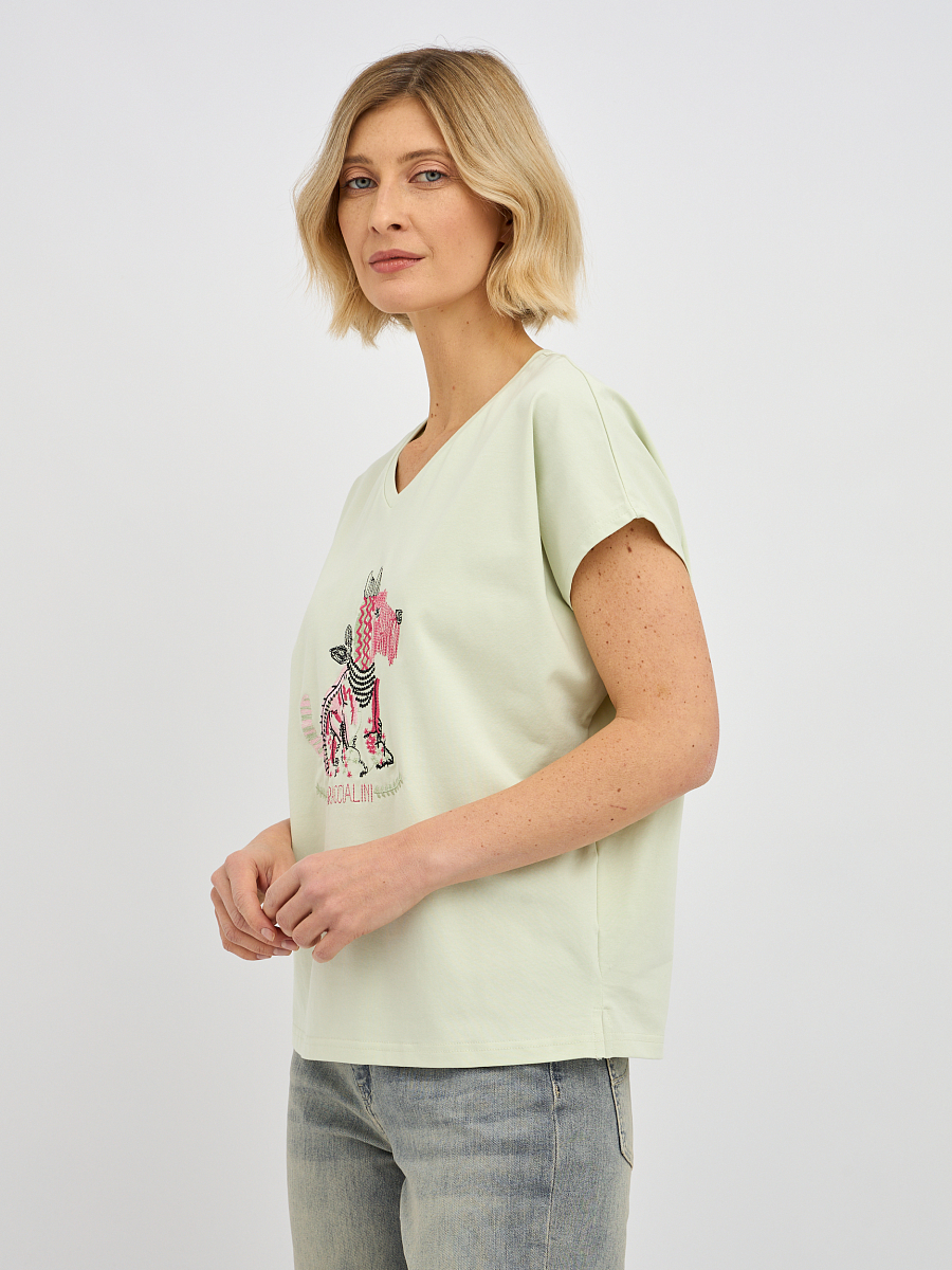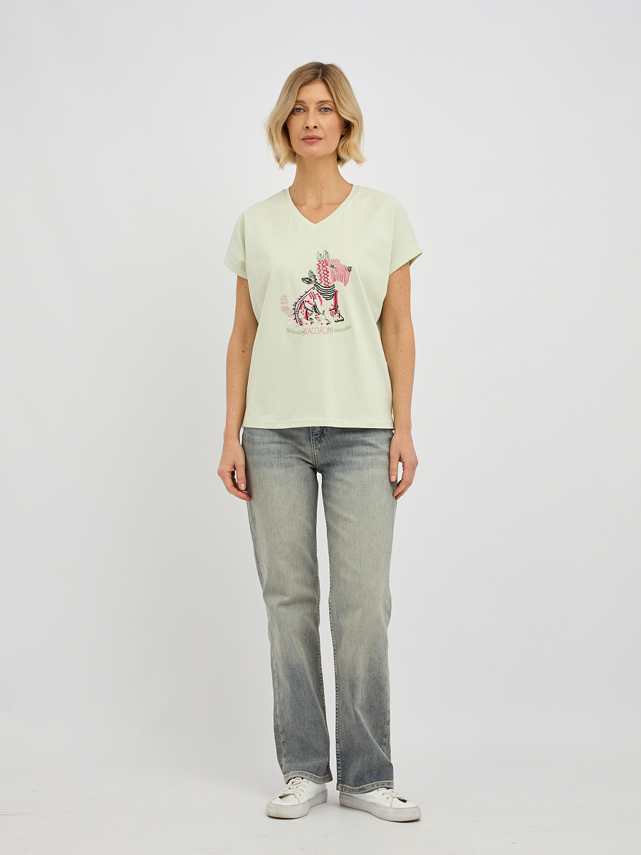 футболка женская в светло - зелёном цвете с вышивкой собачки