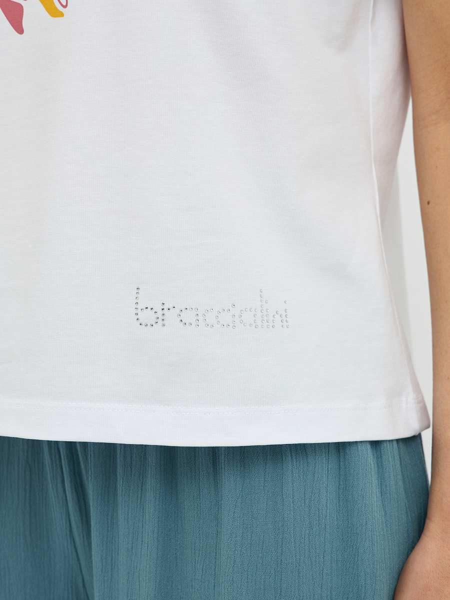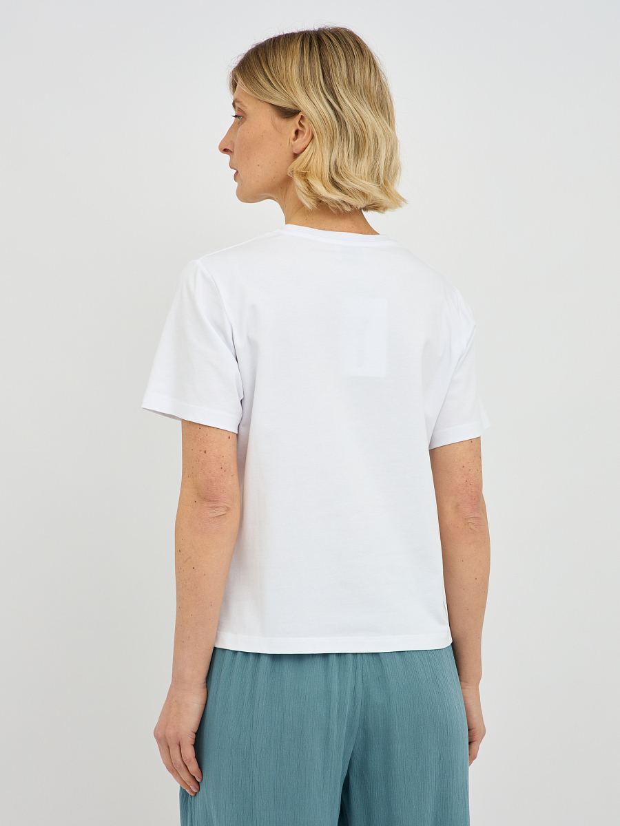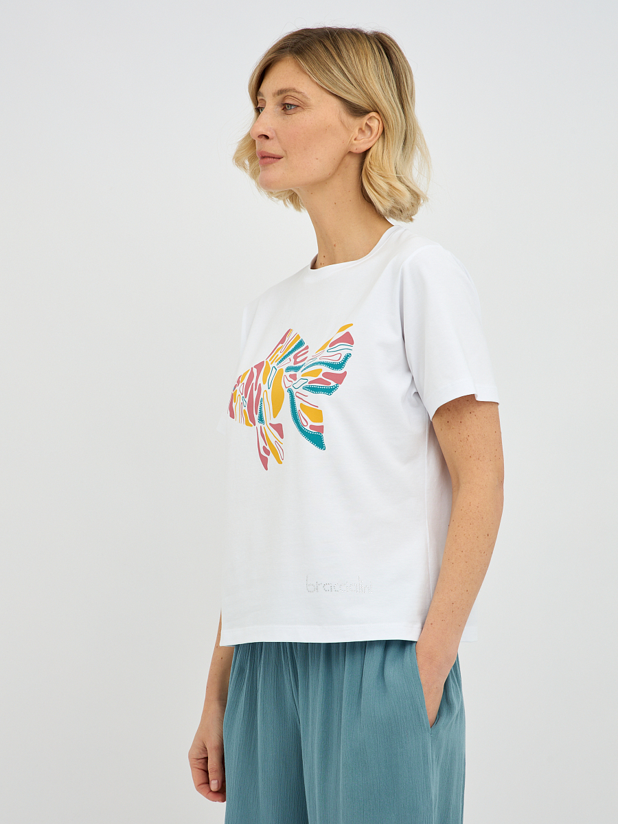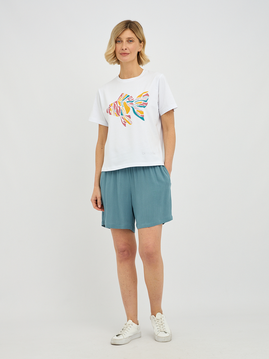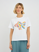 футболка женская в белом цвете с принтом рыбки и добавлением страз