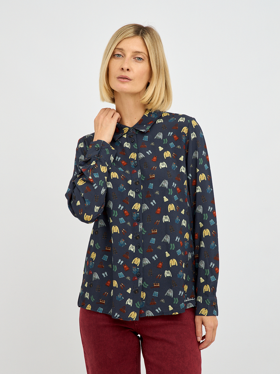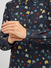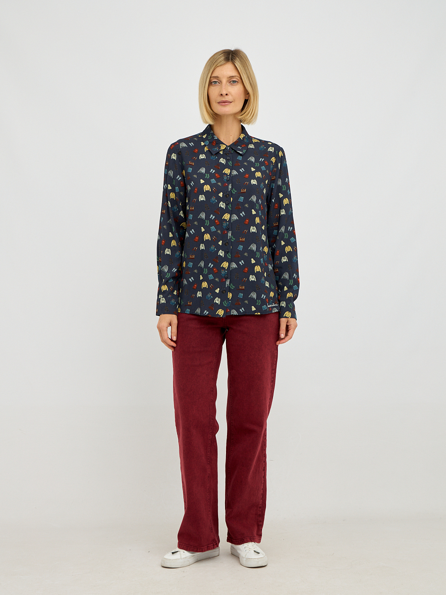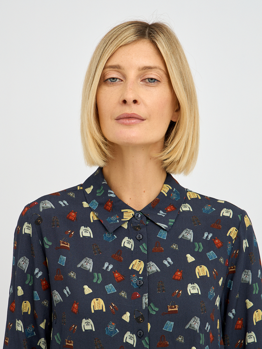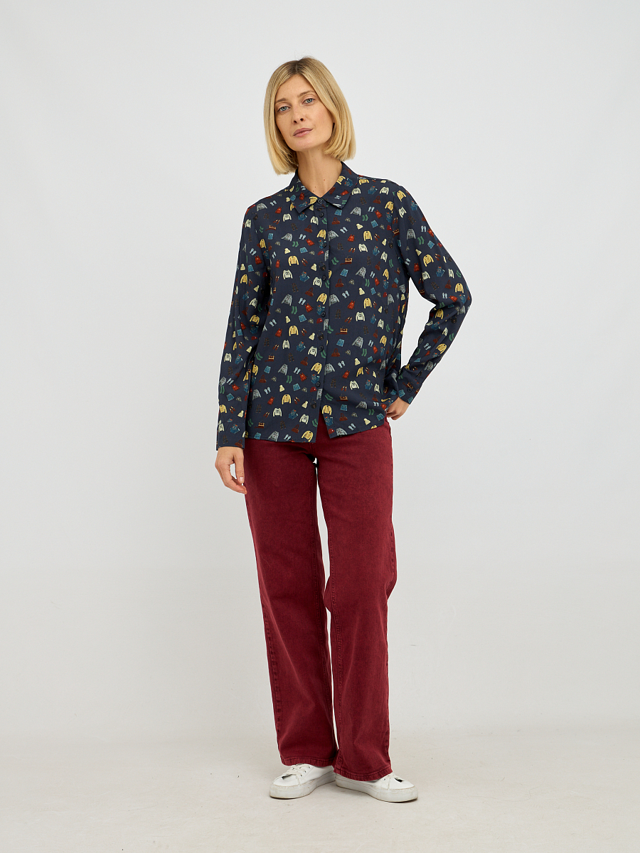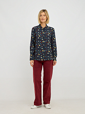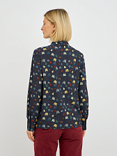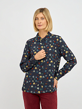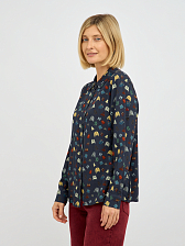 Блузка имеет уникальный принт, который добавляет яркости и индивидуальности образу. Синий цвет, ассоциирующийся с гармонией и спокойствием, легко комбинируется с различными элементами гардероба — от классических брюк до джинс и юбок.