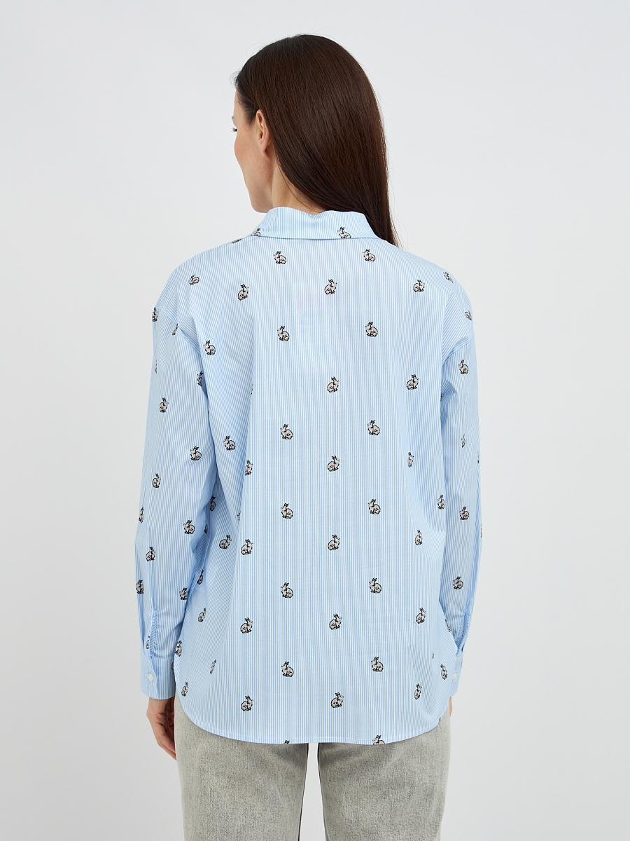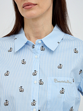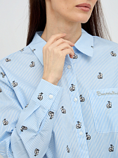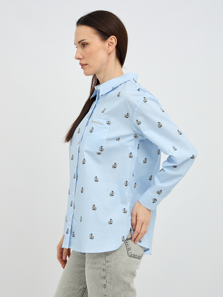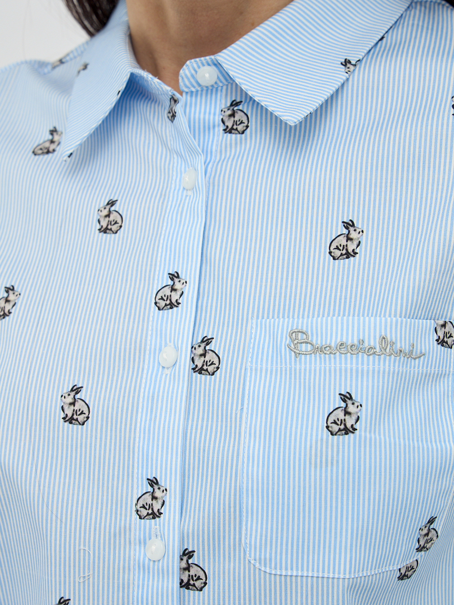 блузка женская в голубом цвете в полоску с аппликацией зайчиков
