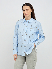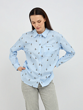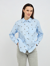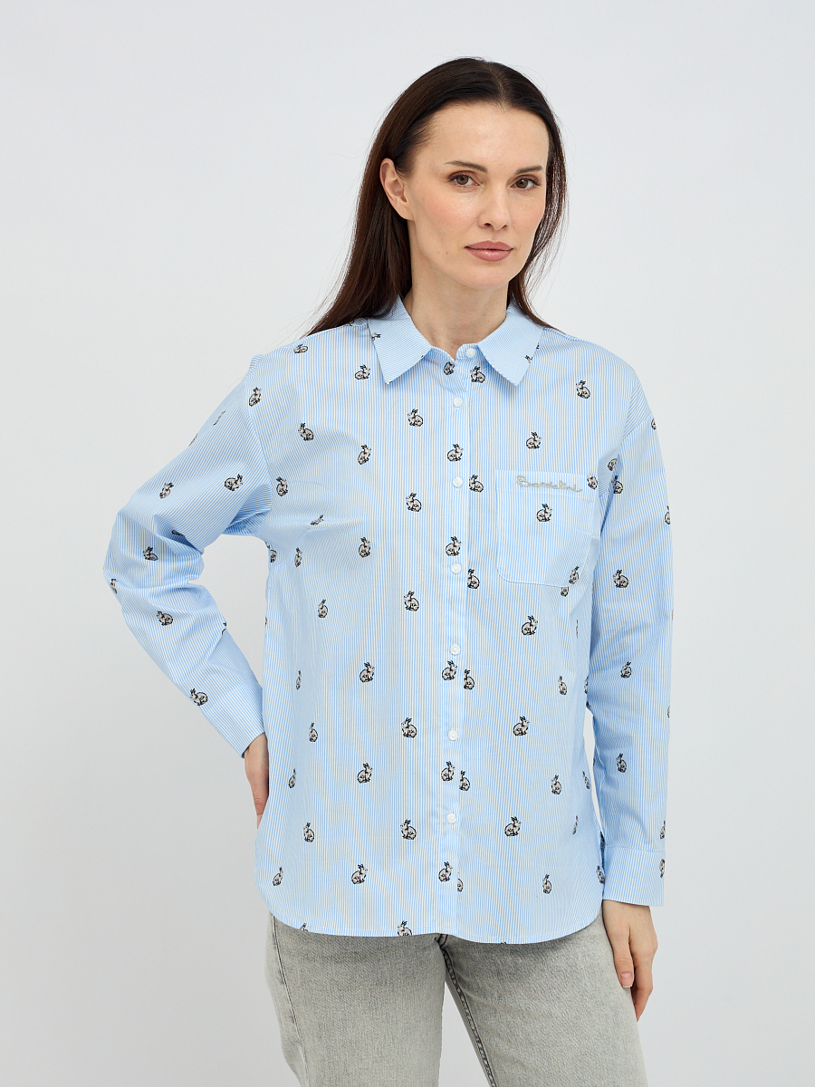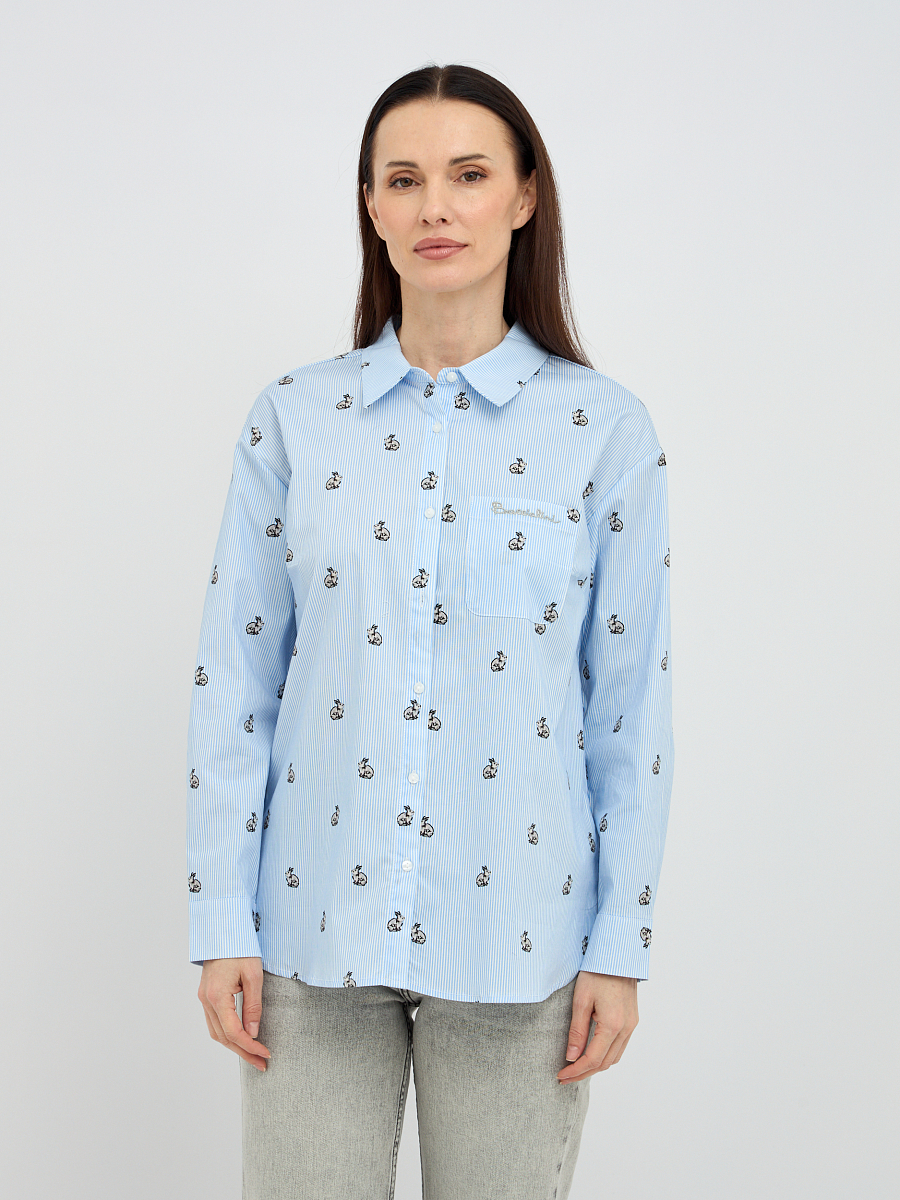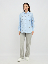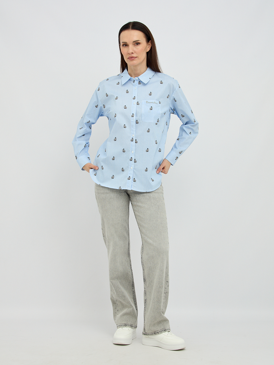 блузка женская в голубом цвете в полоску с аппликацией зайчиков