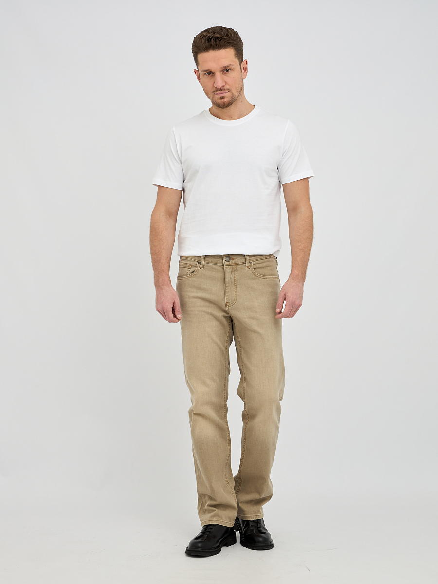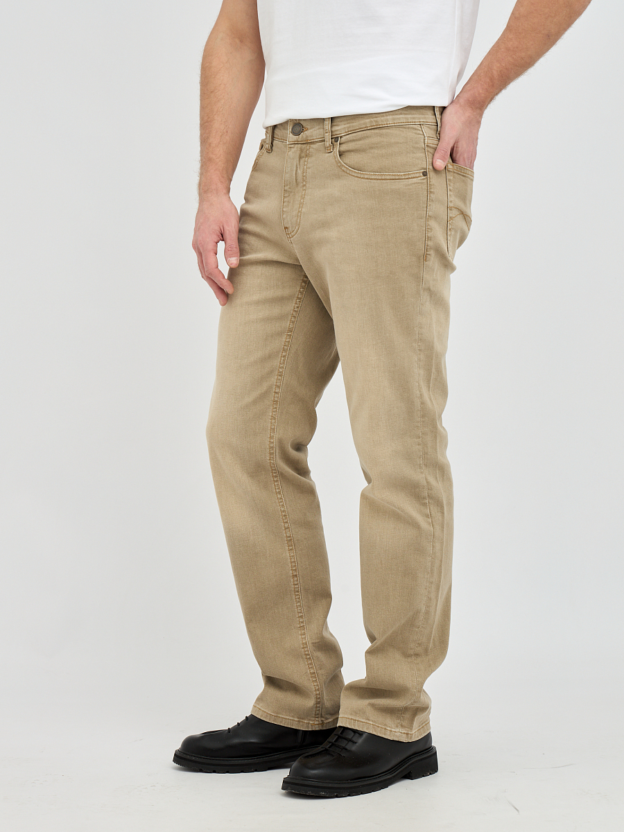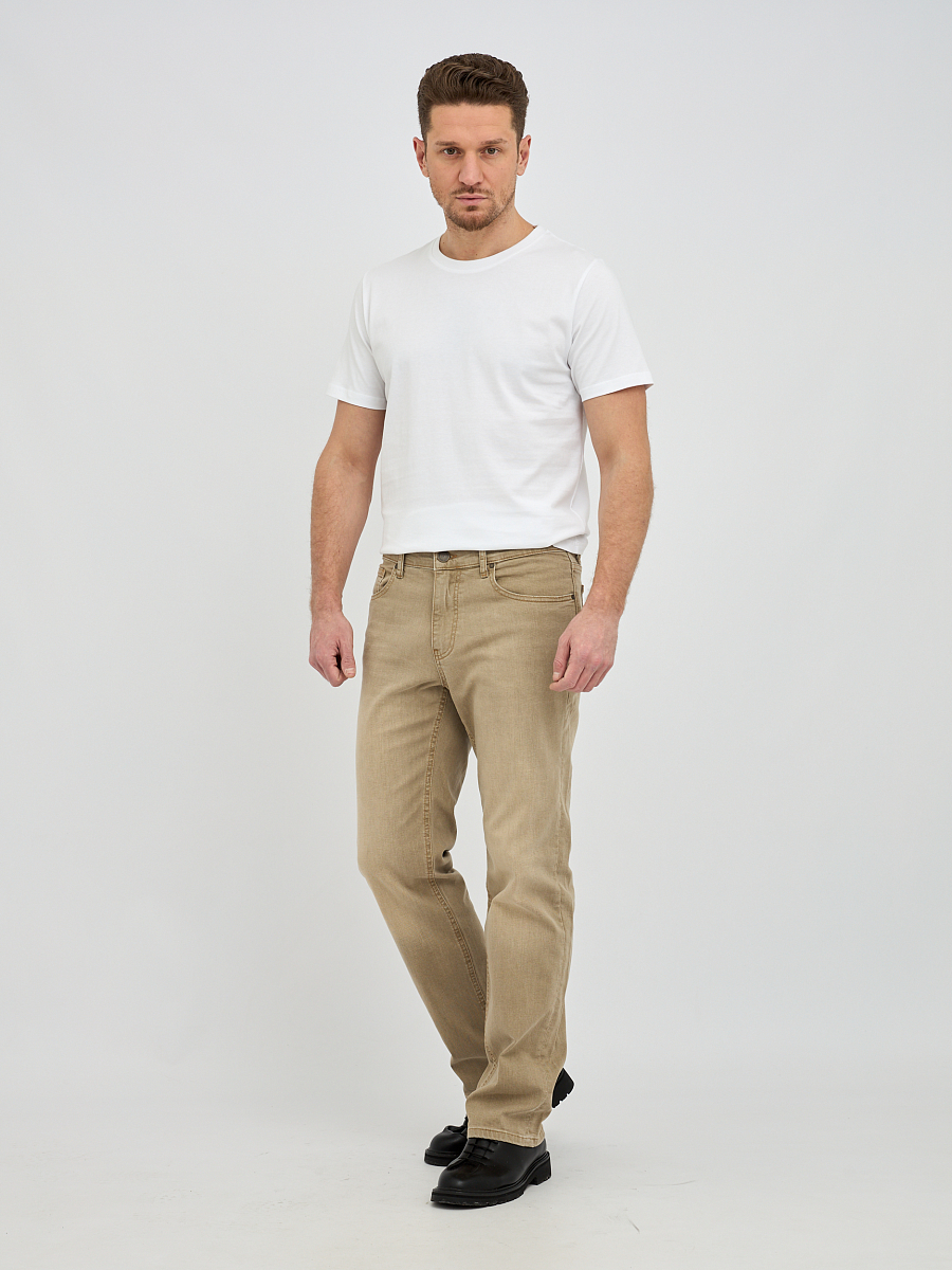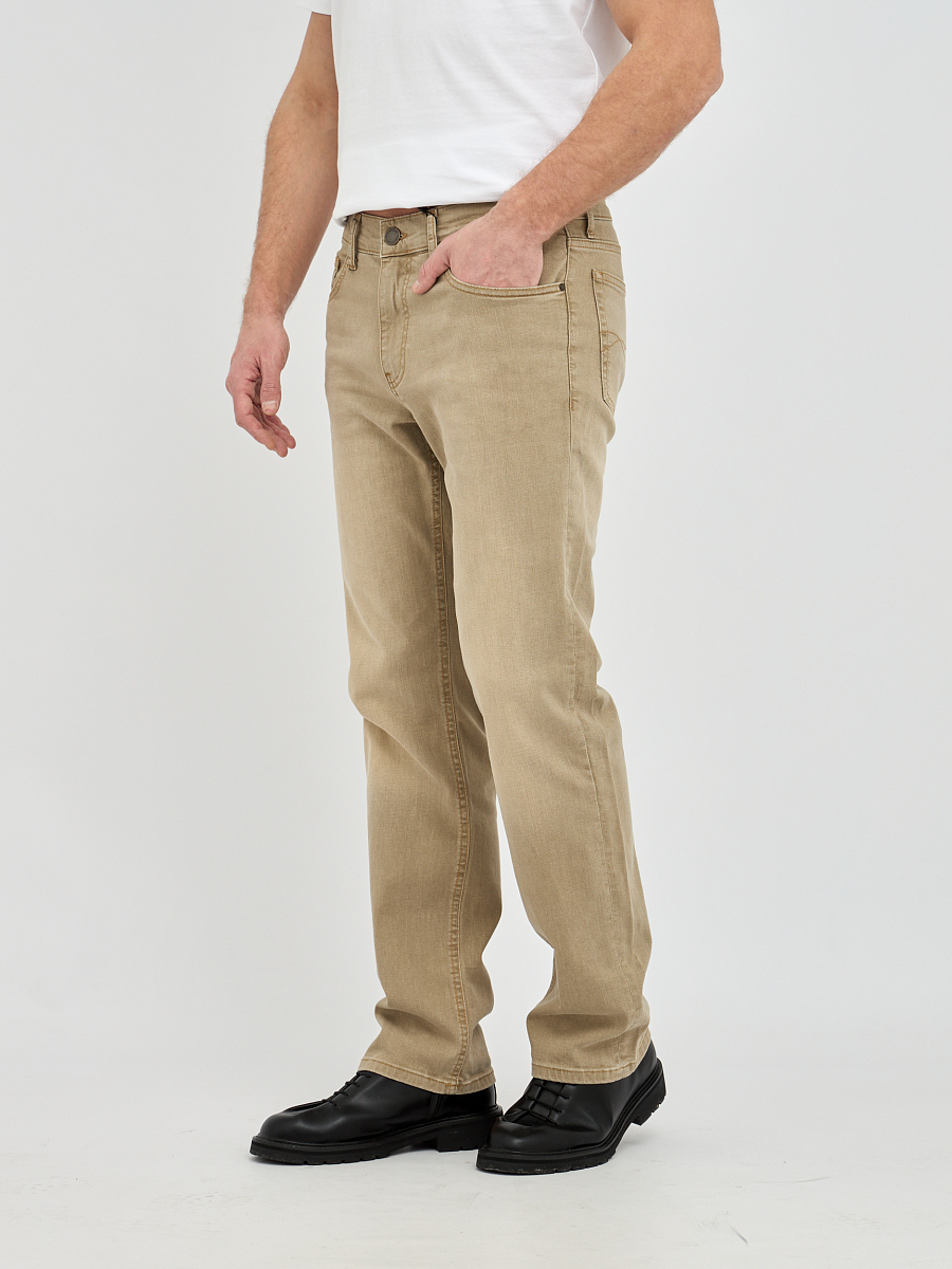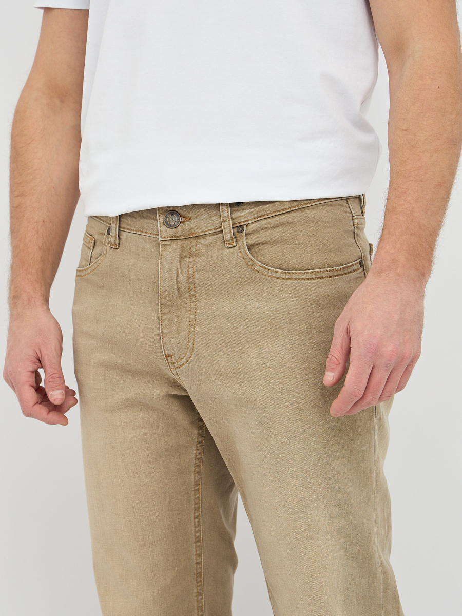 Эти стильные мужские джинсы выполнены в бежевом цвете. Бежевый цвет – это универсальный и элегантный выбор, который легко впишется в любой стиль, от повседневного до более формального. Эти джинсы станут отличной основой для создания множества образов, будь то сочетание с футболкой и кедами для непринужденного вида или с рубашкой и ботинками для более утонченного образа.