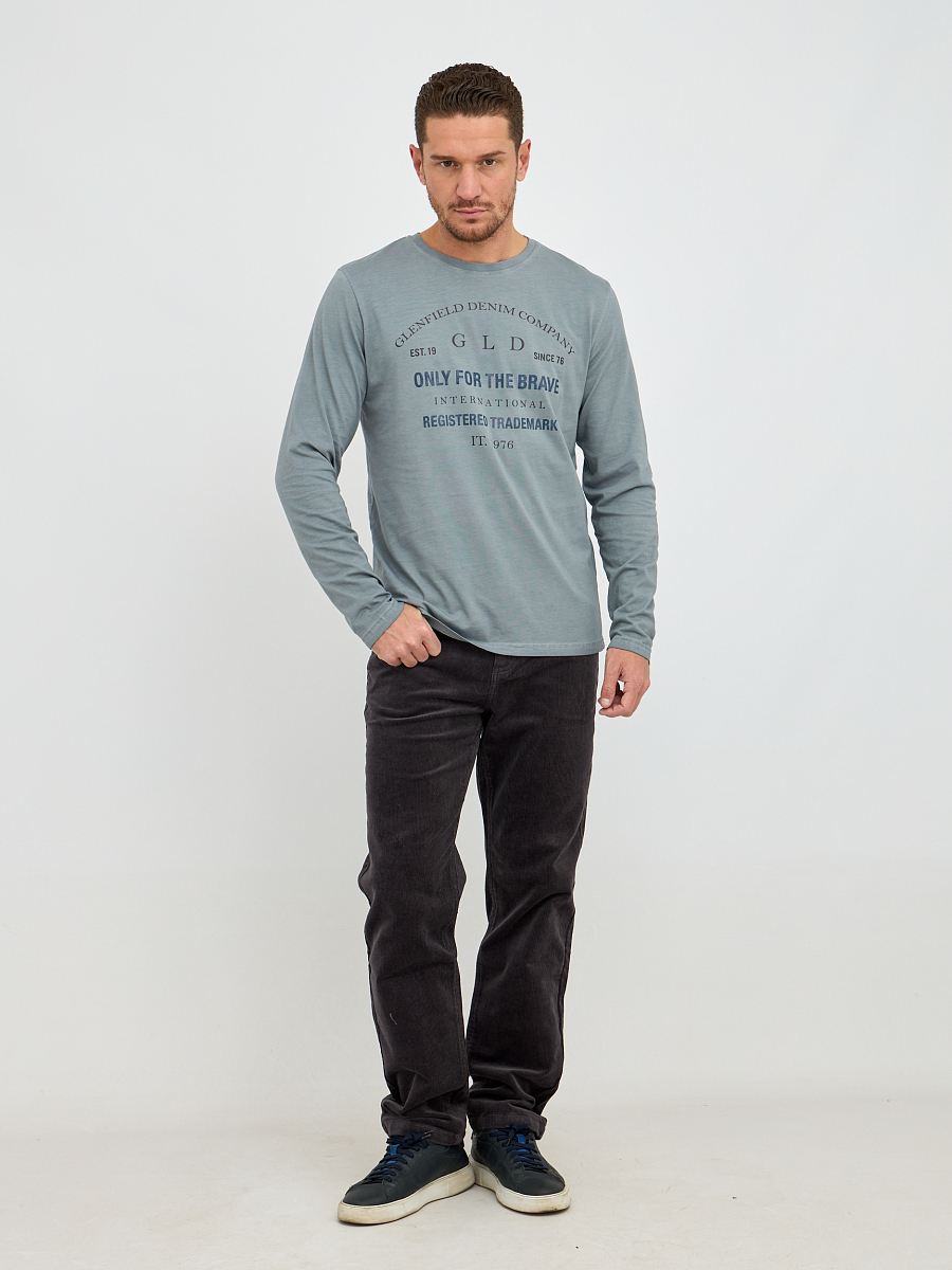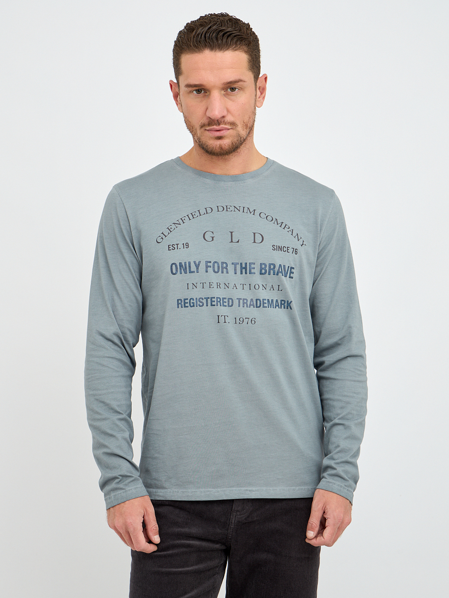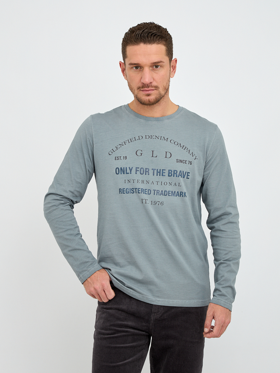 джемпер мужской в серо - голубом цвете из хлопка с надписями