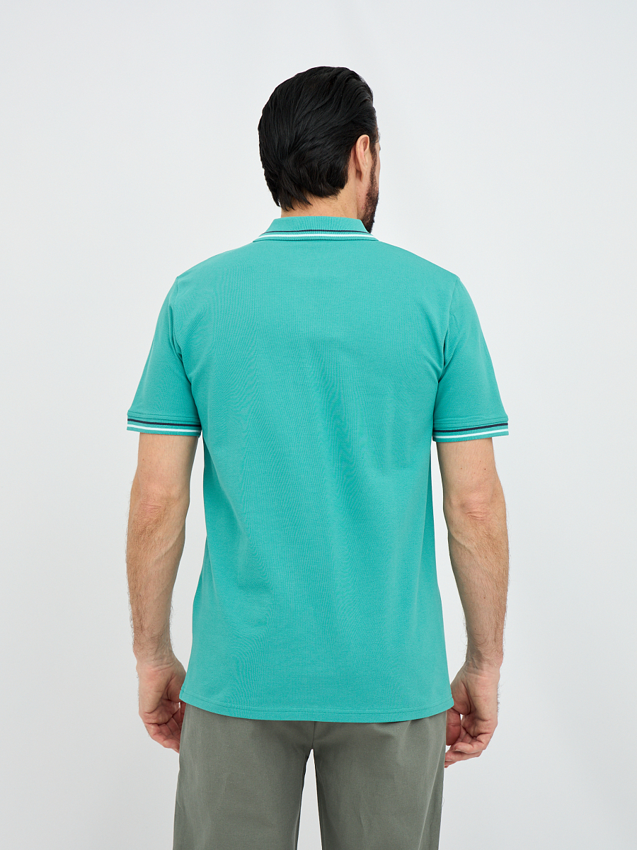 Это стильное мужское поло с контрастной окантовкой выполнено из 100% хлопка. Натуральный хлопок обеспечивает отличную воздухопроницаемость и приятные тактильные ощущения, позволяя коже дышать и чувствовать себя комфортно в течение всего дня.
