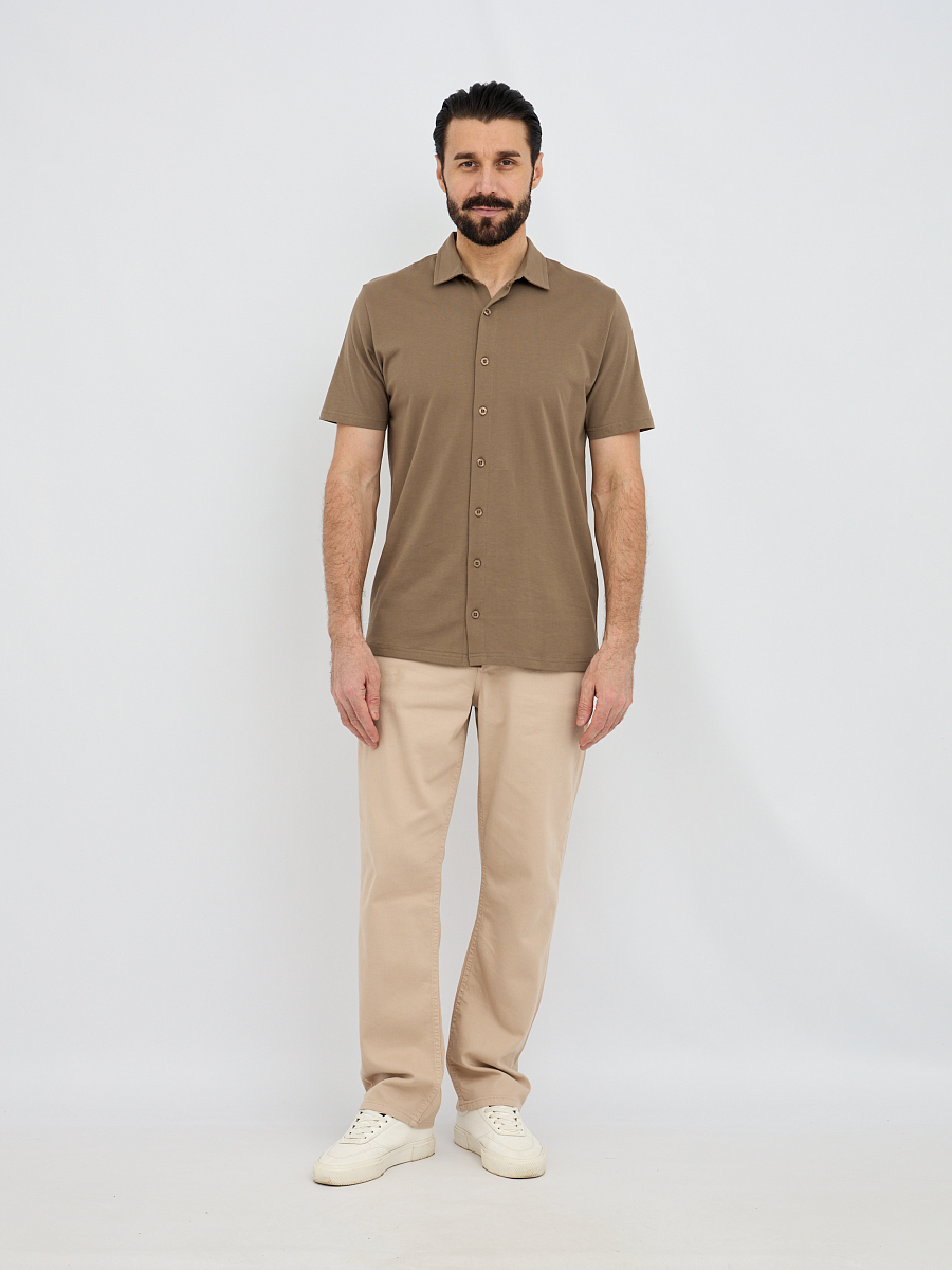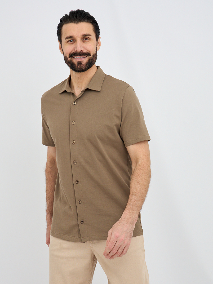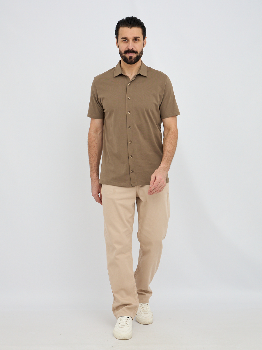 Рубашка выполнена из натурального хлопка. Хлопок — это натуральный материал, который обеспечивает отличную воздухопроницаемость и комфорт в течение всего дня. Он мягкий на ощупь, не вызывает аллергии и позволяет коже дышать, что особенно важно в теплую погоду.