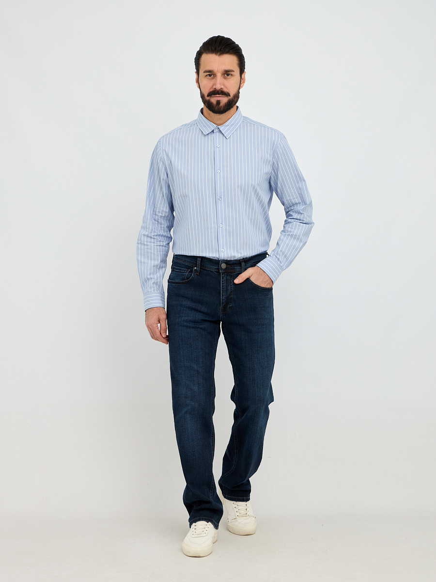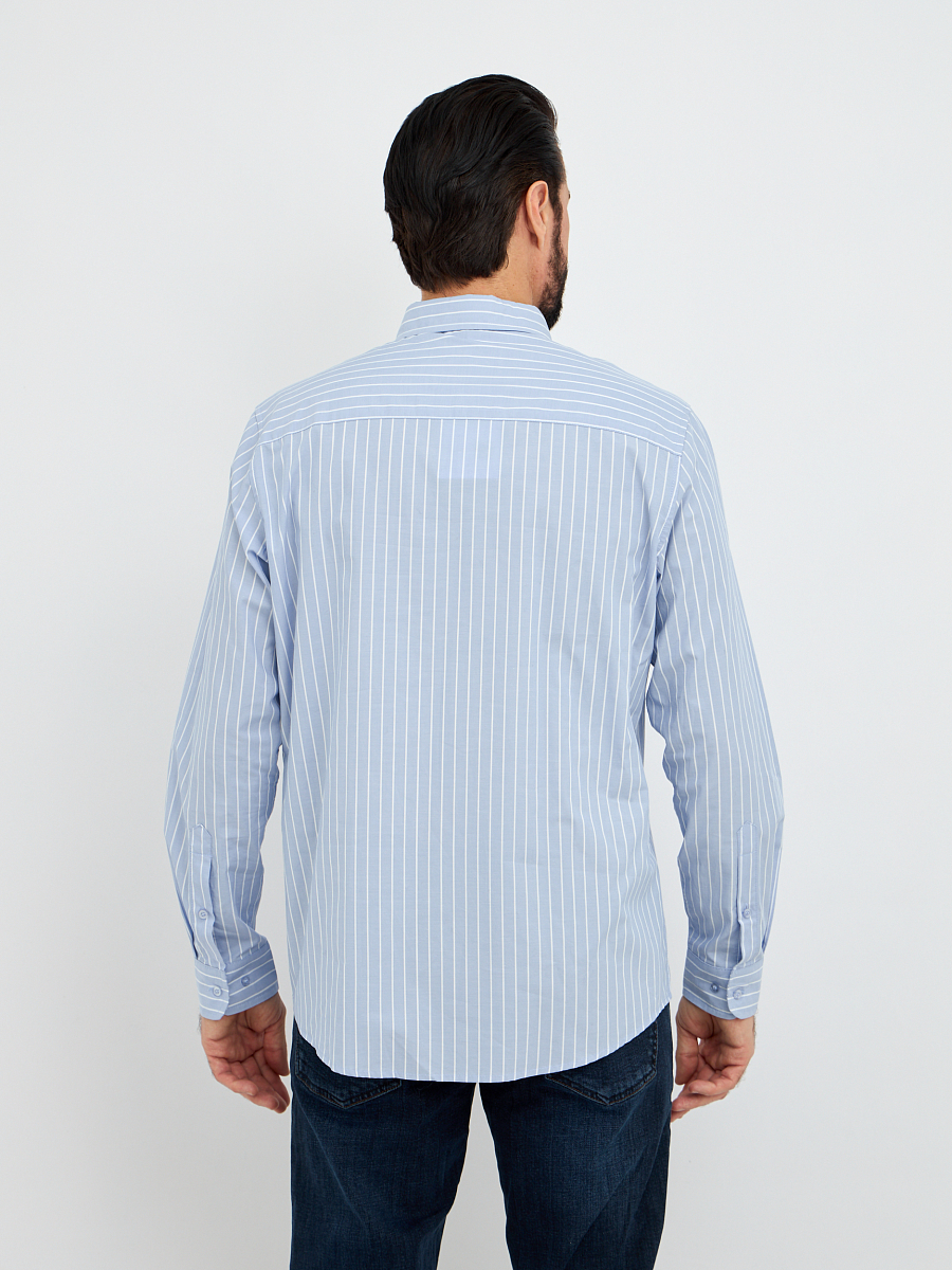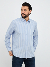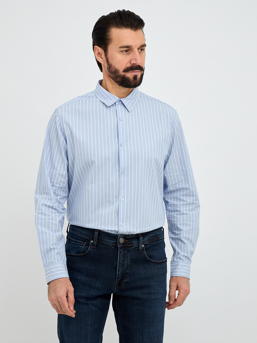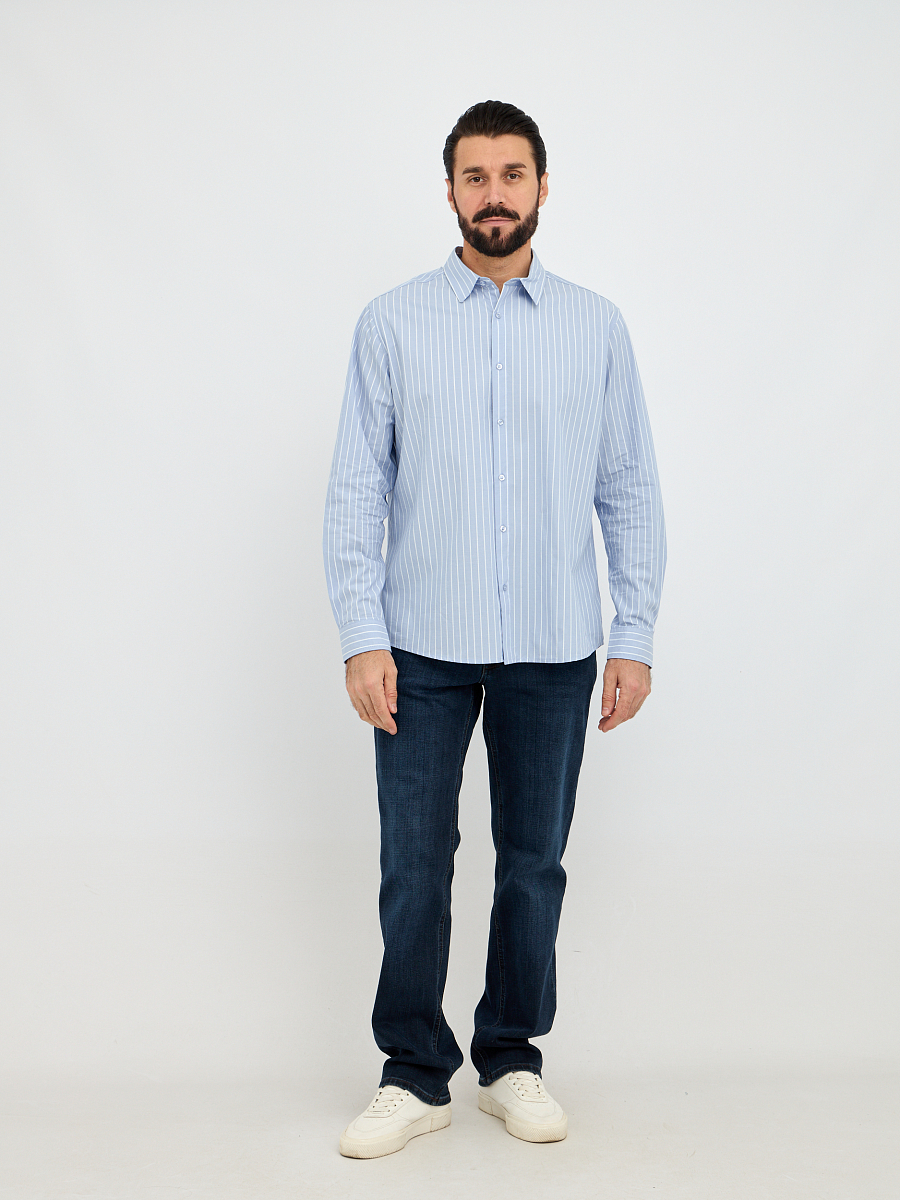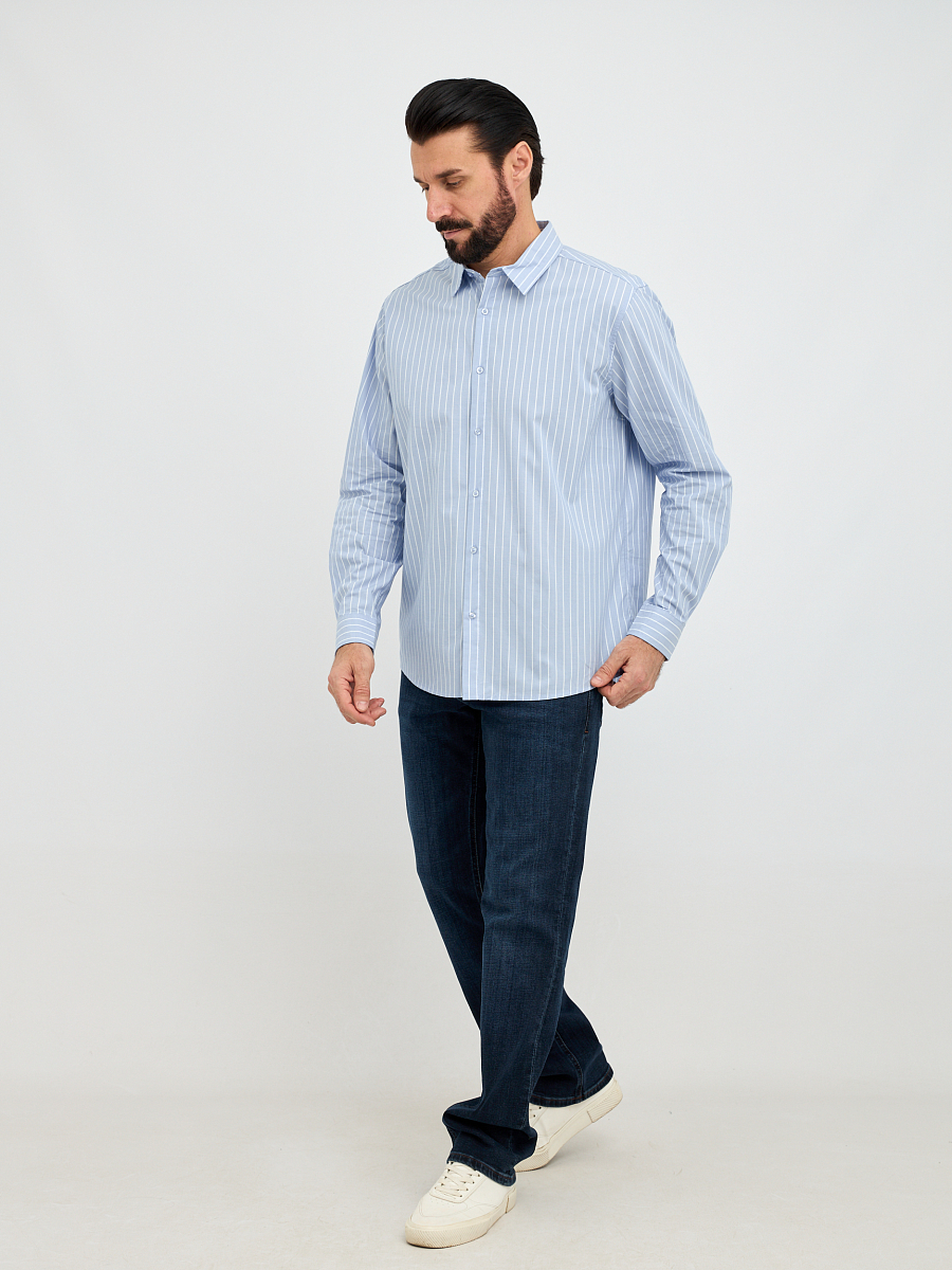 Голубой цвет в сочетании с полосатым узором придаёт рубашке свежий и современный вид. Она отлично подходит как для повседневной носки, так и для более формальных мероприятий. Сочетайте её с джинсами или брюками, и вы всегда будете выглядеть стильно и уверенно.
