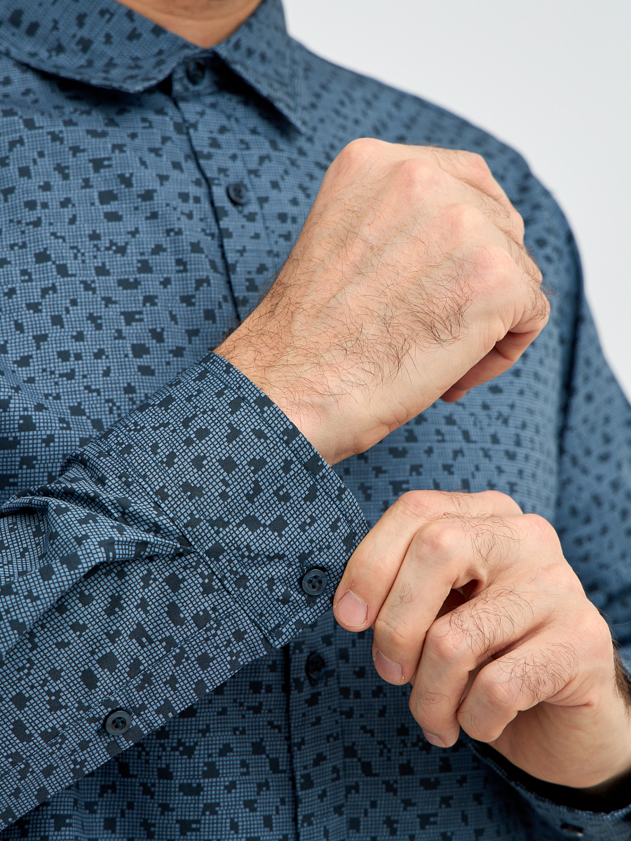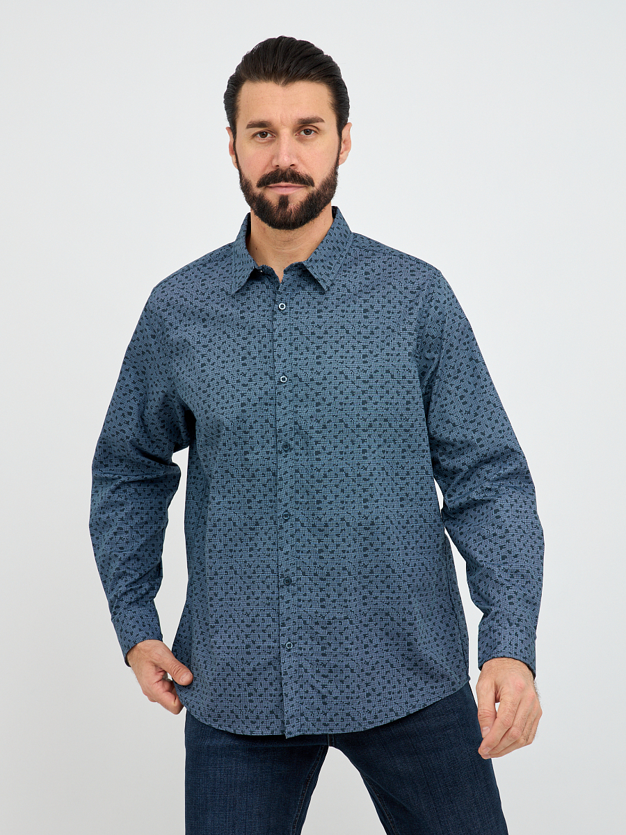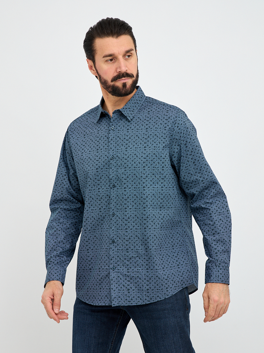 Синий цвет в сочетании с оригинальным принтом придаст вашему образу яркость и индивидуальность. Эта рубашка отлично подойдет как для повседневной носки, так и для более формальных мероприятий.