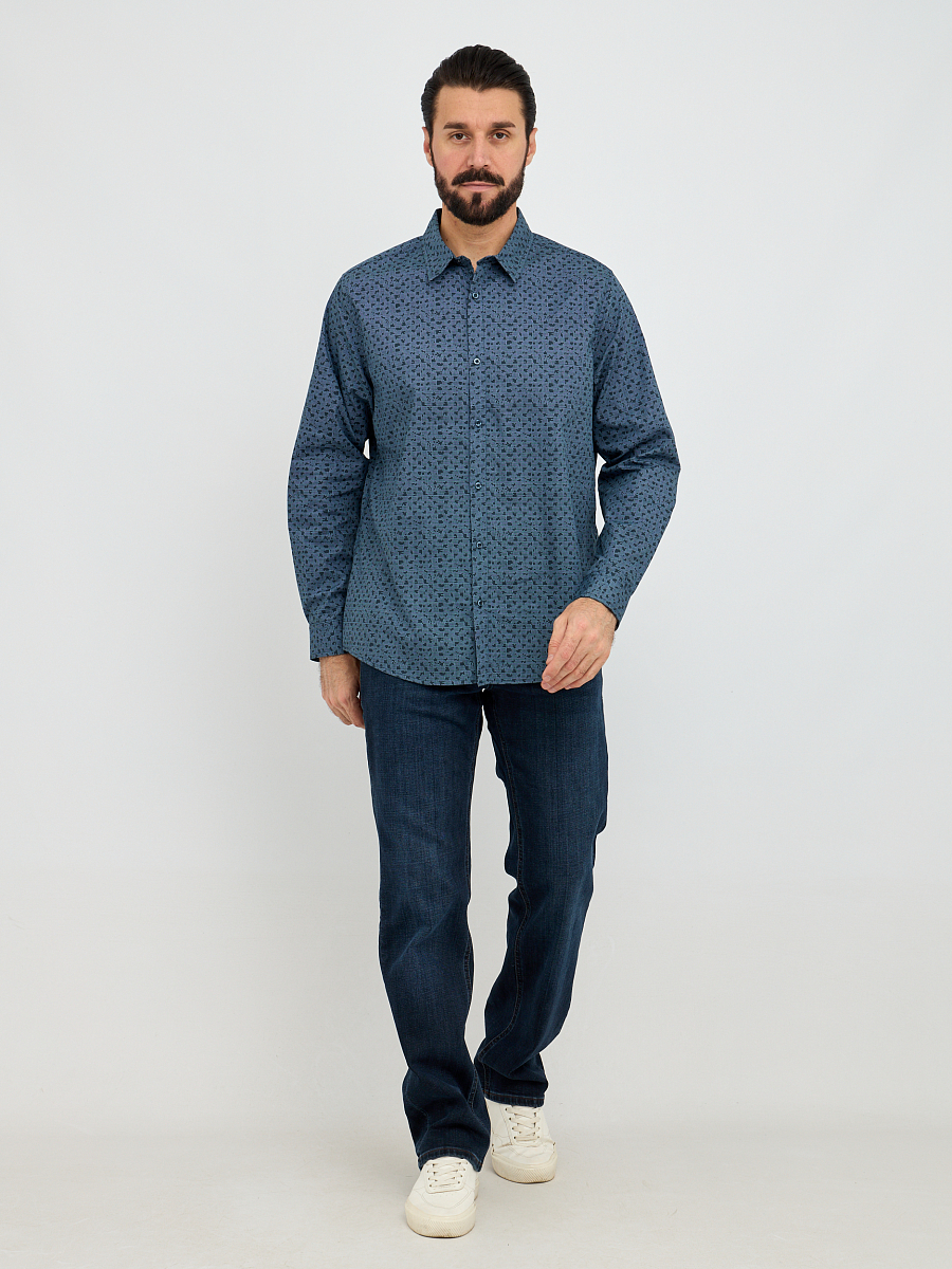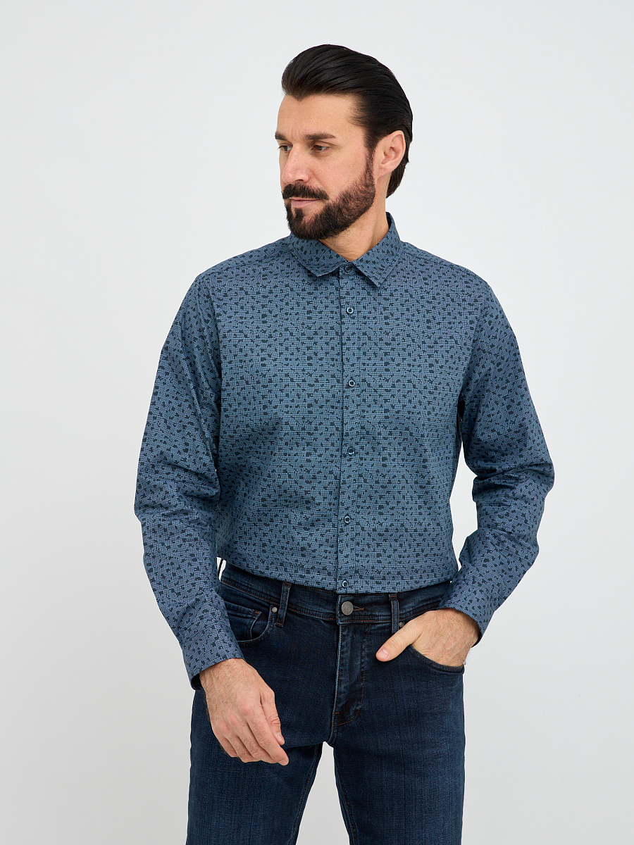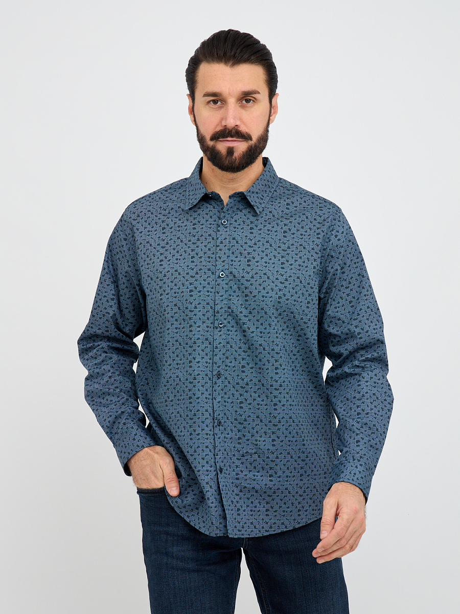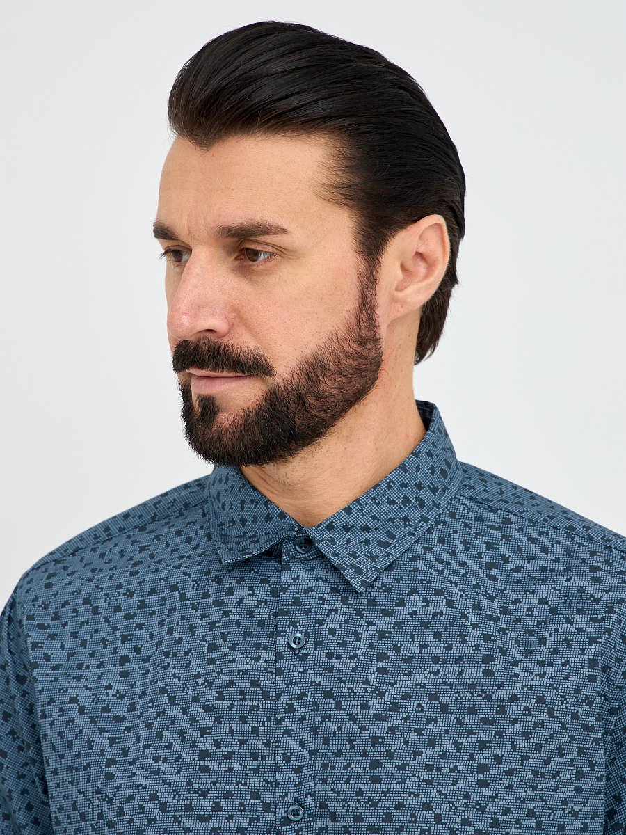 Синий цвет в сочетании с оригинальным принтом придаст вашему образу яркость и индивидуальность. Эта рубашка отлично подойдет как для повседневной носки, так и для более формальных мероприятий.