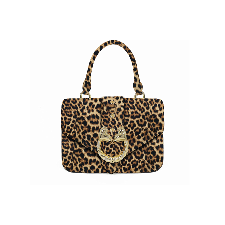 Стильная кожаная сумка с леопардовым принтом и лаконичным дизайном. Её изюминка – элегантная "ювелирная" застёжка с золотистым витым элементом, кристаллами и двойными сердцами. Носите её в руке или на плече благодаря удобной ручке и съёмному ремню – для тех, кто любит стиль и романтику в деталях.