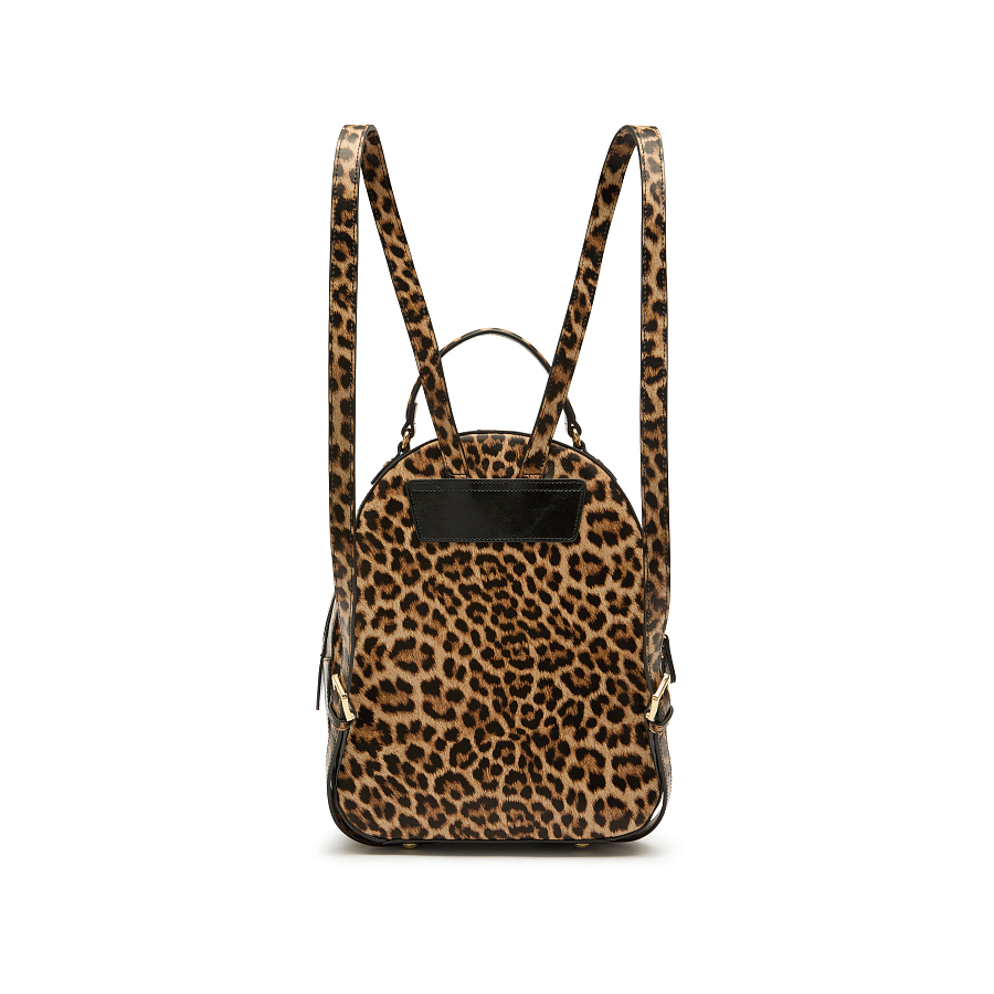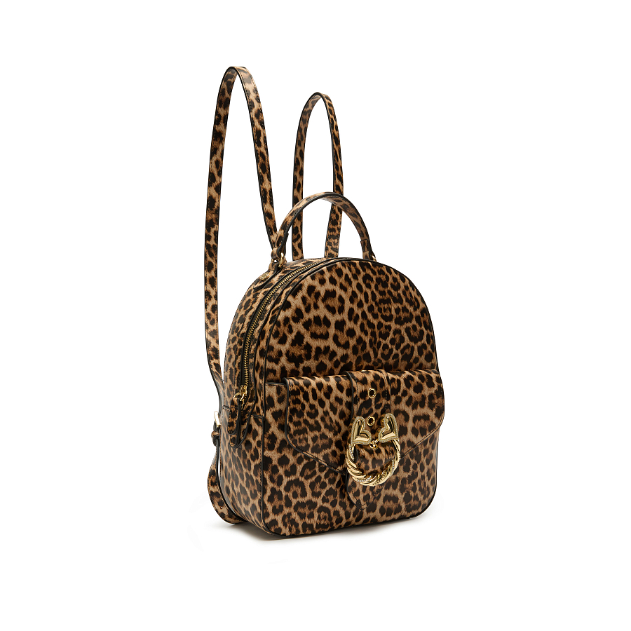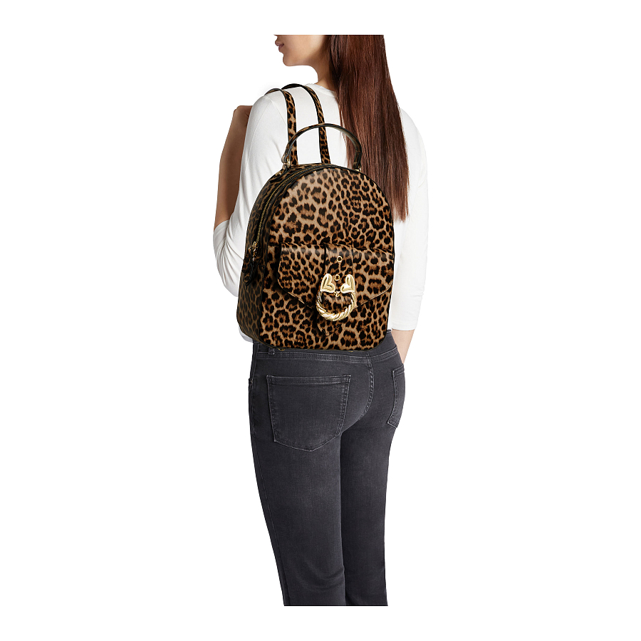 Изысканный кожаный рюкзак с дерзким леопардовым принтом, созданный для современной женщины. Его изюминка – роскошный золотистый элемент в виде витого сердечка, который добавляет романтики и шика. Удобство продумано до мелочей: регулируемые лямки и верхняя ручка обеспечивают комфорт в любой ситуации.