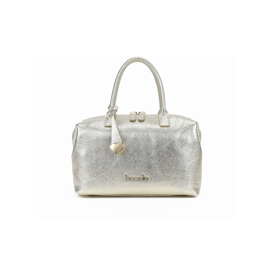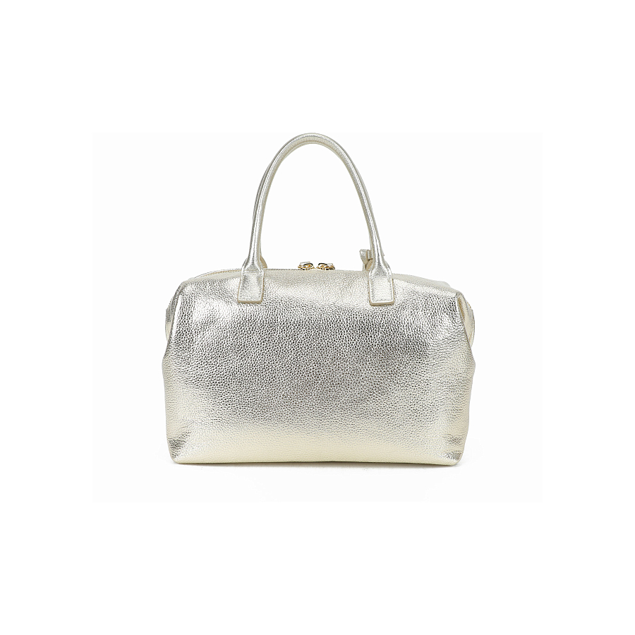 сумка боулинг из натуральной кожи в серебряном цвете