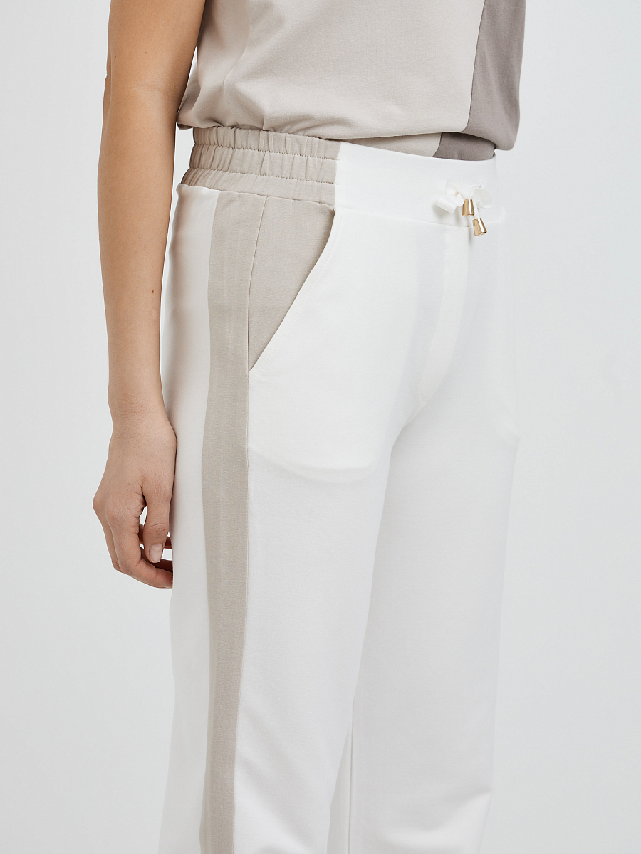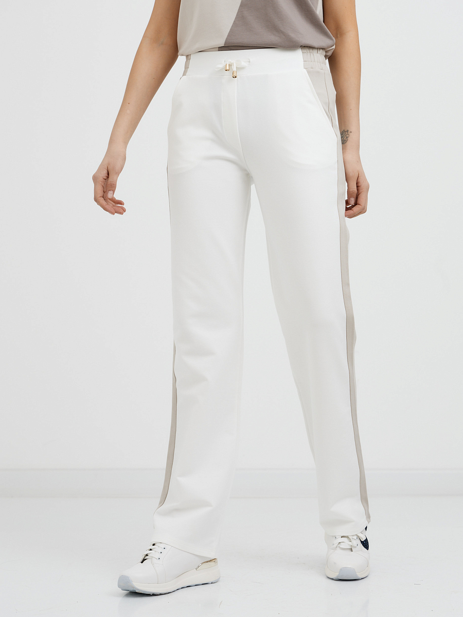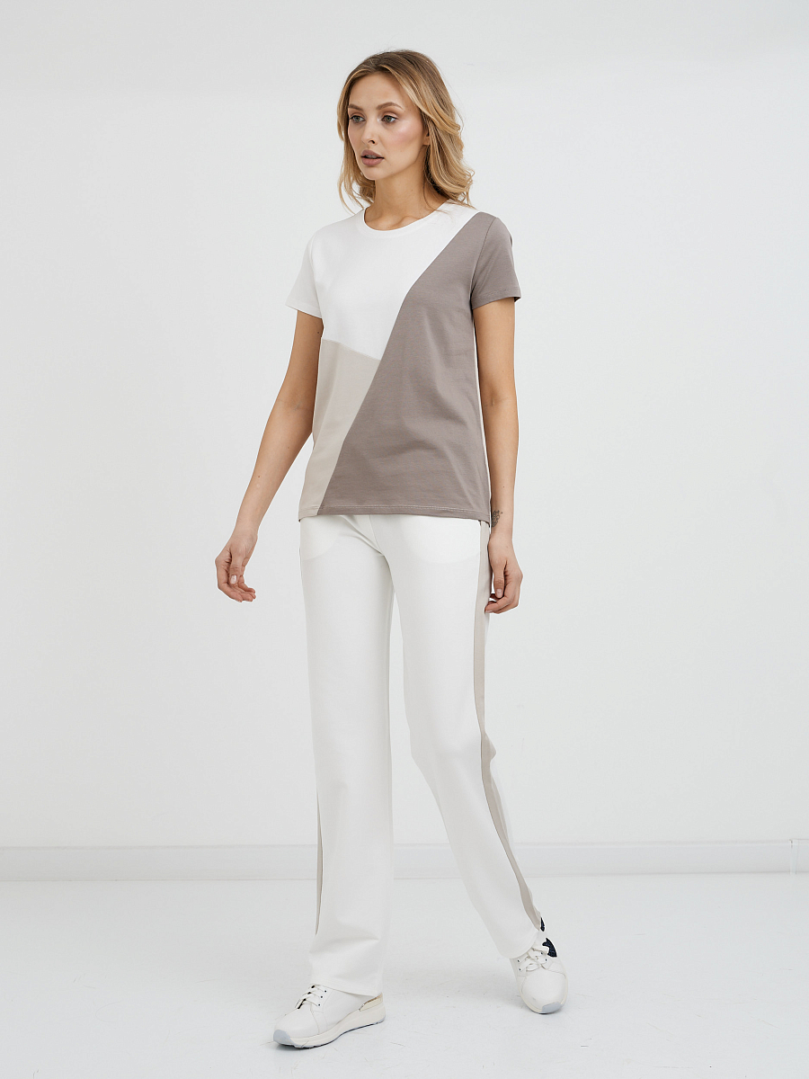 Такие спортивные брюки идеально сочетаются с нашей белой футболкой в стиле "колор блок". Но на этом мы не ограничиваемся! Экспериментируйте с цветами и принтами футболок, добавьте любимые кроссовки, и стильный спортивный образ готов!