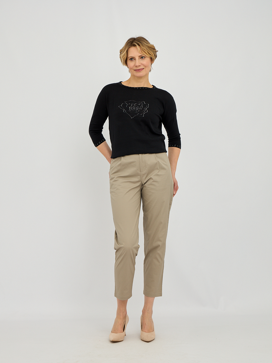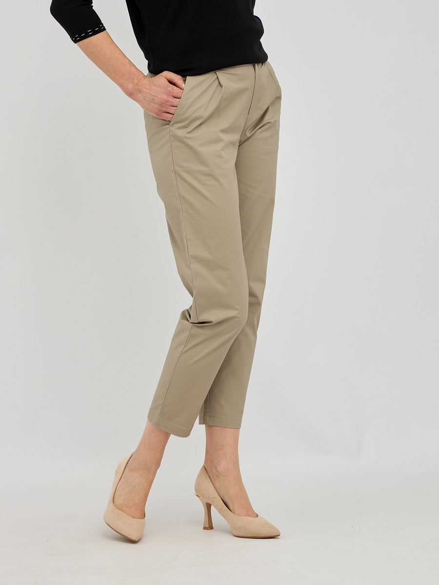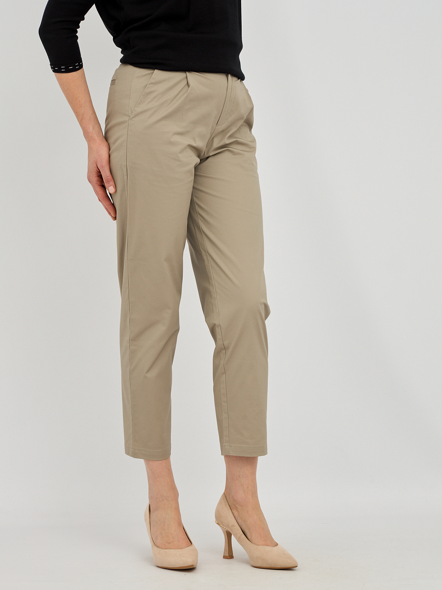 Эти стильные женские брюки прямого кроя выполнены из высококачественного хлопка с добавлением эластана. Брюки идеально подойдут для создания как повседневного, так и более нарядного образа.
