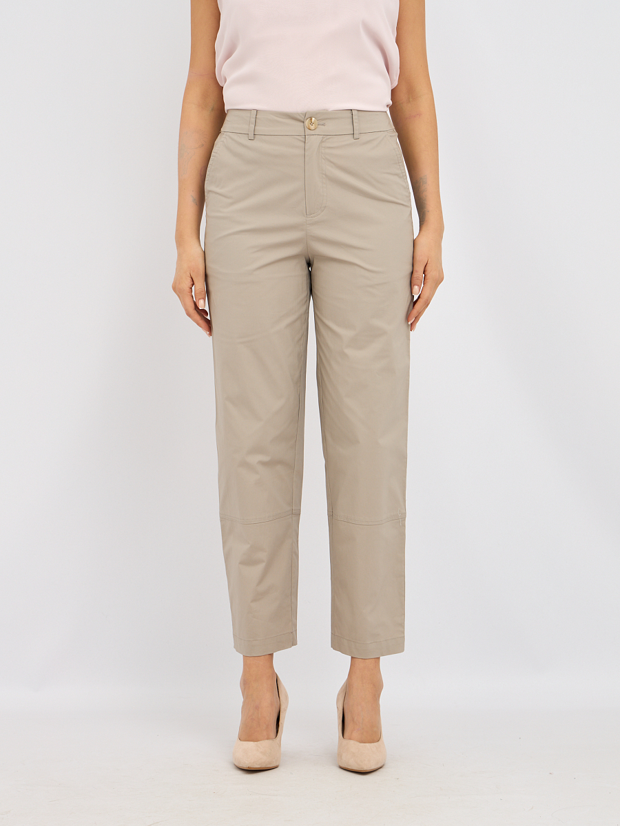 Эти женские брюки прямого кроя — идеальное сочетание стиля и комфорта. Брюки выполнены из высококачественного хлопка с добавлением эластана, они обеспечивают отличную посадку и свободу движений. Благодаря своему составу, брюки обладают высокой воздухопроницаемостью и приятны на ощупь, что делает их идеальными для повседневной носки.