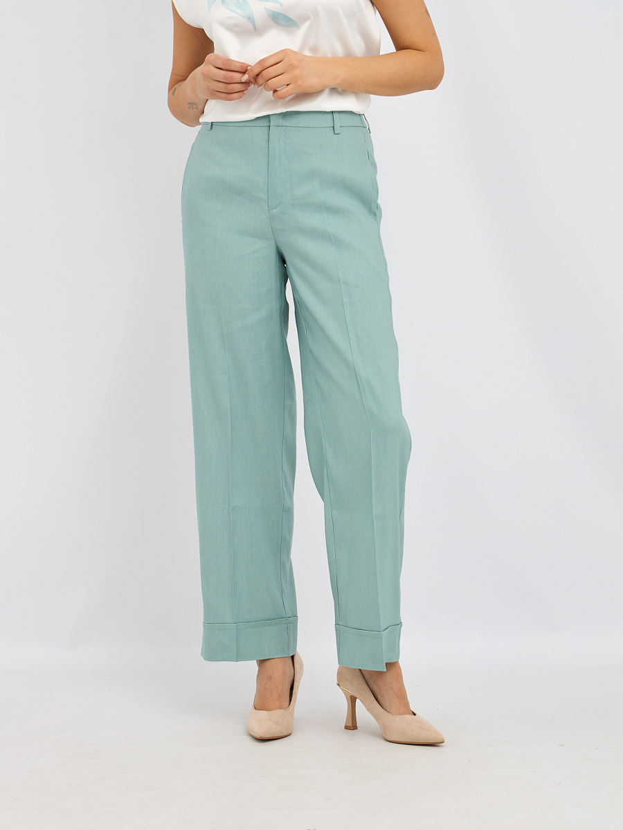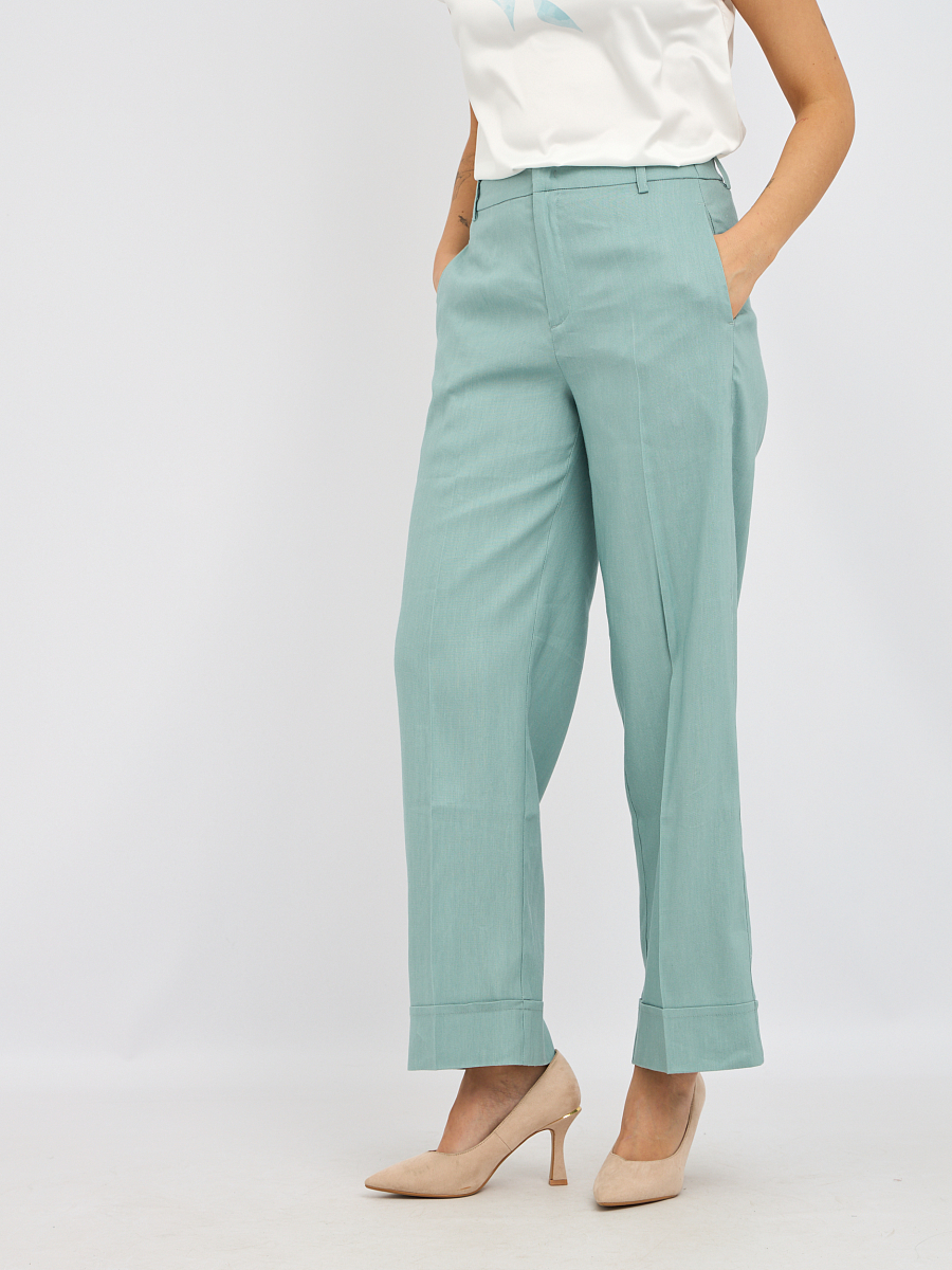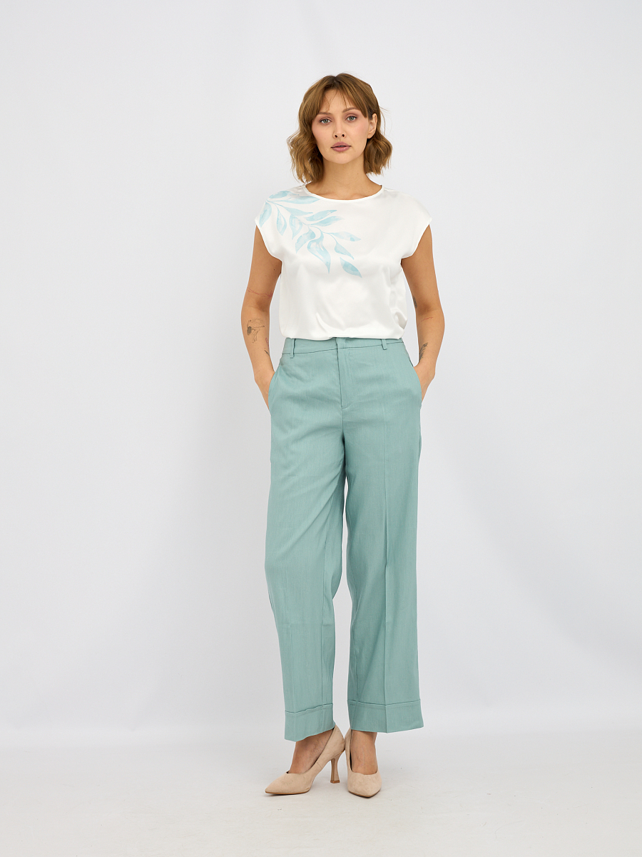 Брюки свободно сидят по фигуре, создавая элегантный силуэт и обеспечивая максимальный комфорт в носке. Стильные подвороты добавляют изюминку.