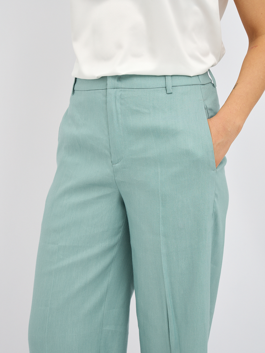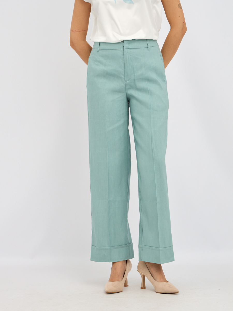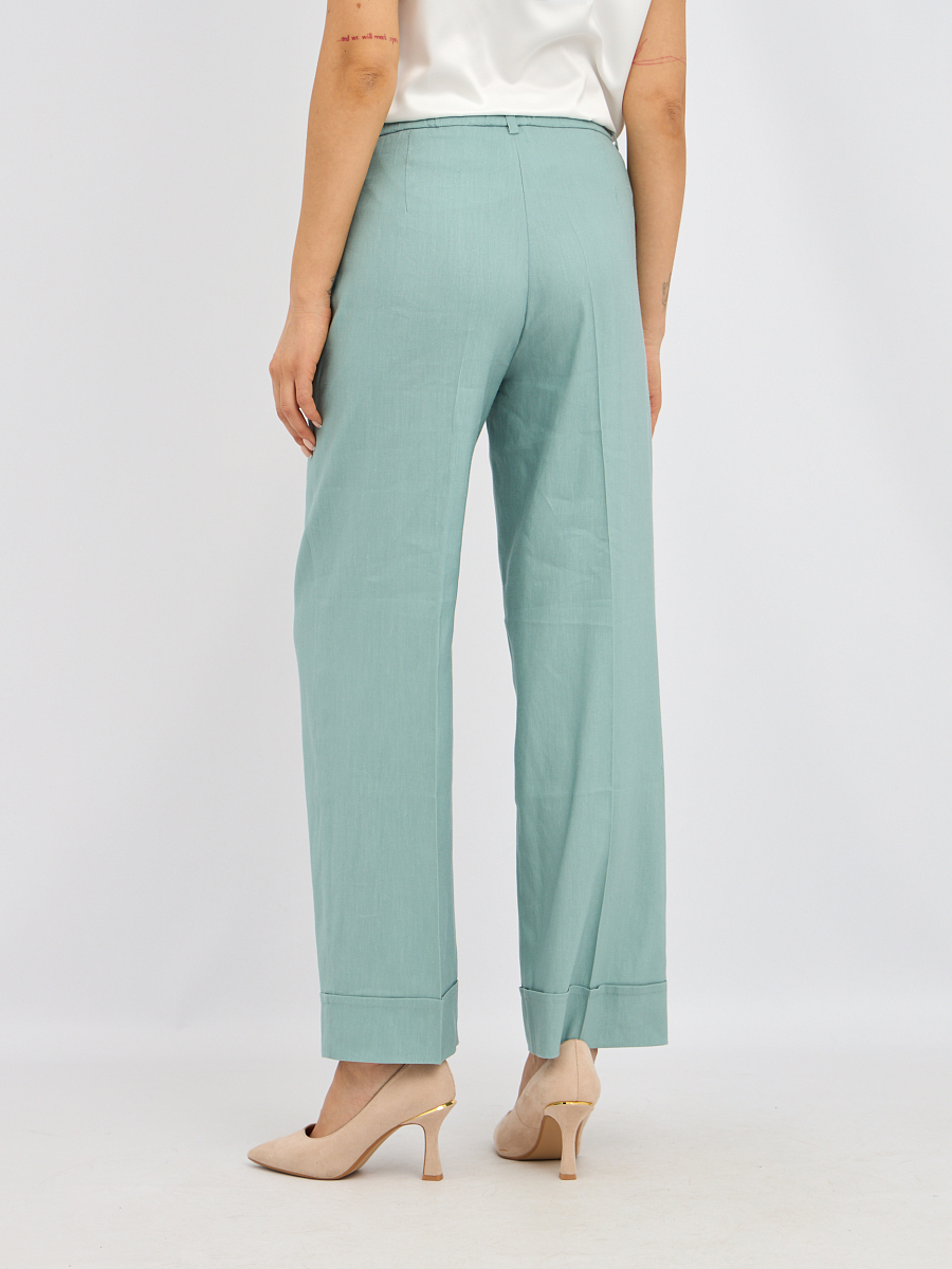 Брюки свободно сидят по фигуре, создавая элегантный силуэт и обеспечивая максимальный комфорт в носке. Стильные подвороты добавляют изюминку.