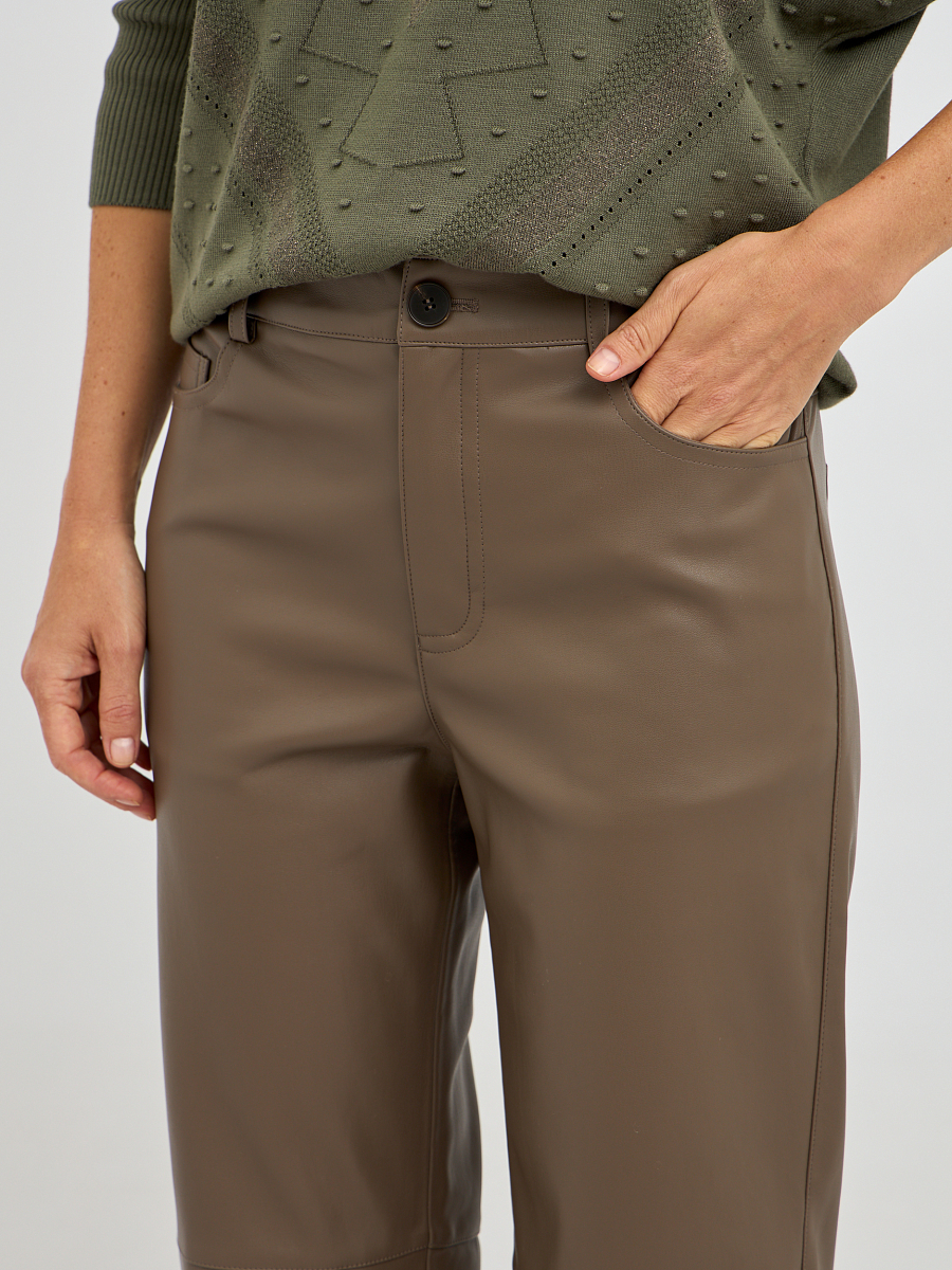 Эти элегантные женские брюки из экокожи – идеальное сочетание стиля и практичности. Высокая износостойкость материала и простота в уходе делают эти брюки превосходным выбором для повседневной носки, сохраняя их первозданный вид надолго.