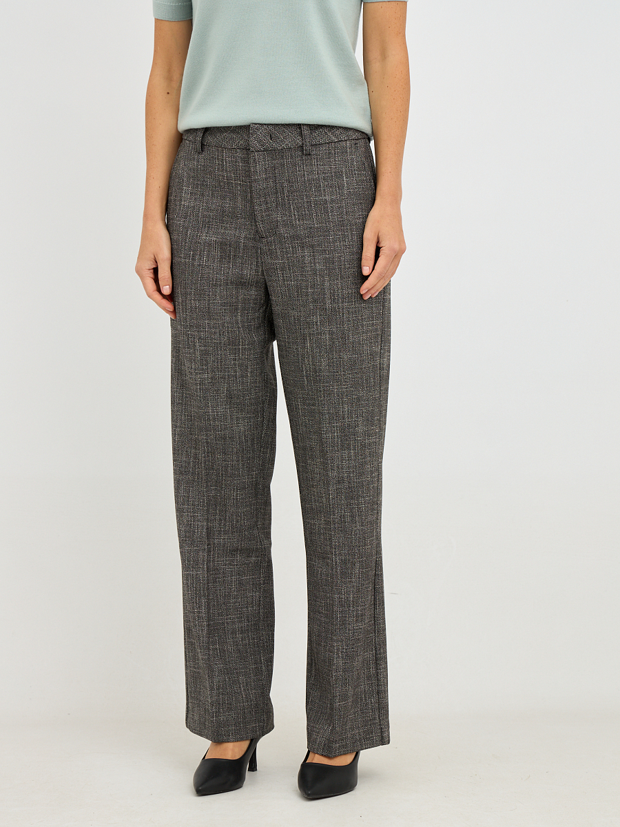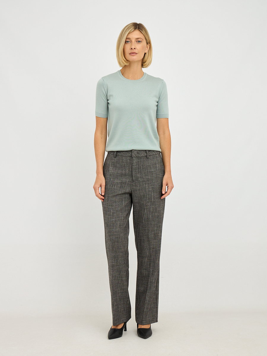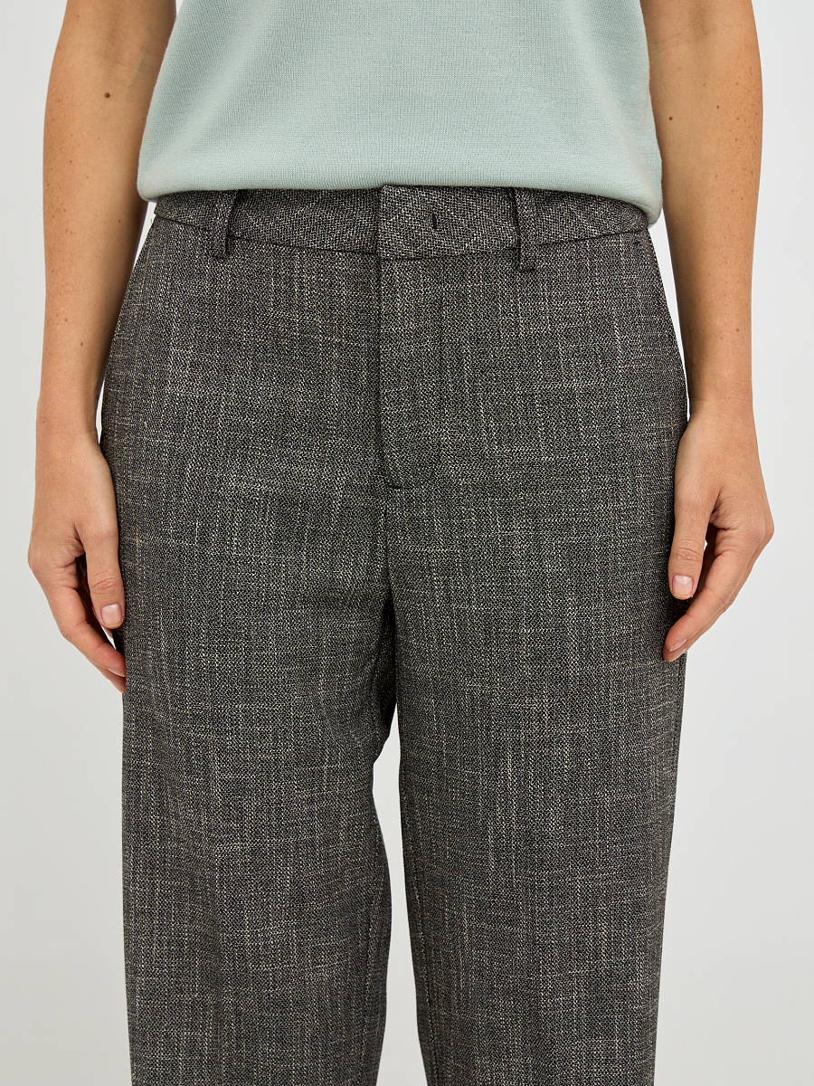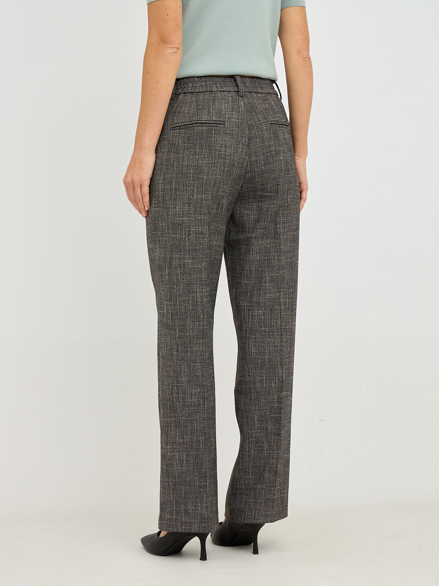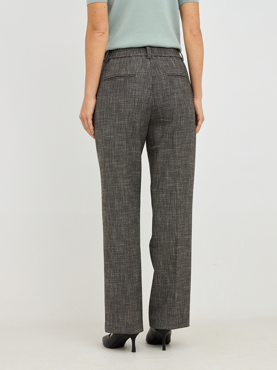 Прямой, слегка зауженный к низу силуэт, скроен, чтобы подчеркнуть изящность женской фигуры, не стесняя движений. Высокая посадка добавляет элегантности и визуально удлиняет ноги, делая их стройнее и привлекательнее.