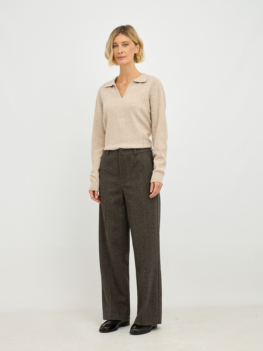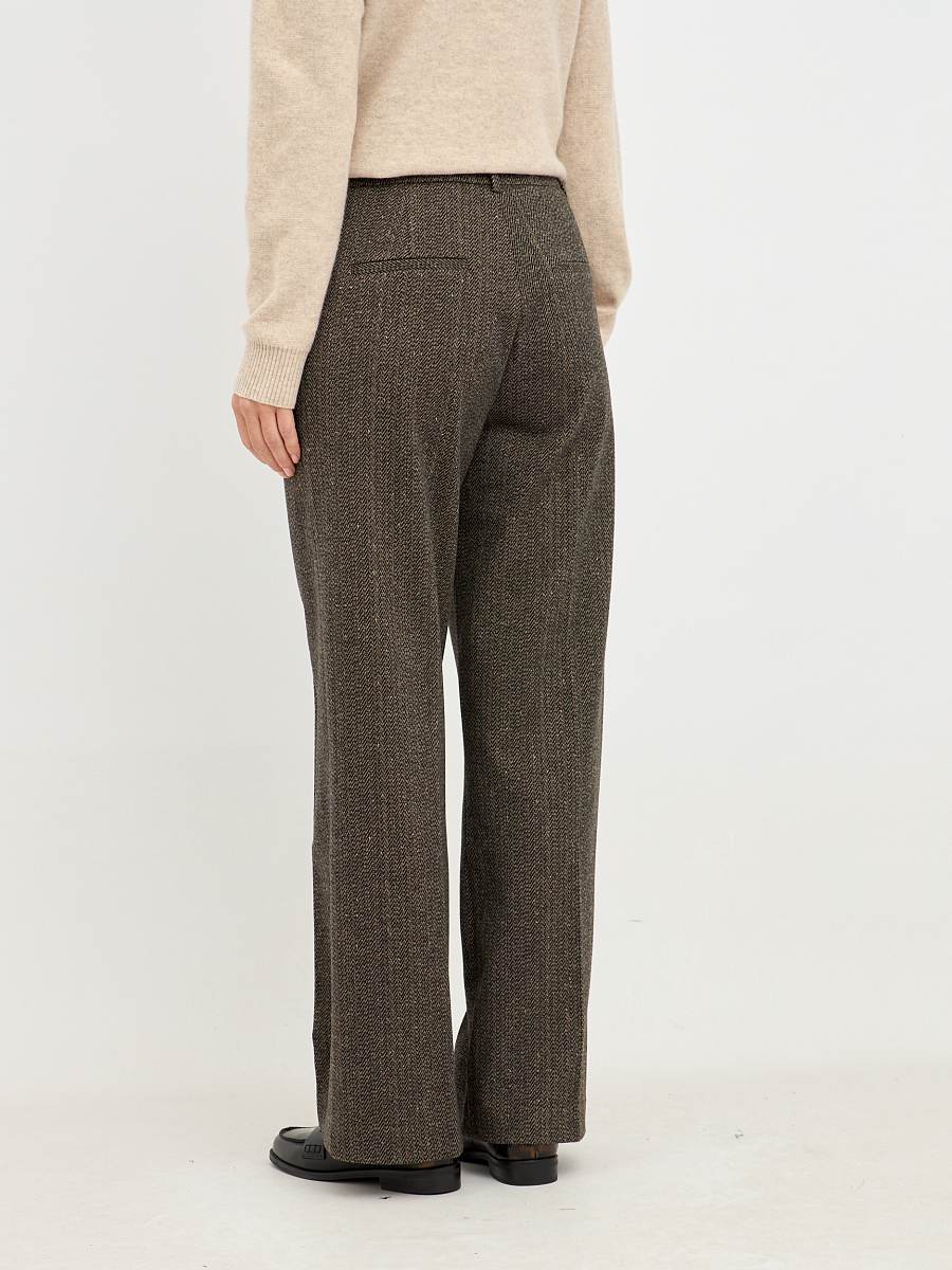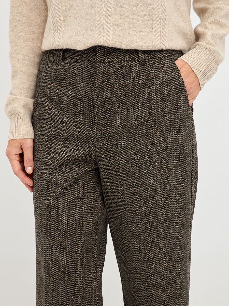 Брюки отлично сочетаются с рубашками, блузами, водолазками и трикотажем, позволяя создавать как деловые, так и повседневные образы.