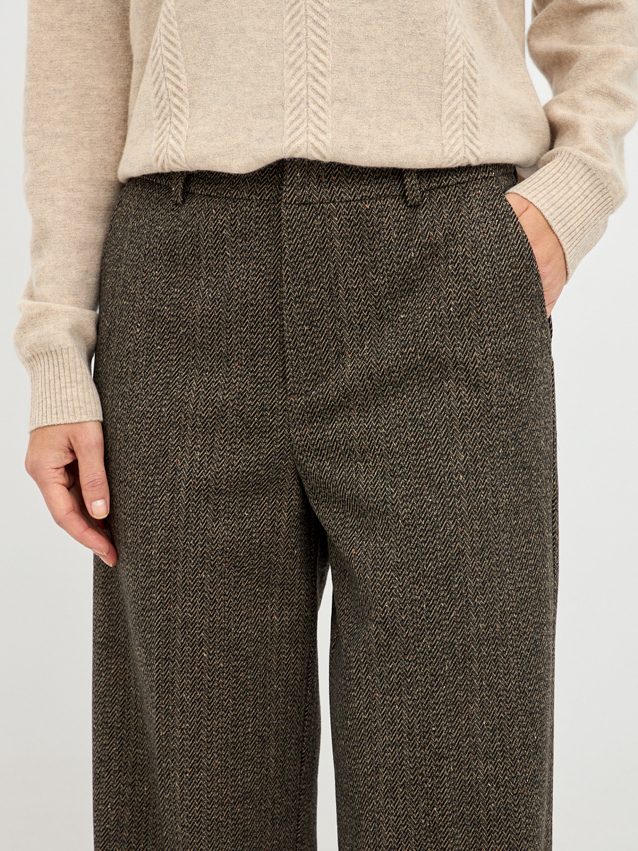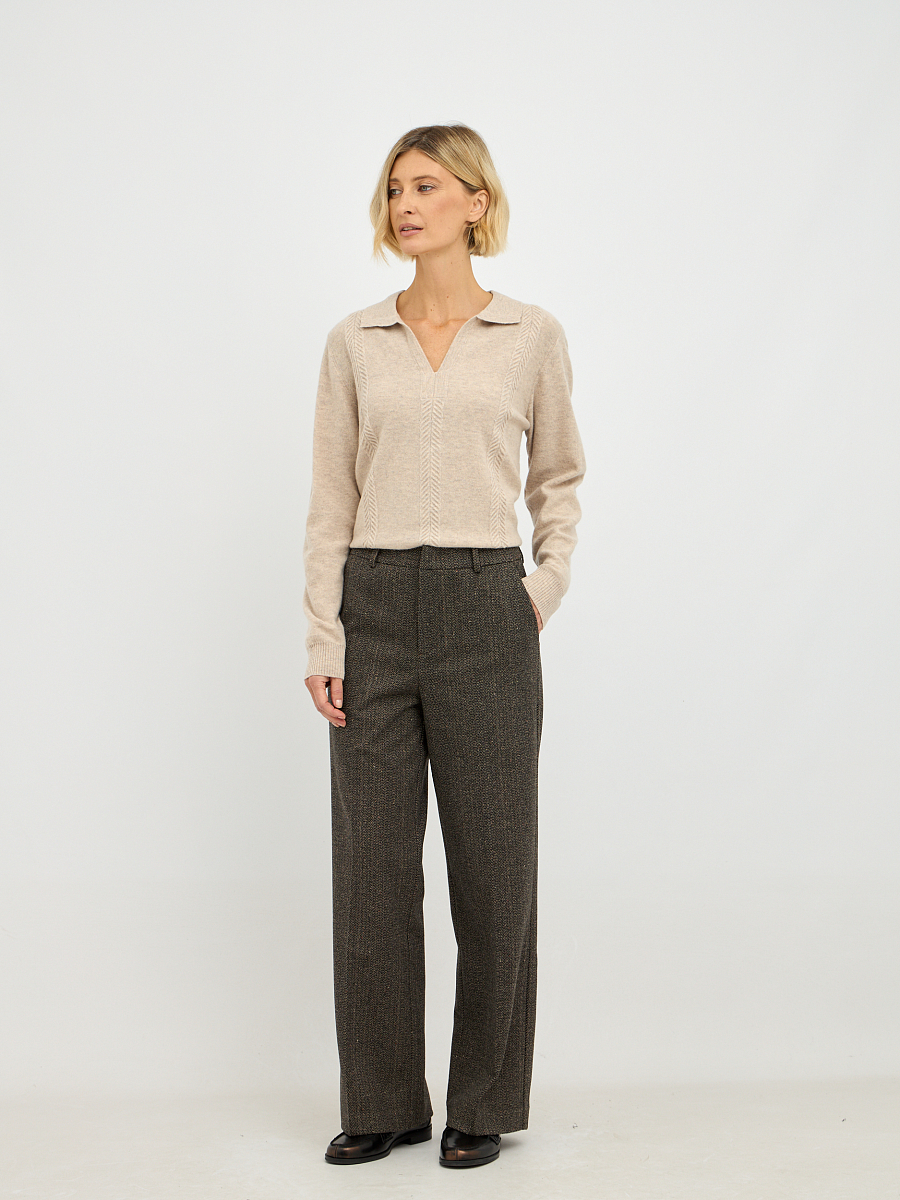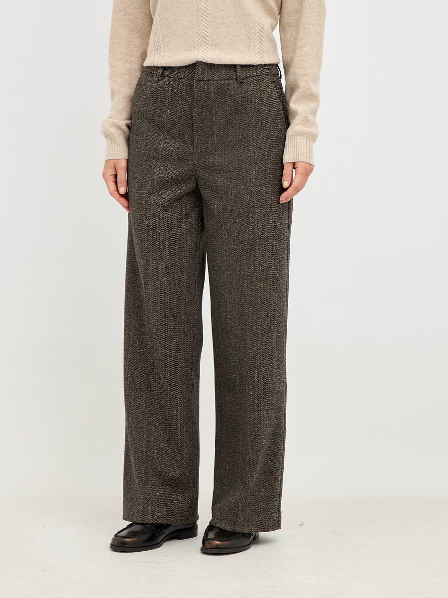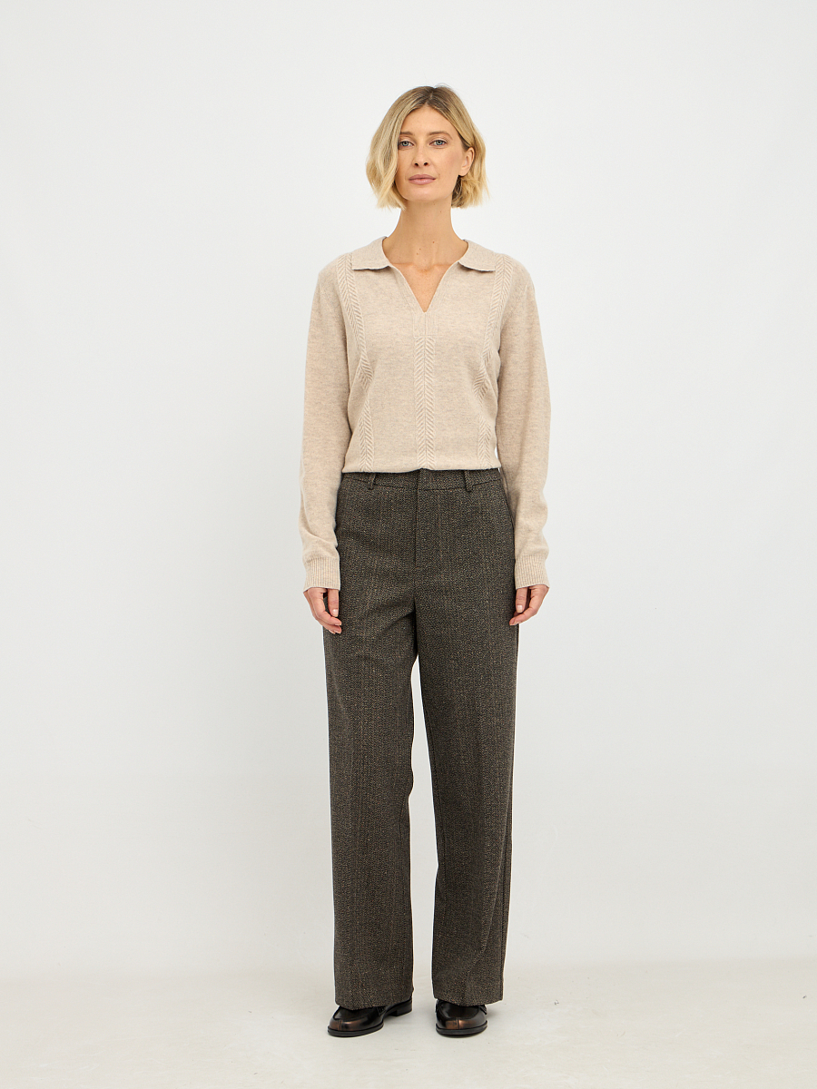 Брюки отлично сочетаются с рубашками, блузами, водолазками и трикотажем, позволяя создавать как деловые, так и повседневные образы.