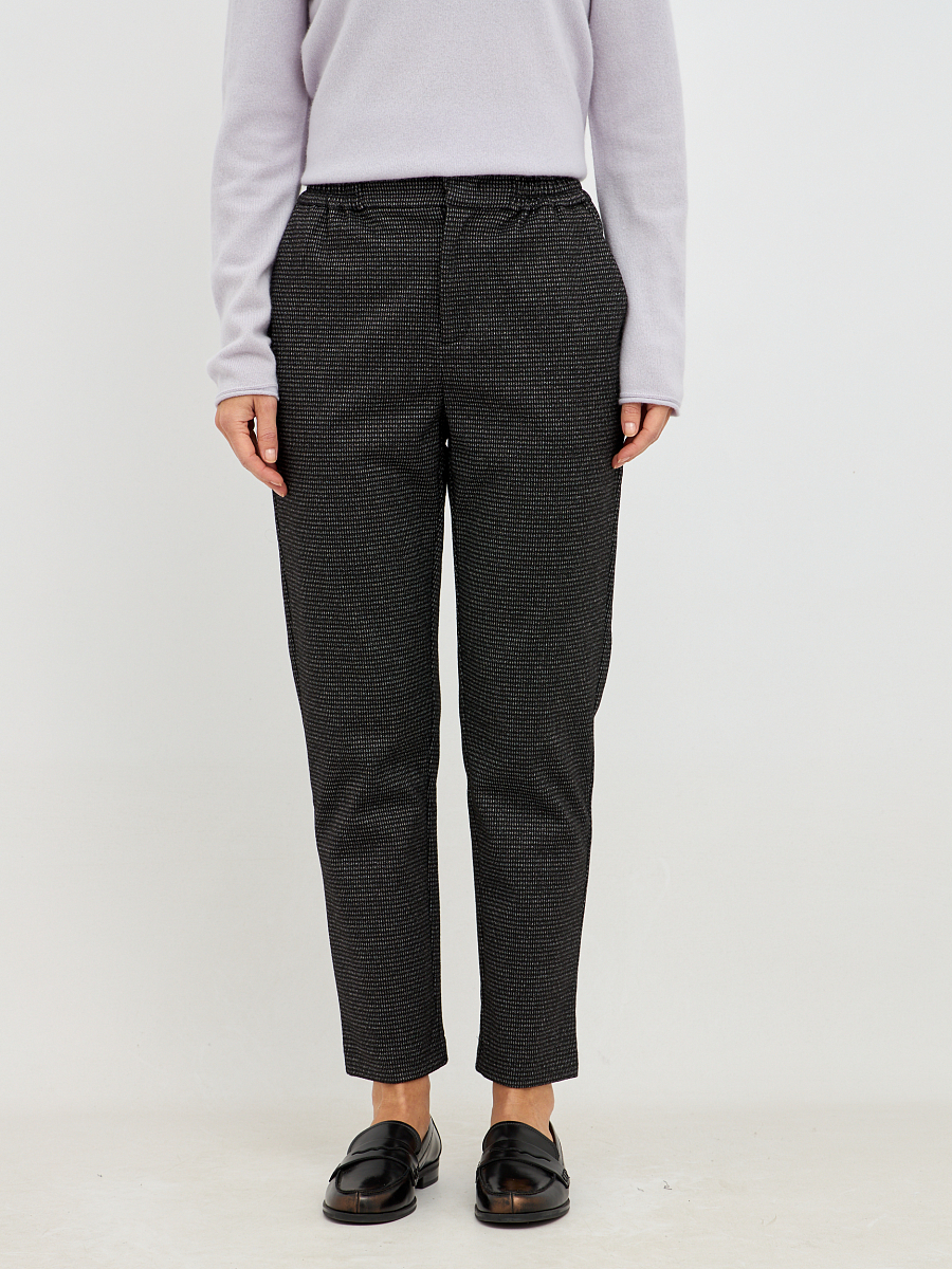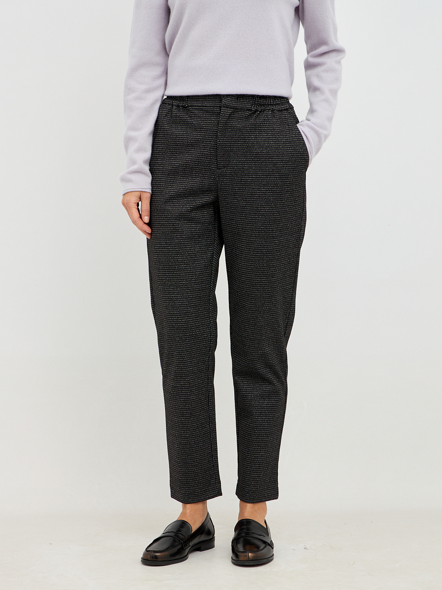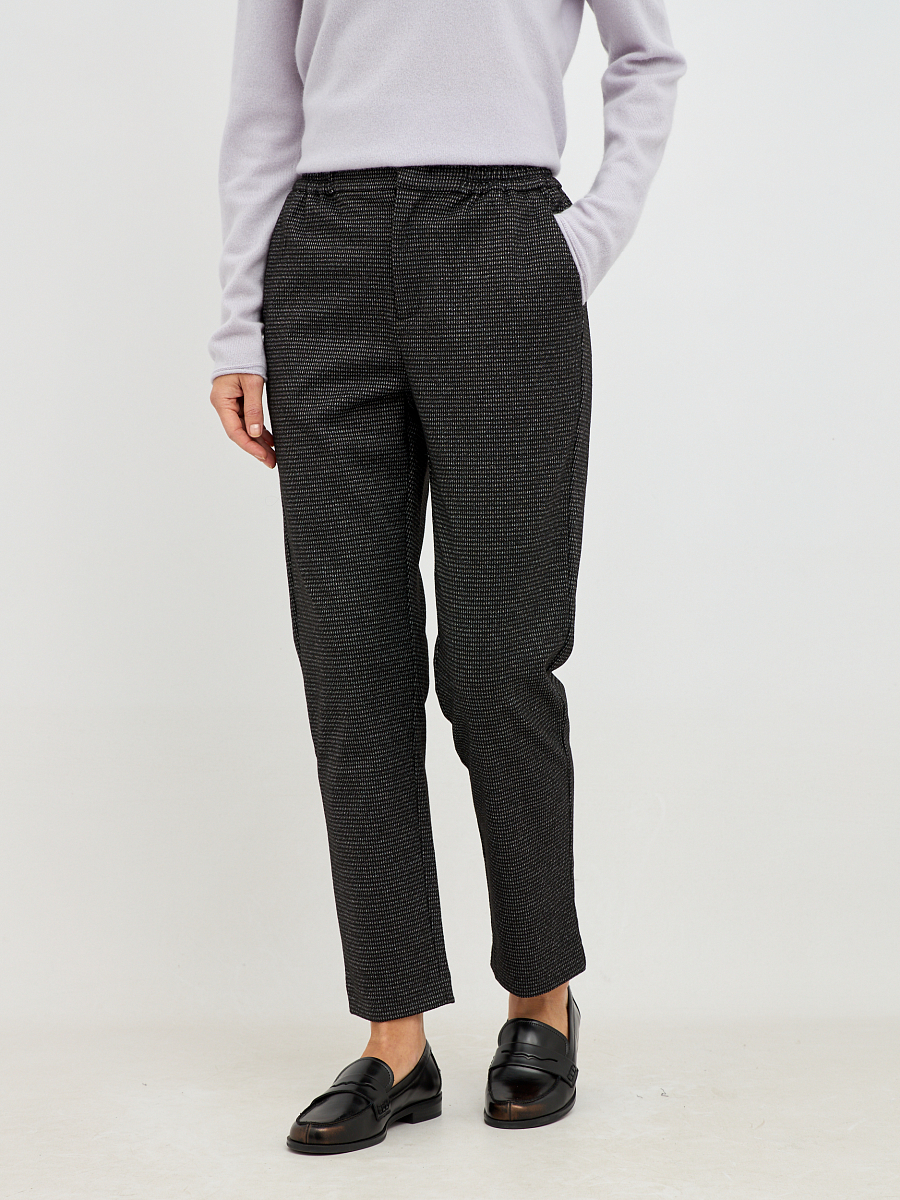 Стильные женские брюки прямого кроя выполнены из плотной фактурной ткани тёмного оттенка в клетку которая добавляет модели глубину и делает её визуально более интересной. Благодаря универсальной цветовой гамме брюки легко вписываются как в повседневные, так и в деловые образы.