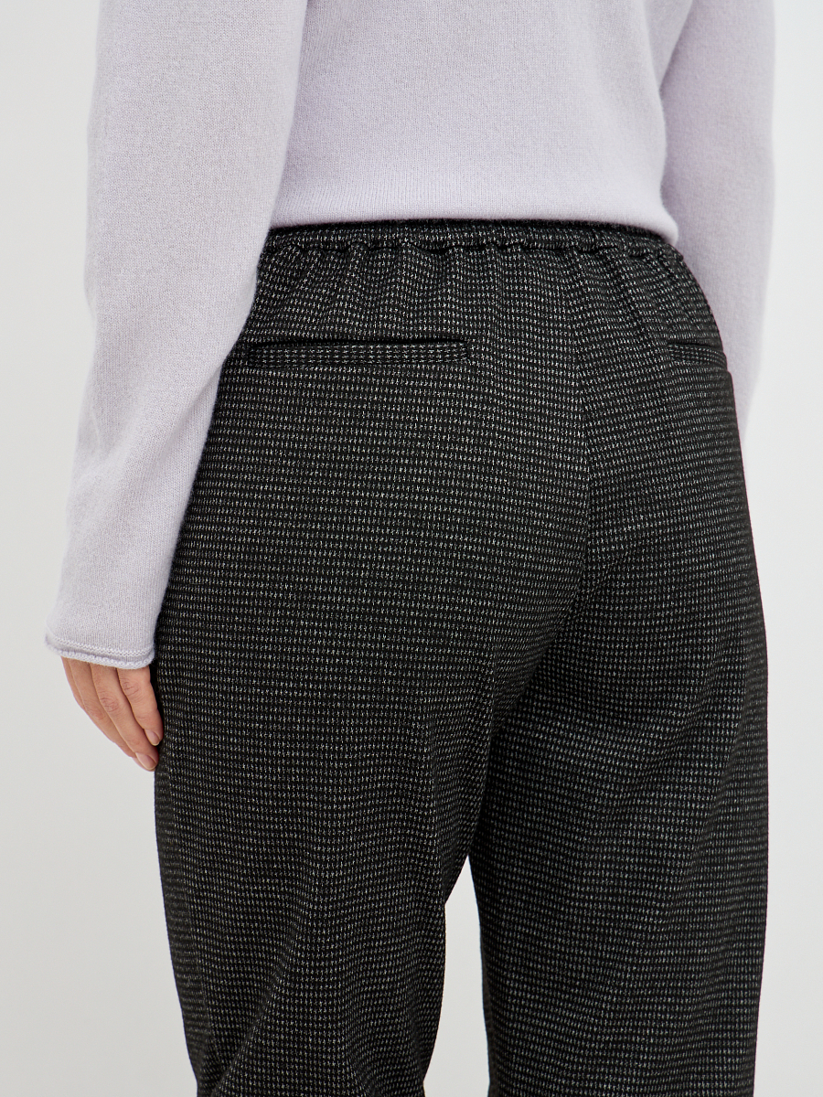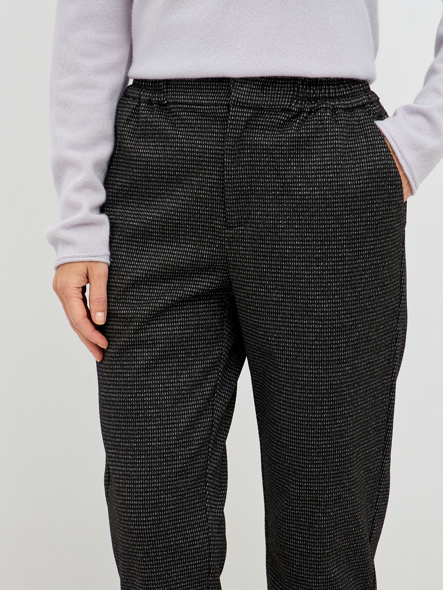 Длина брюк немного укороченная, что стильно подчёркивает обувь — будь то лоферы, ботинки или лаконичные кеды. Эта модель станет отличной основой гардероба для тех, кто ценит сочетание комфорта, лаконичности и современного стиля.
