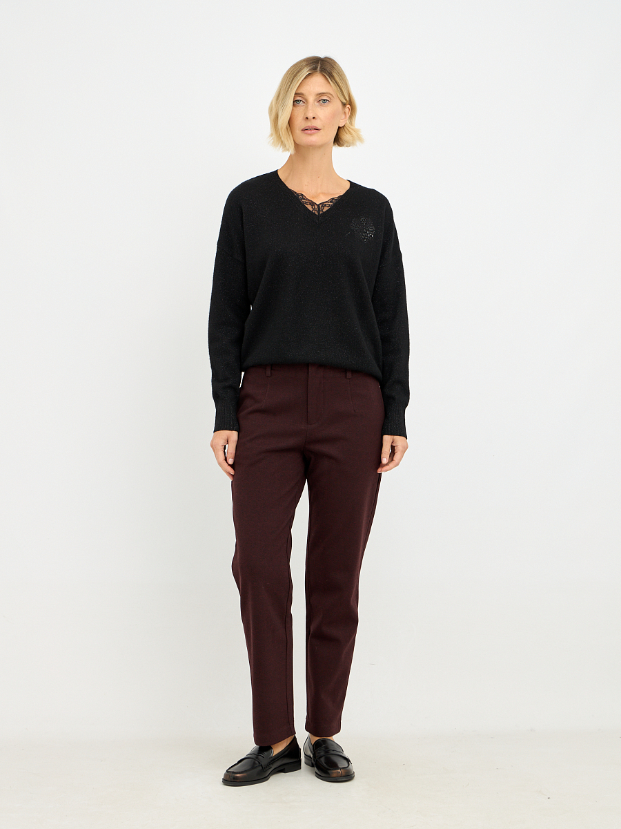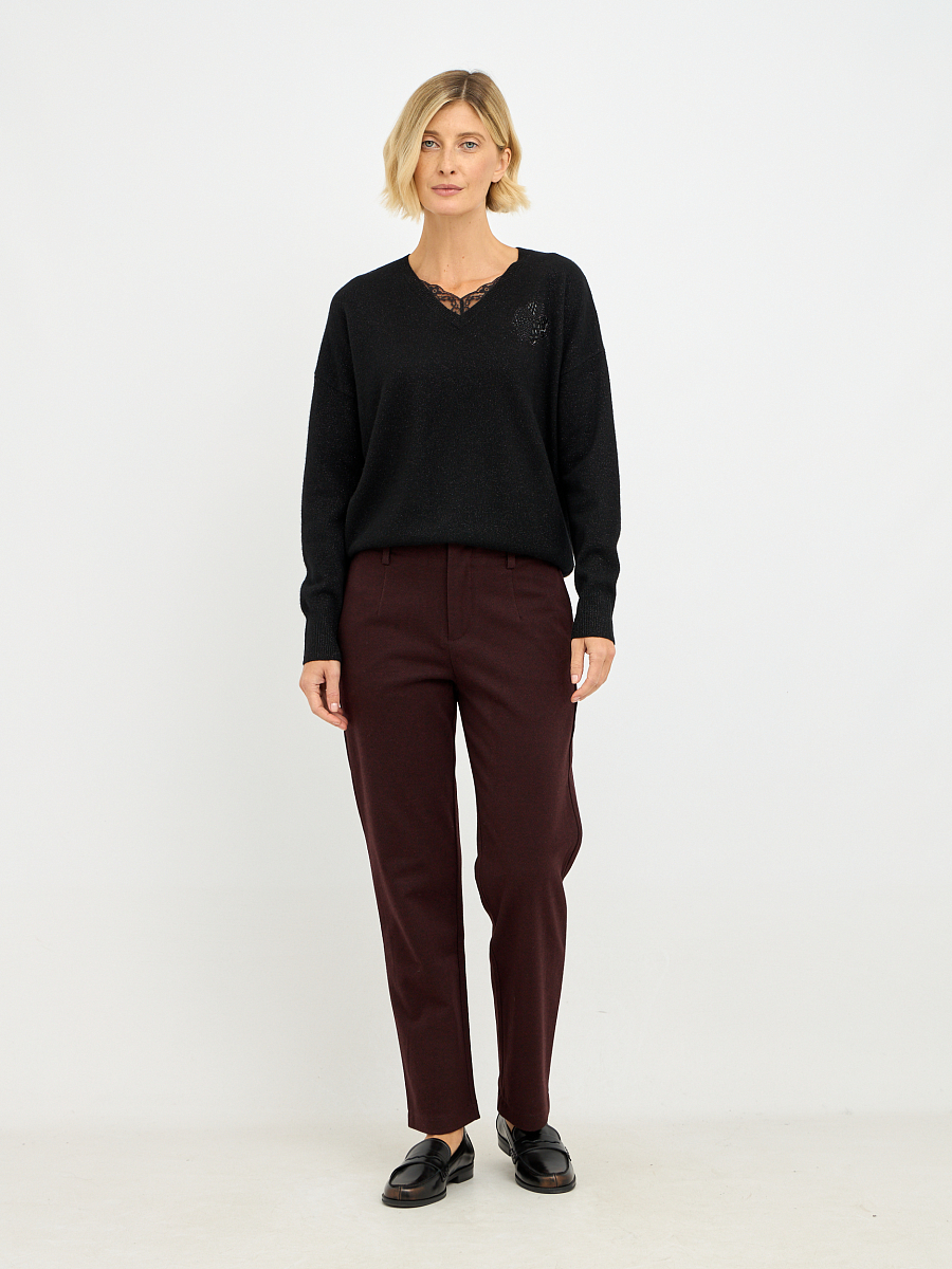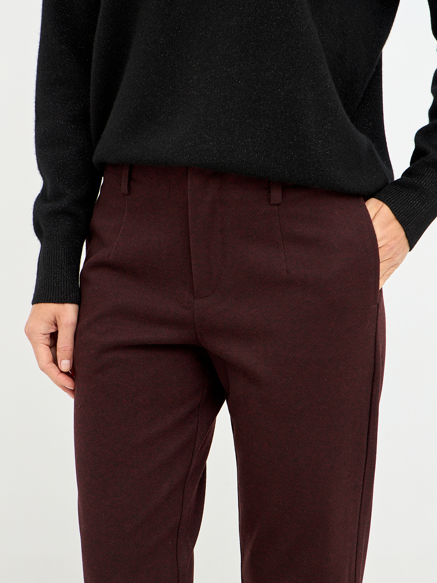 Эти брюки – воплощение утонченной элегантности, представленные в глубоком, насыщенном винном оттенке, который придает образу роскошный и изысканный вид.