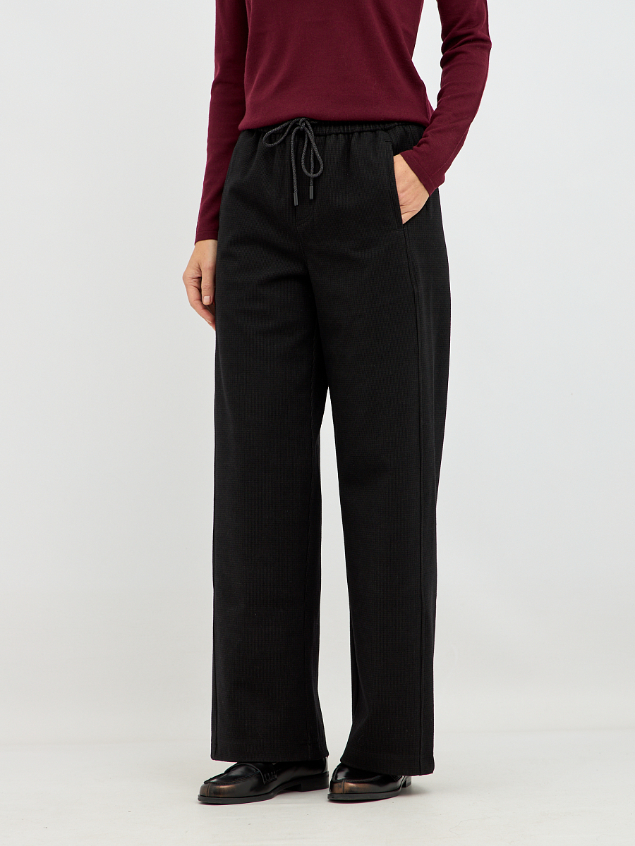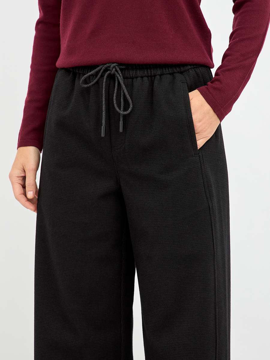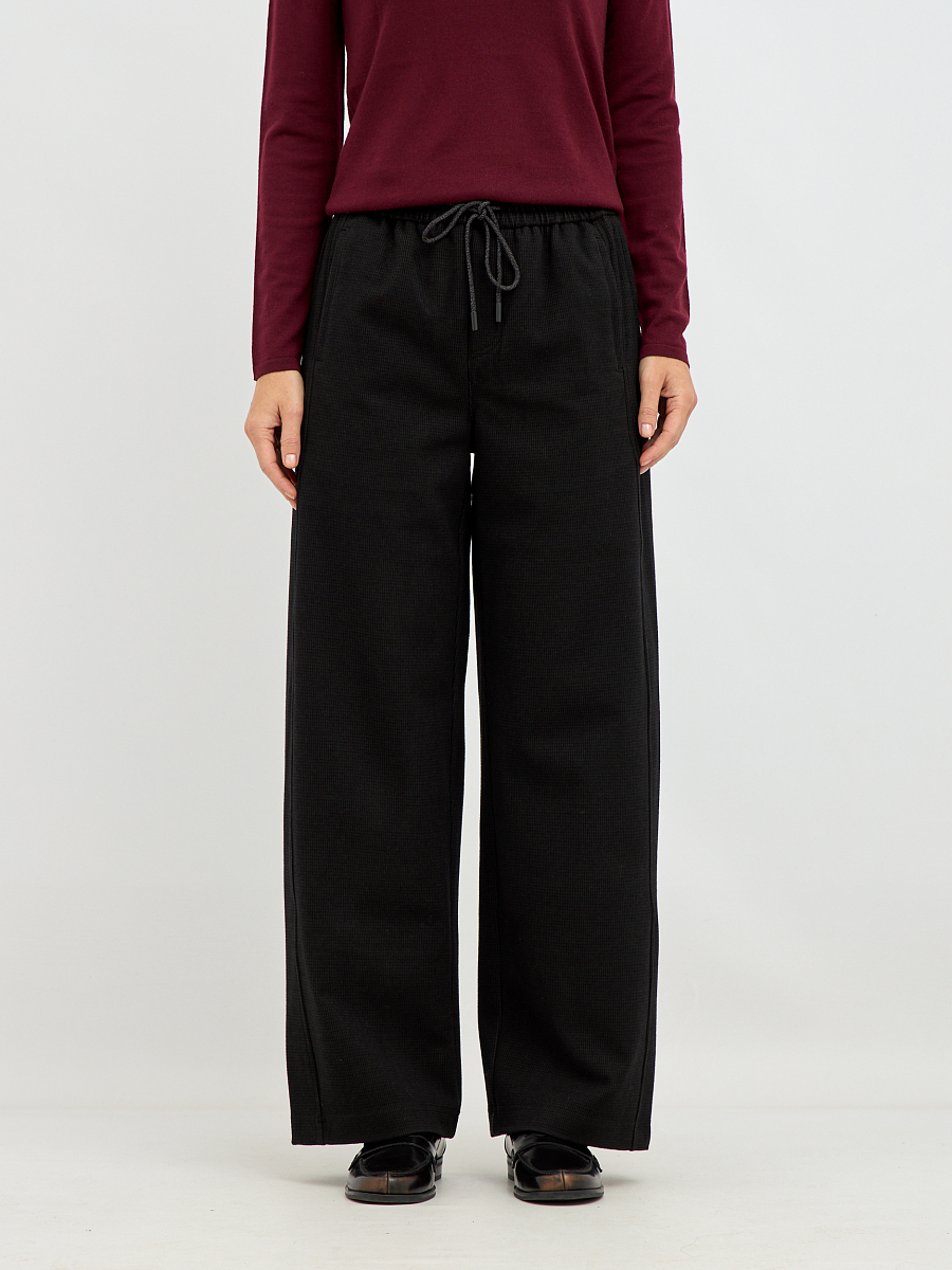 Пояс на резинке делает посадку максимально комфортной и регулируемой, а декоративный шнурок добавляет лёгкий спортивный акцент и позволяет дополнительно адаптировать размер по фигуре.