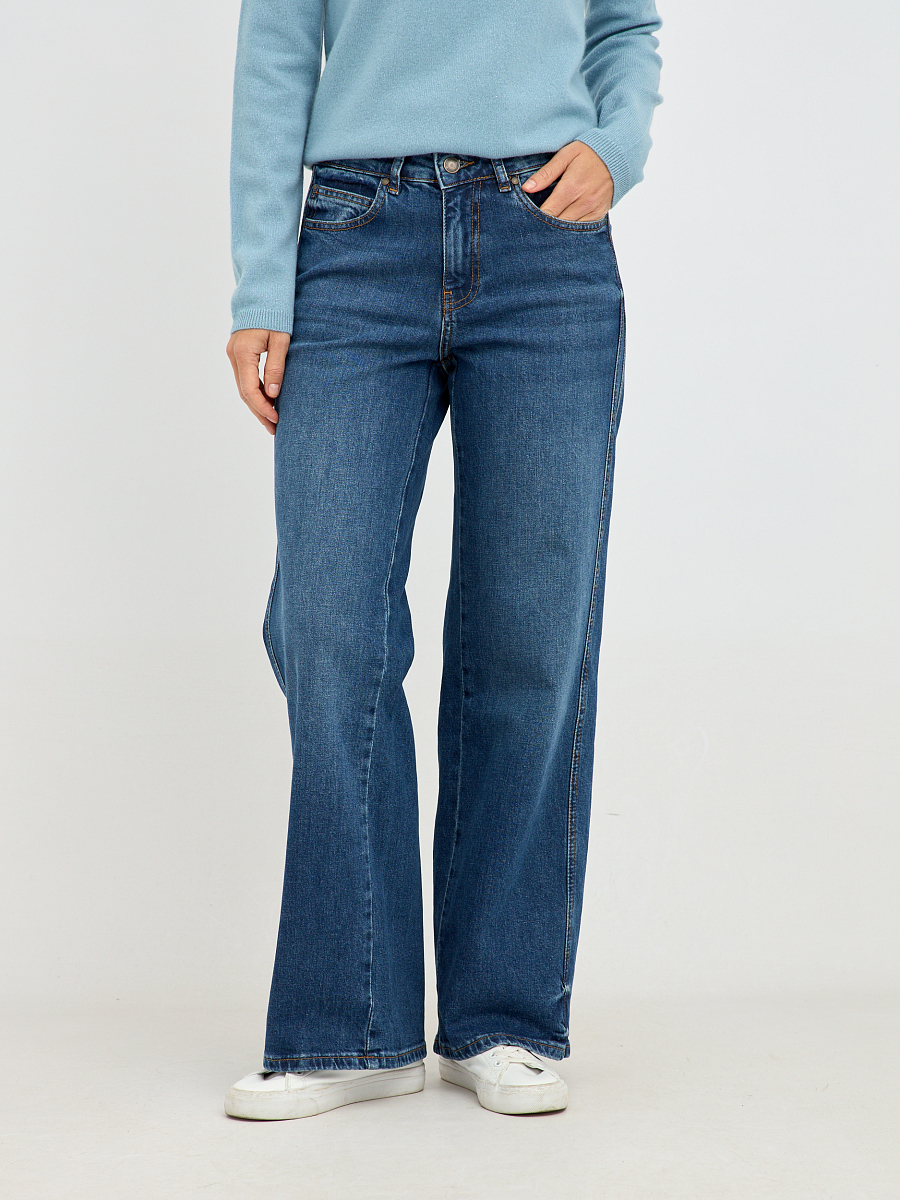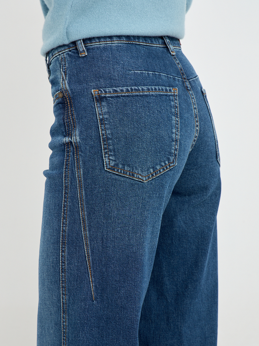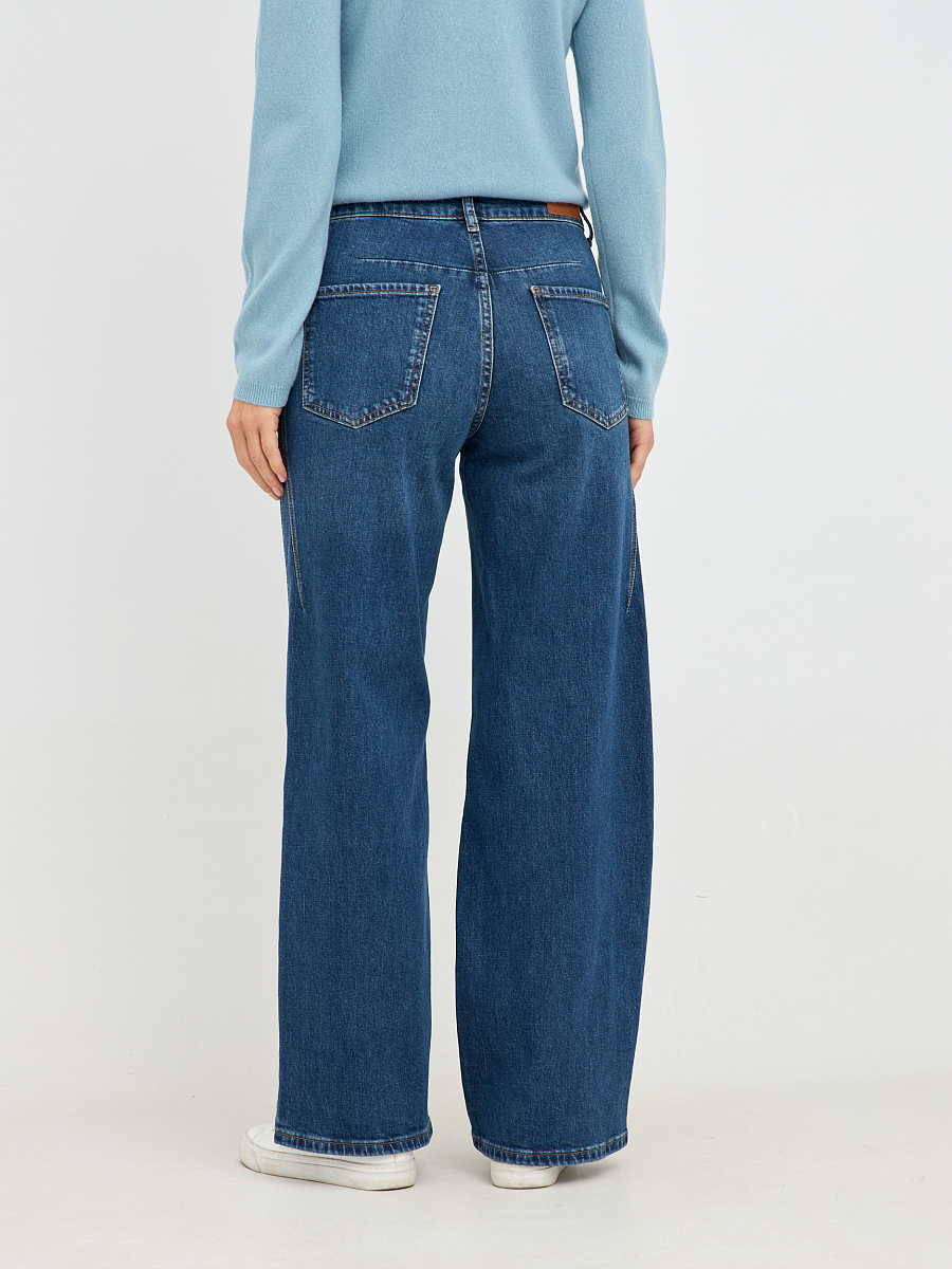 Эти женские джинсовые брюки в глубоком синем оттенке созданы из премиального хлопка с добавлением эластана, они дарят невероятную мягкость и идеальную посадку, облегая фигуру без стеснения движений. Хлопковая основа обеспечивает воздухопроницаемость и приятные тактильные ощущения, позволяя коже дышать на протяжении всего дня. Небольшой процент эластана – это ваш секрет безупречного комфорта, обеспечивающий идеальное растяжение и сохранение формы брюк даже после многочисленных стирок.