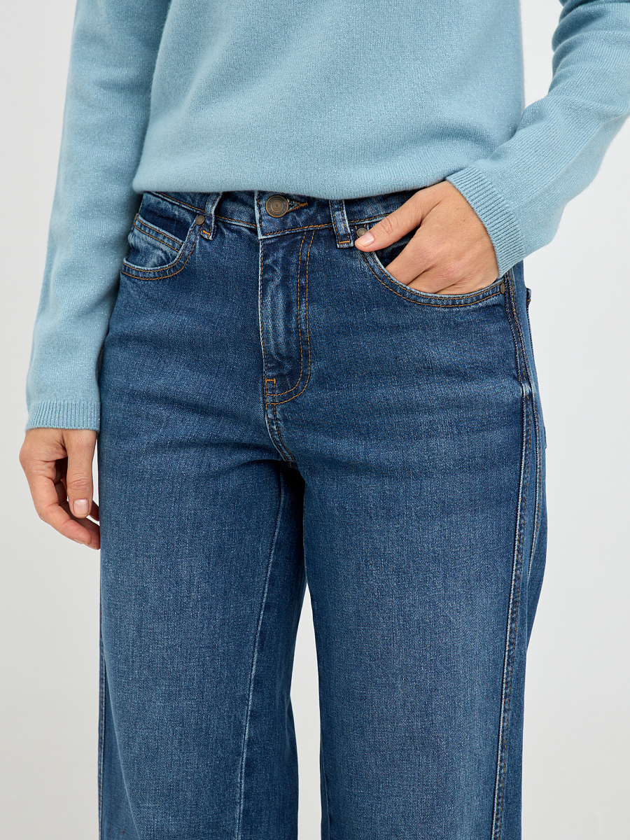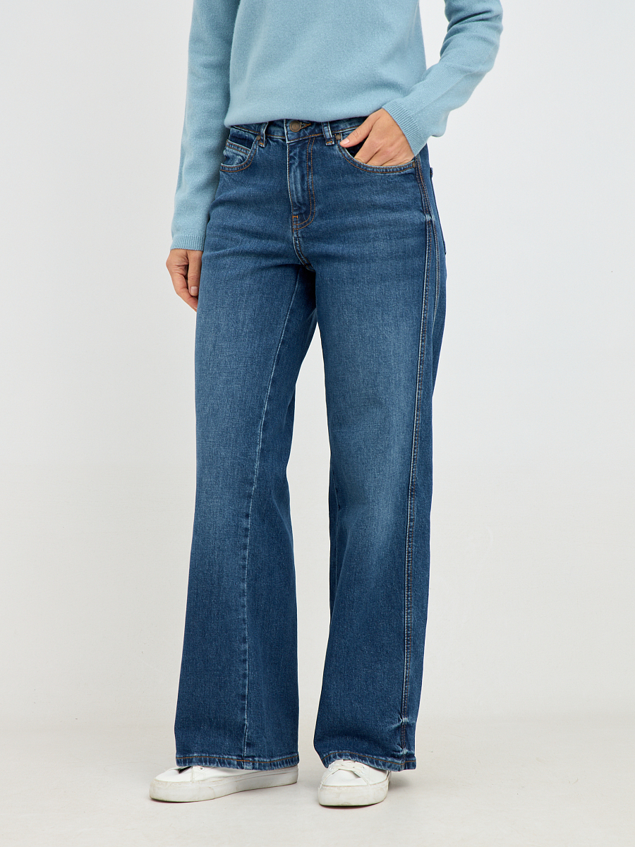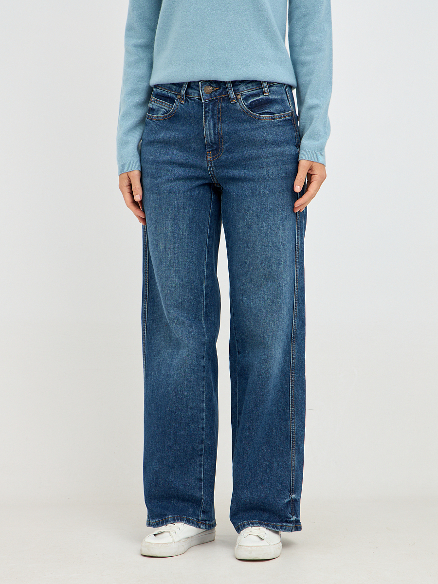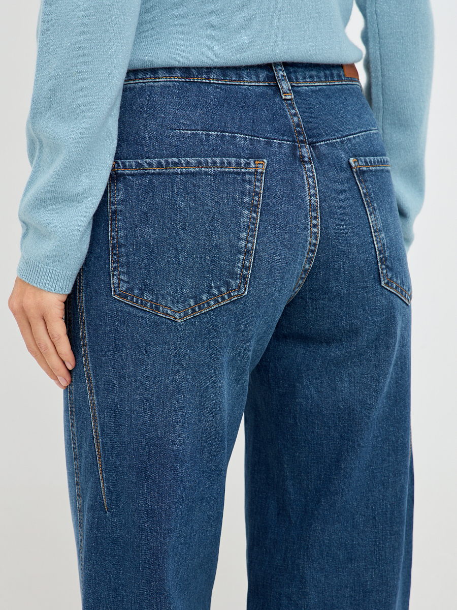 Эти женские джинсовые брюки в глубоком синем оттенке созданы из премиального хлопка с добавлением эластана, они дарят невероятную мягкость и идеальную посадку, облегая фигуру без стеснения движений. Хлопковая основа обеспечивает воздухопроницаемость и приятные тактильные ощущения, позволяя коже дышать на протяжении всего дня. Небольшой процент эластана – это ваш секрет безупречного комфорта, обеспечивающий идеальное растяжение и сохранение формы брюк даже после многочисленных стирок.