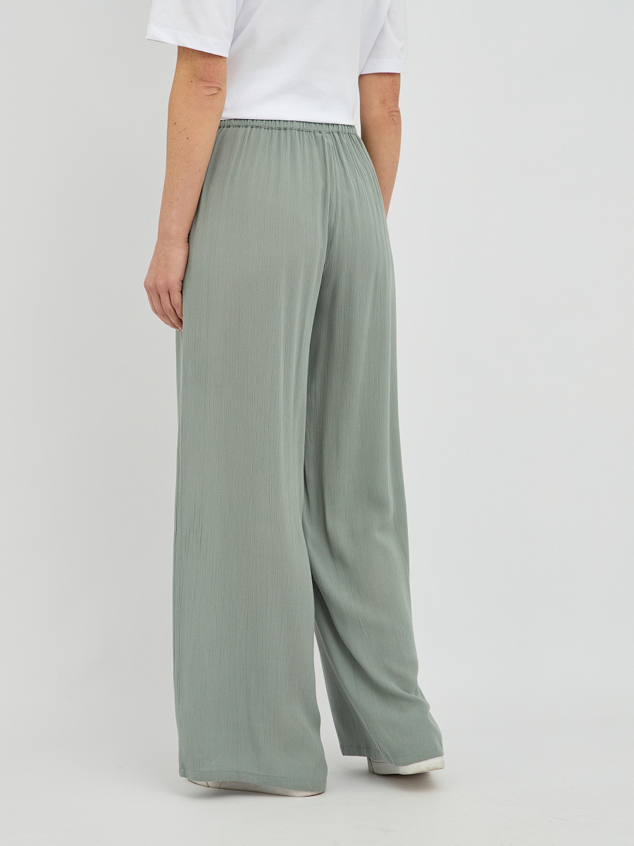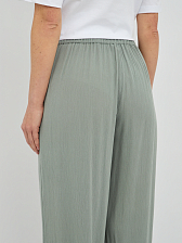 Благодаря свободному крою и нежной ткани, эти брюки станут вашим любимым выбором для создания расслабленных, но при этом элегантных ансамблей. Они легко впишутся в ваш повседневный стиль, добавив нотку утонченности и шика.