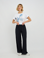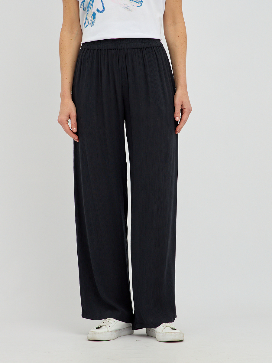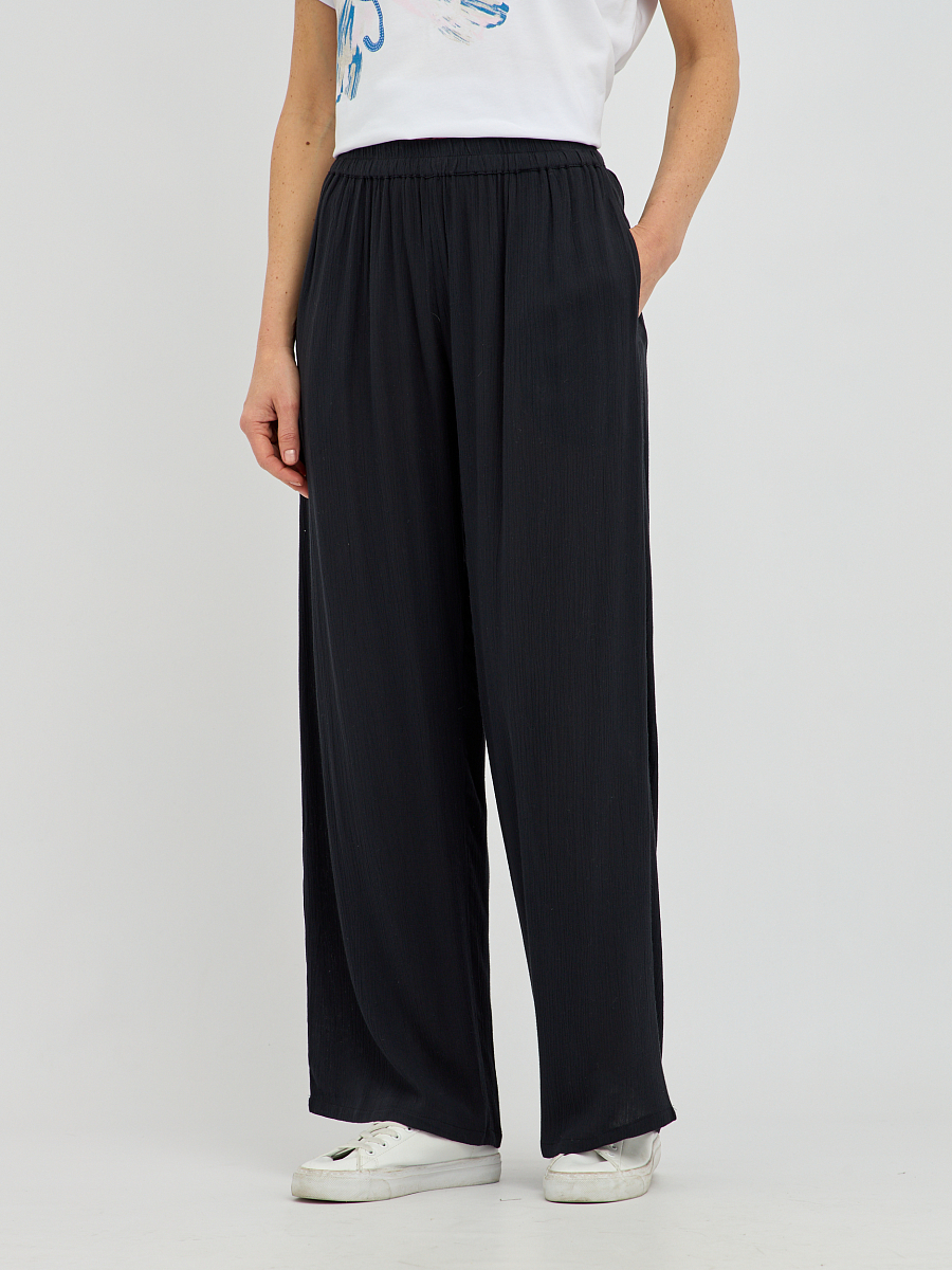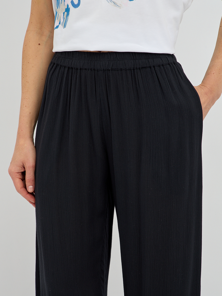 брюки женские широкого силуэта из вискозы с поясом на резинке