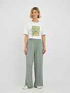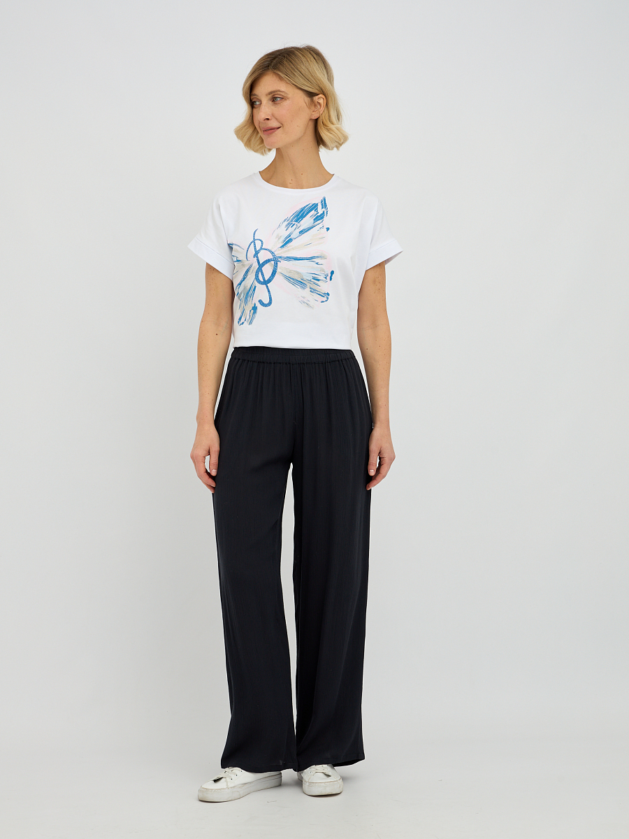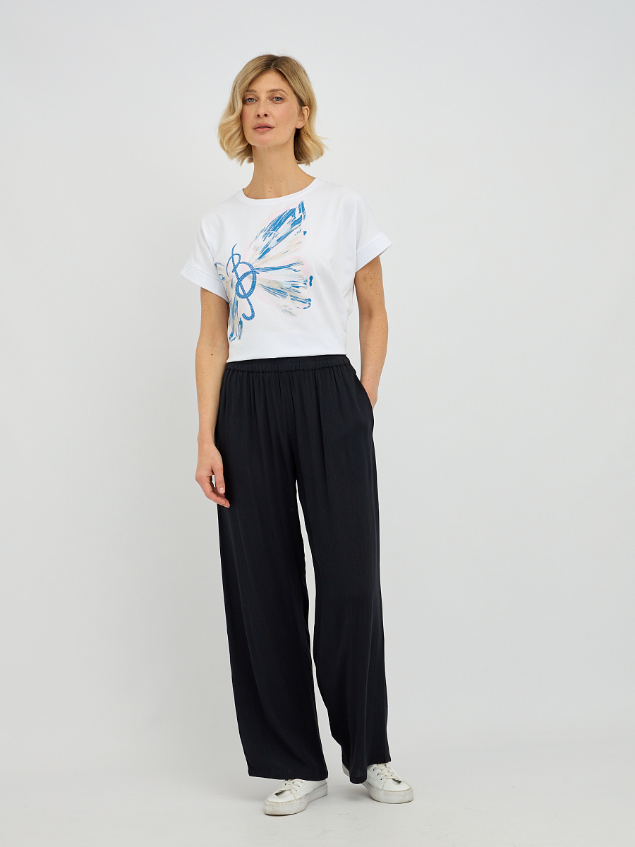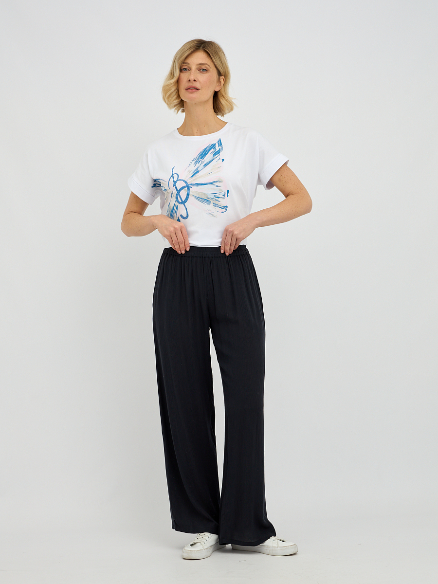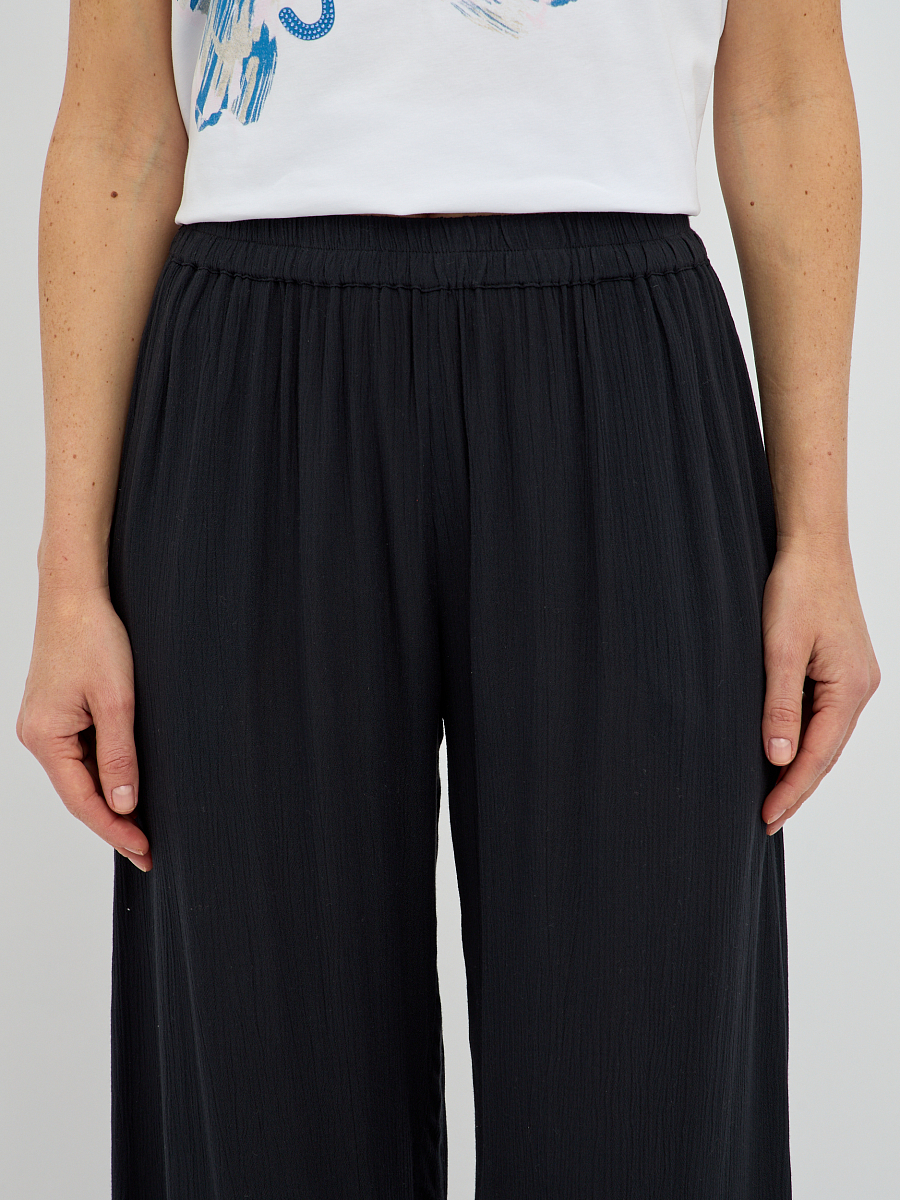 Эти брюки широкого силуэта  прекрасно подходят для любого типа фигуры, визуально удлиняя ноги и создавая изящный образ. Свобода движений, которую дарит этот фасон, делает брюки идеальным выбором для прогулок, встреч с друзьями или для отпуска..