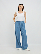 Эти женские джинсовые брюки в нежном голубом оттенке выполнены из высококачественного тенселя. Тенсель - это инновационный материал, получаемый из древесной целлюлозы, обладает исключительной мягкостью и шелковистостью. Он прекрасно дышит, гипоаллергенен и обладает отличной влагоотводящей способностью, что делает его идеальным выбором для повседневной носки.