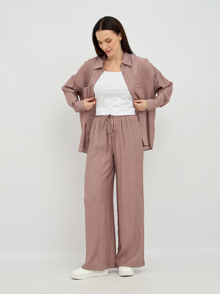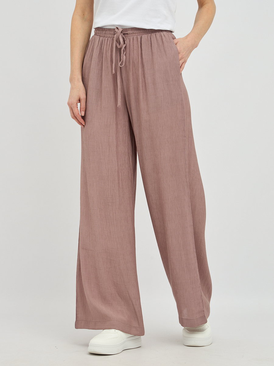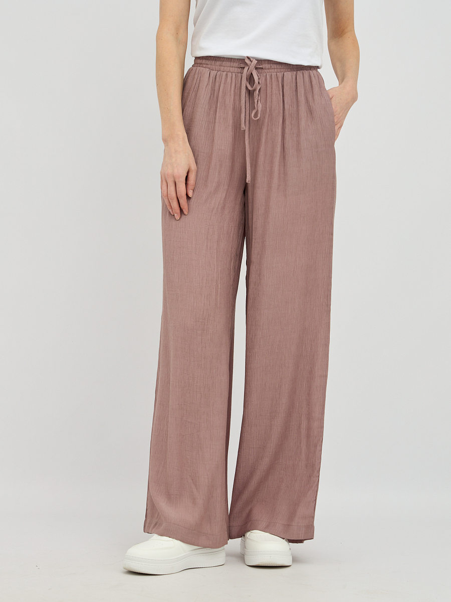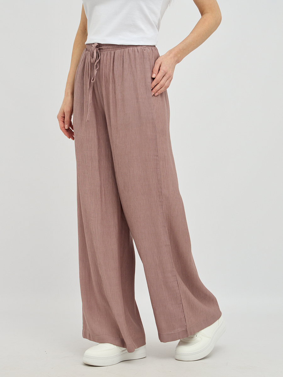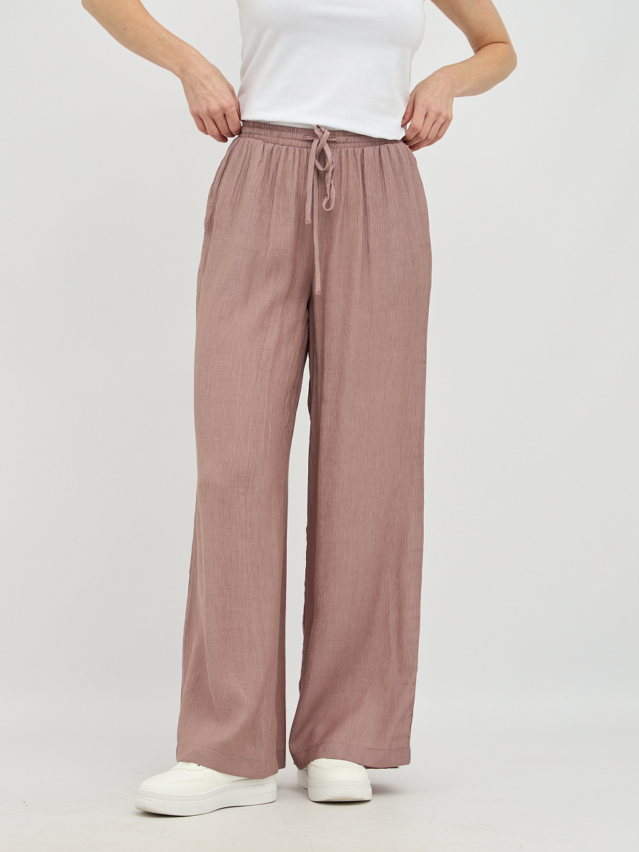 Пояс на резинке обеспечивает непревзойденный комфорт и идеальную посадку по фигуре, не стесняя движений. Свободный силуэт визуально удлиняет ноги и создает непринужденный, но в то же время утонченный образ.