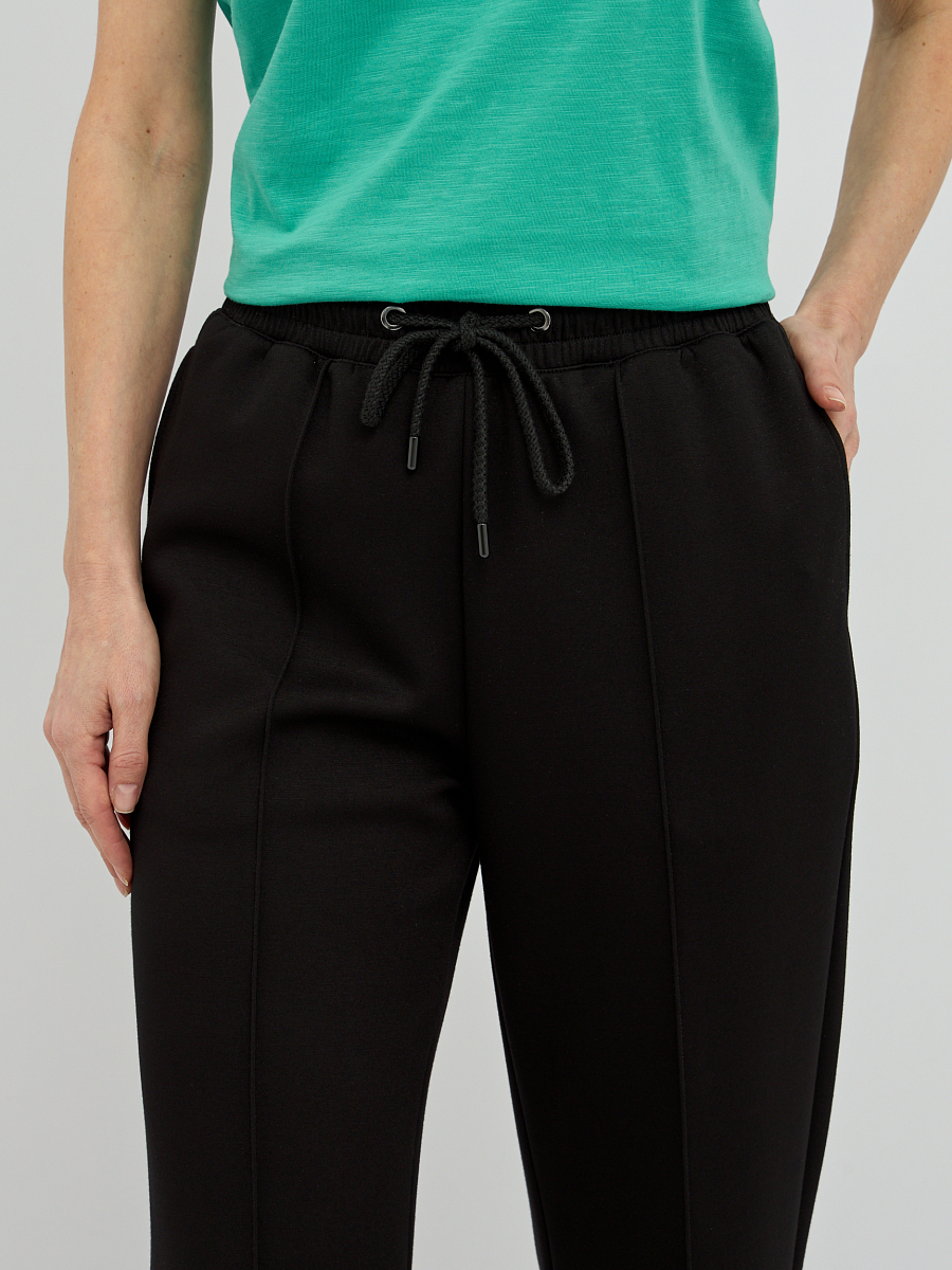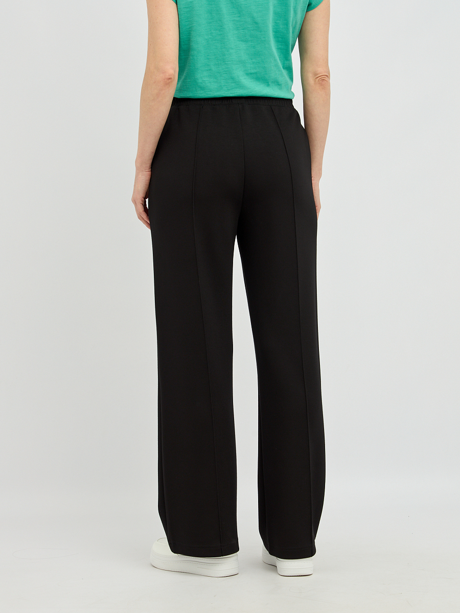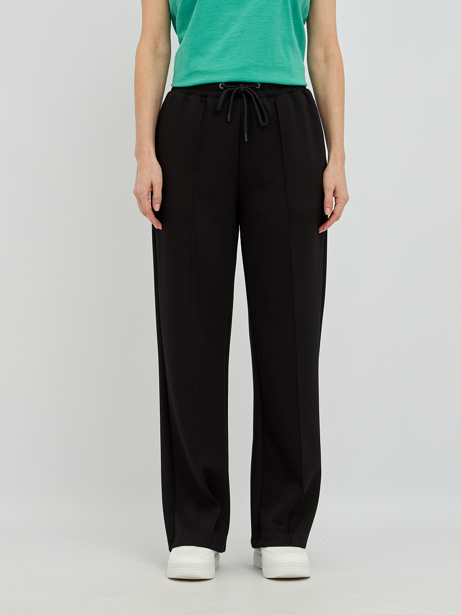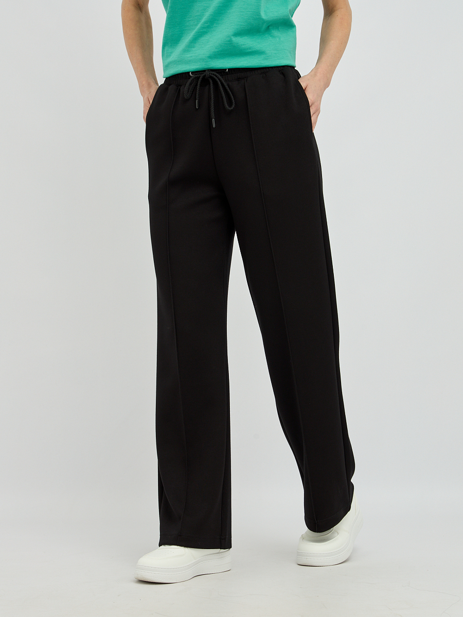 Эти женские брюки прямого силуэта станут основой вашего комфортного и стильного гардероба. Лаконичный прямой крой выгодно подчеркнет достоинства фигуры, создавая элегантный и универсальный образ. Аккуратные строчки, проходящие по всей длине брюк, добавляют модели изысканности и визуально стройнят ноги. Широкий эластичный пояс с регулируемым шнурком гарантирует надежную фиксацию и позволяет добиться идеальной посадки.